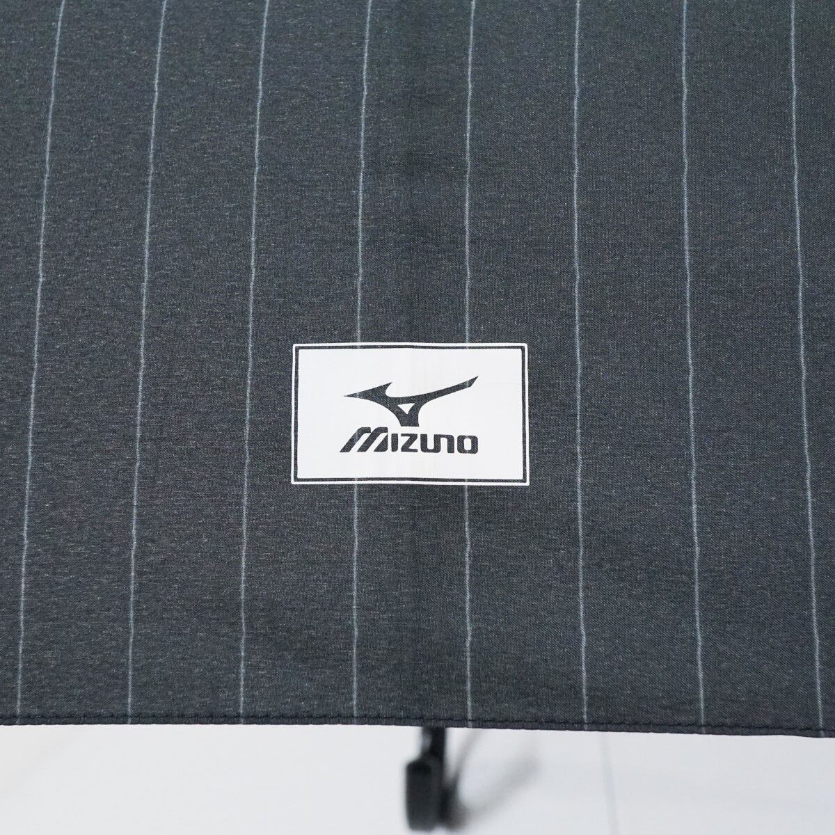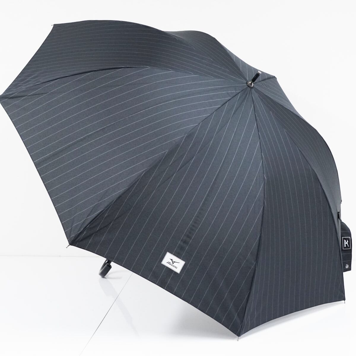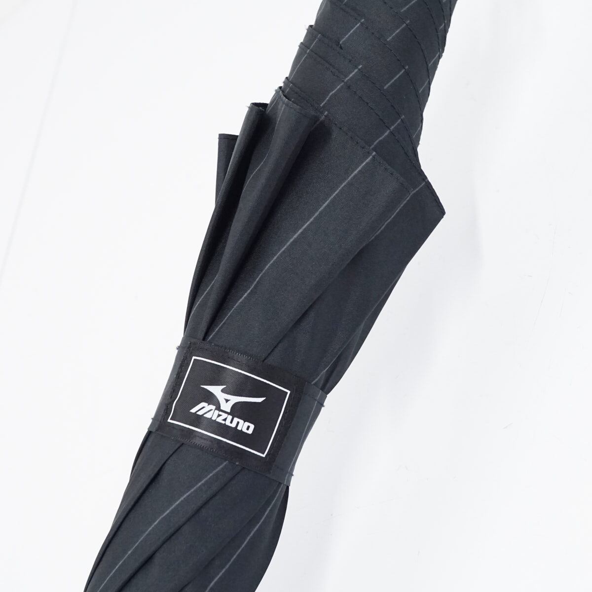 ブラックの生地にグレーのストライプラインを入れた「ミズノ」の耐風傘です。