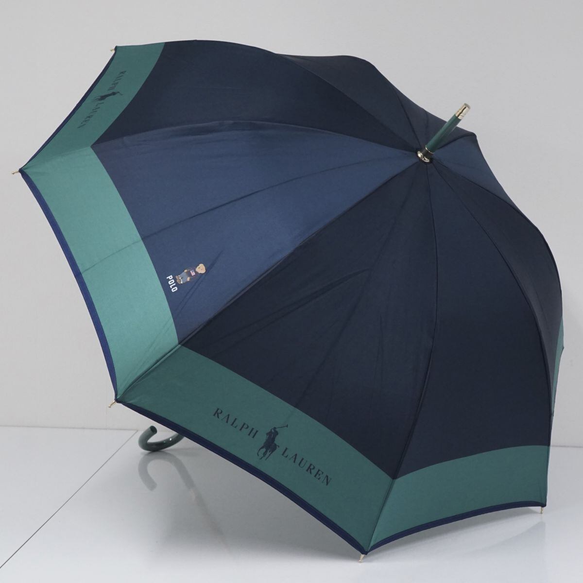 傘 Polo Ralph Lauren ポロラルフローレン USED超美品 ネイビー グリーン ポロポニー ポロベア ロゴ 高級 60cm S2241