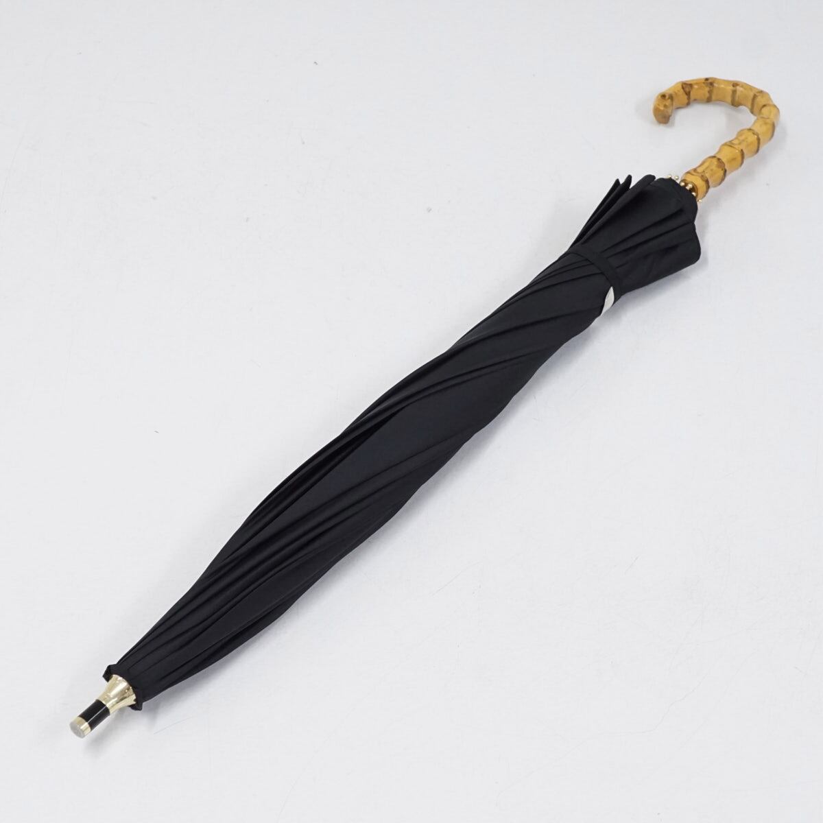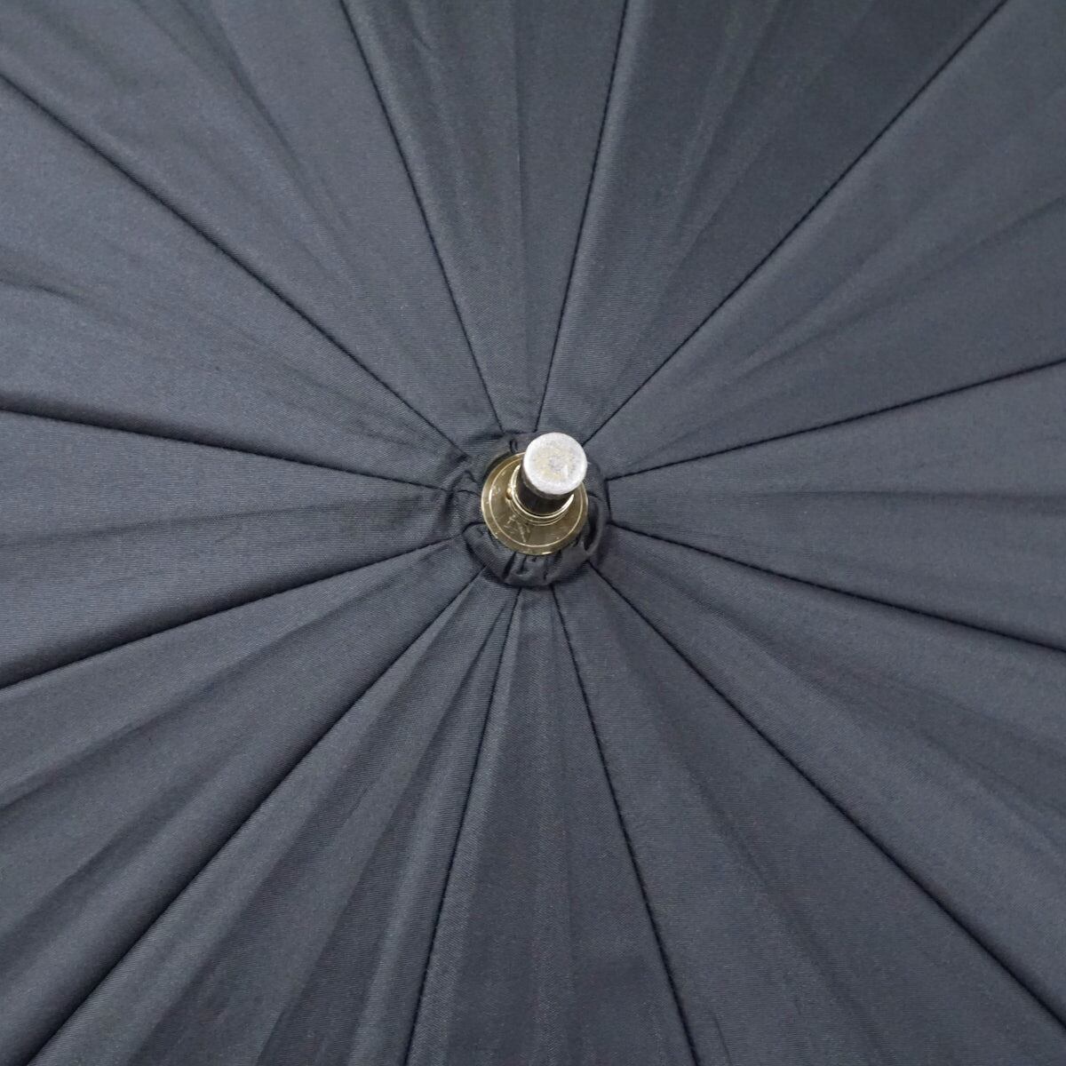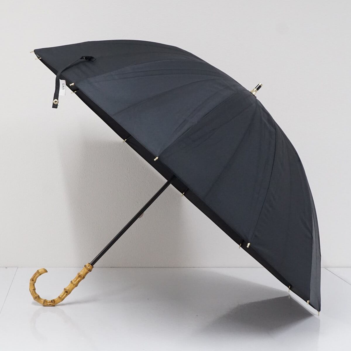 ブラックのシンプルな生地を基調にした洗練されたデザインの傘です。