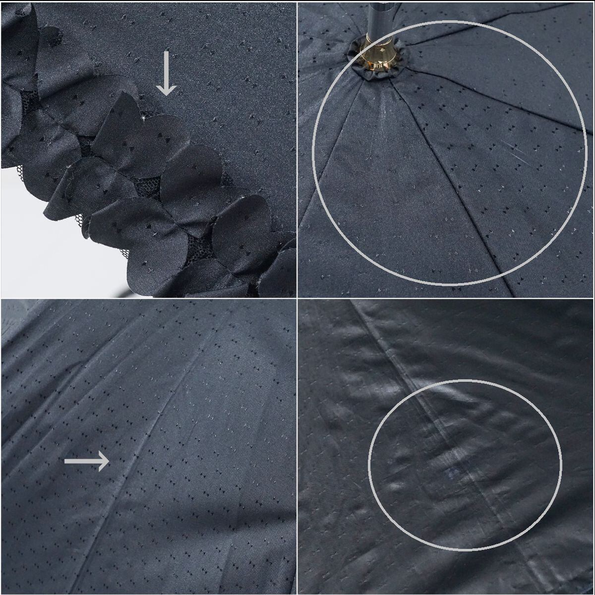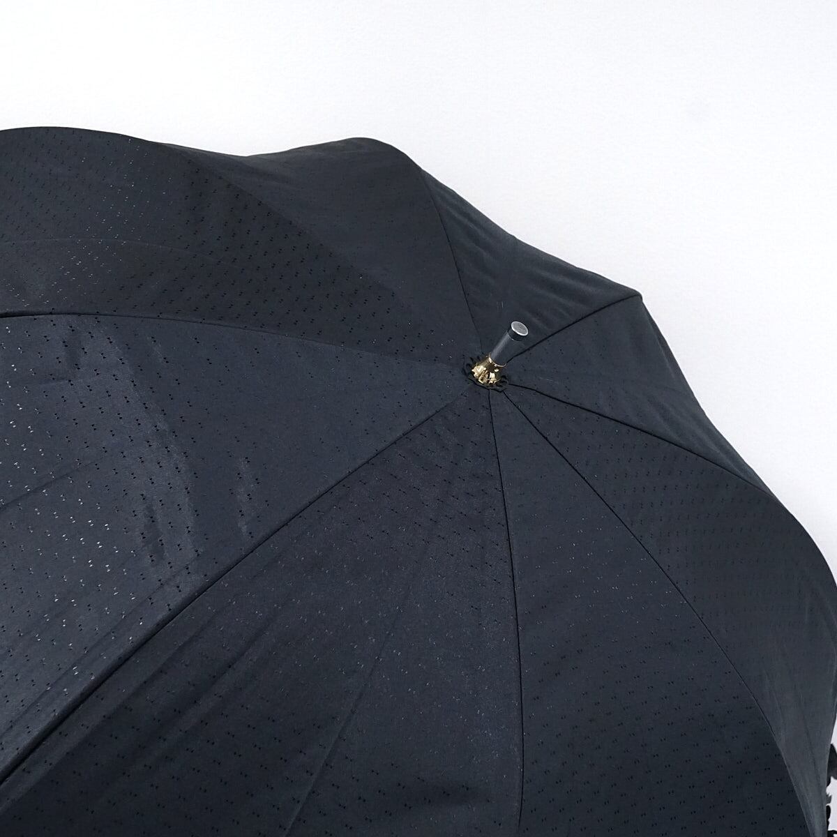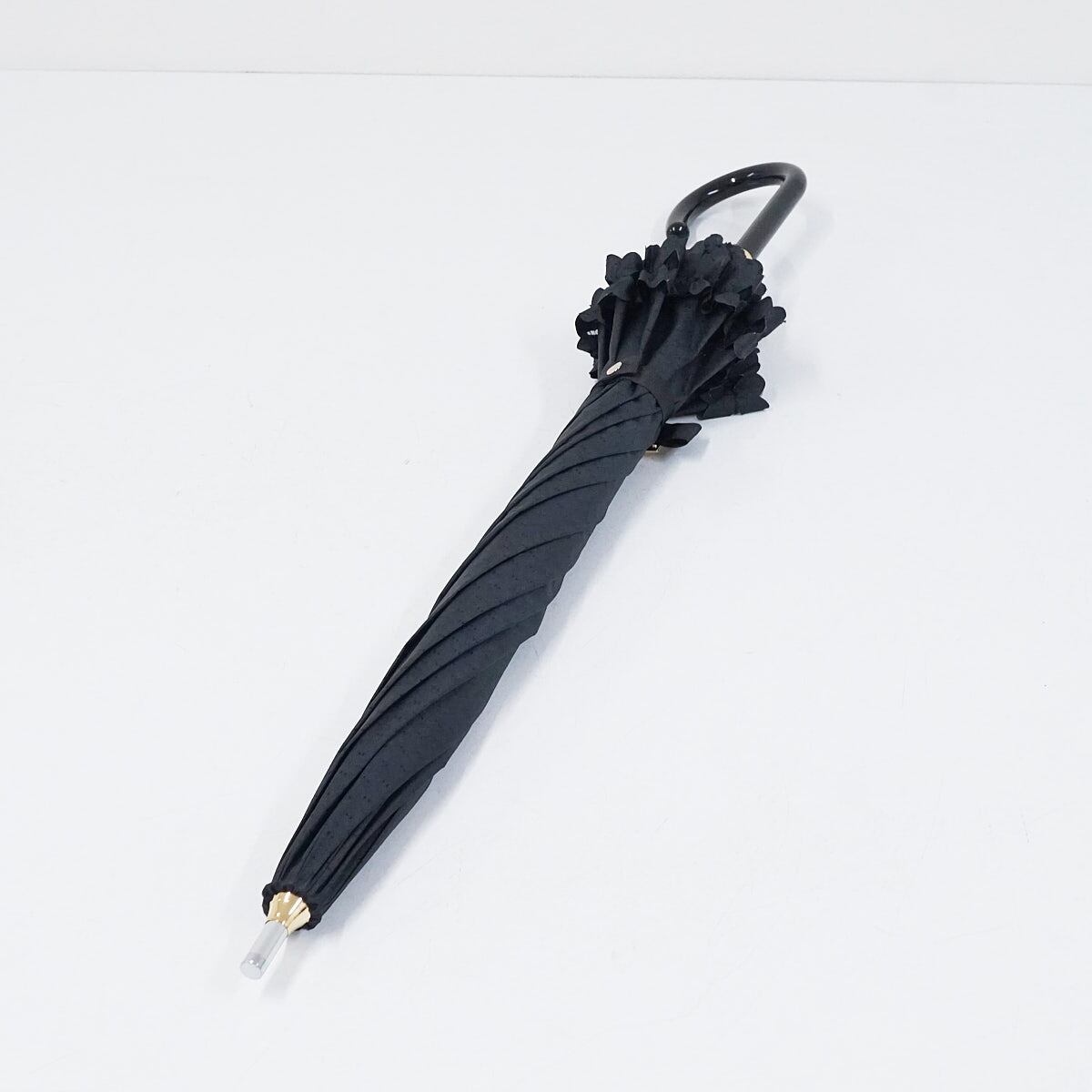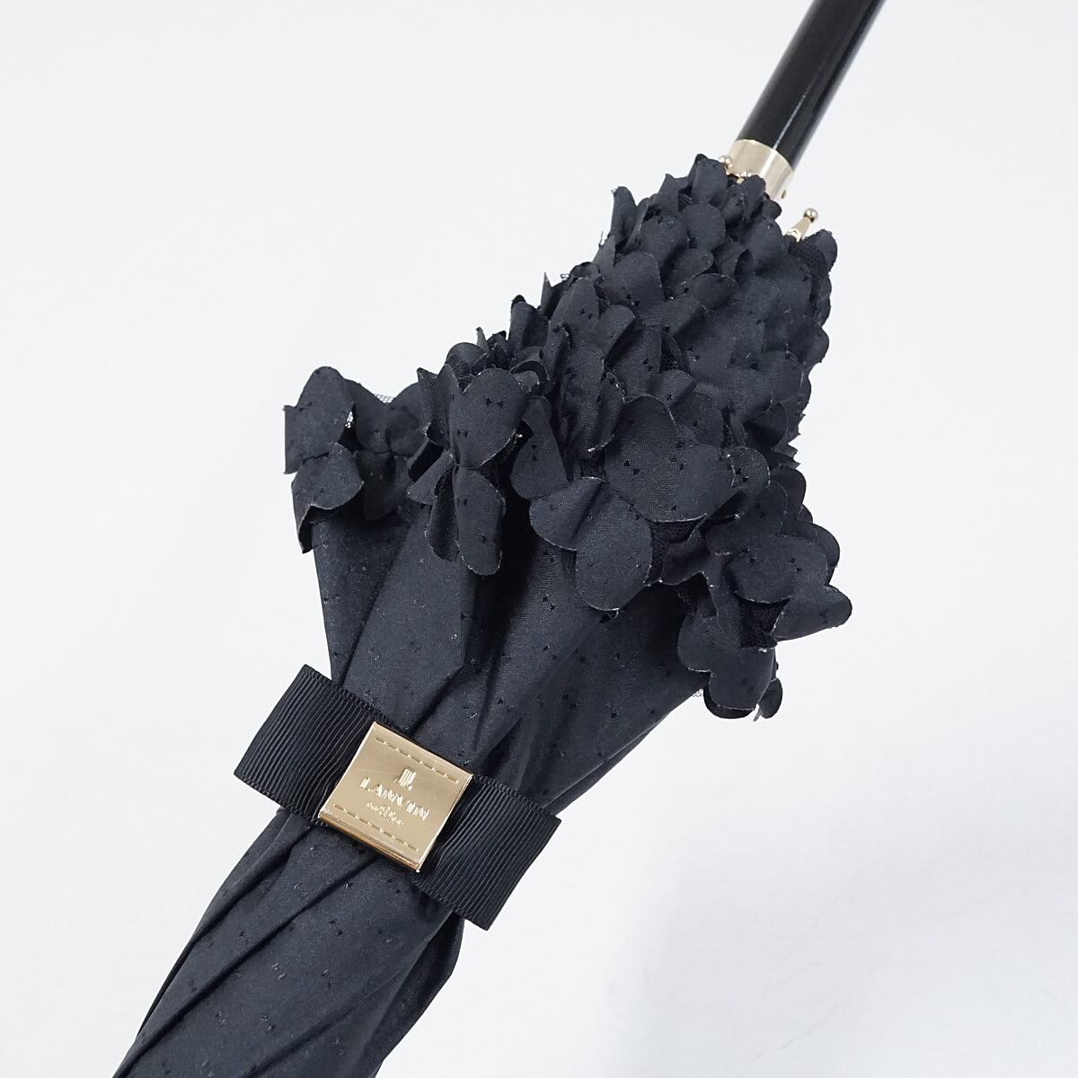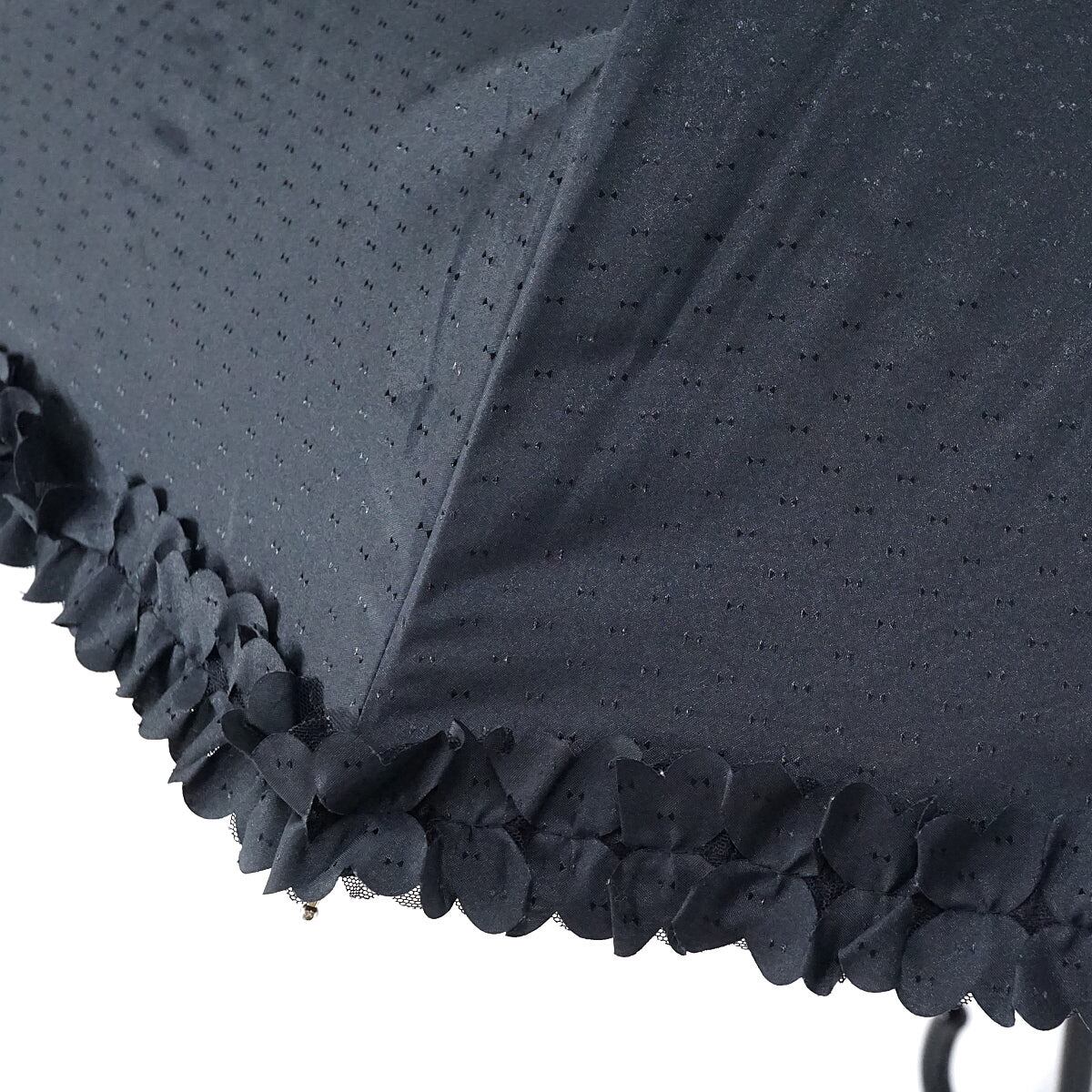 晴雨兼用日傘 LANVIN en Bleu ランバンオンブルー USED品 ドビーフリル リボンドット UV グラス骨 ブラック かわいい 58cm A2998