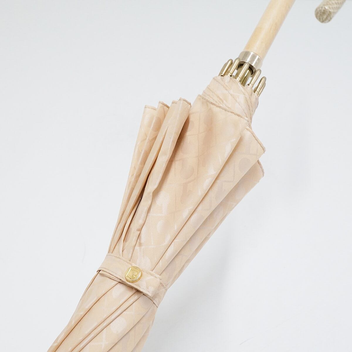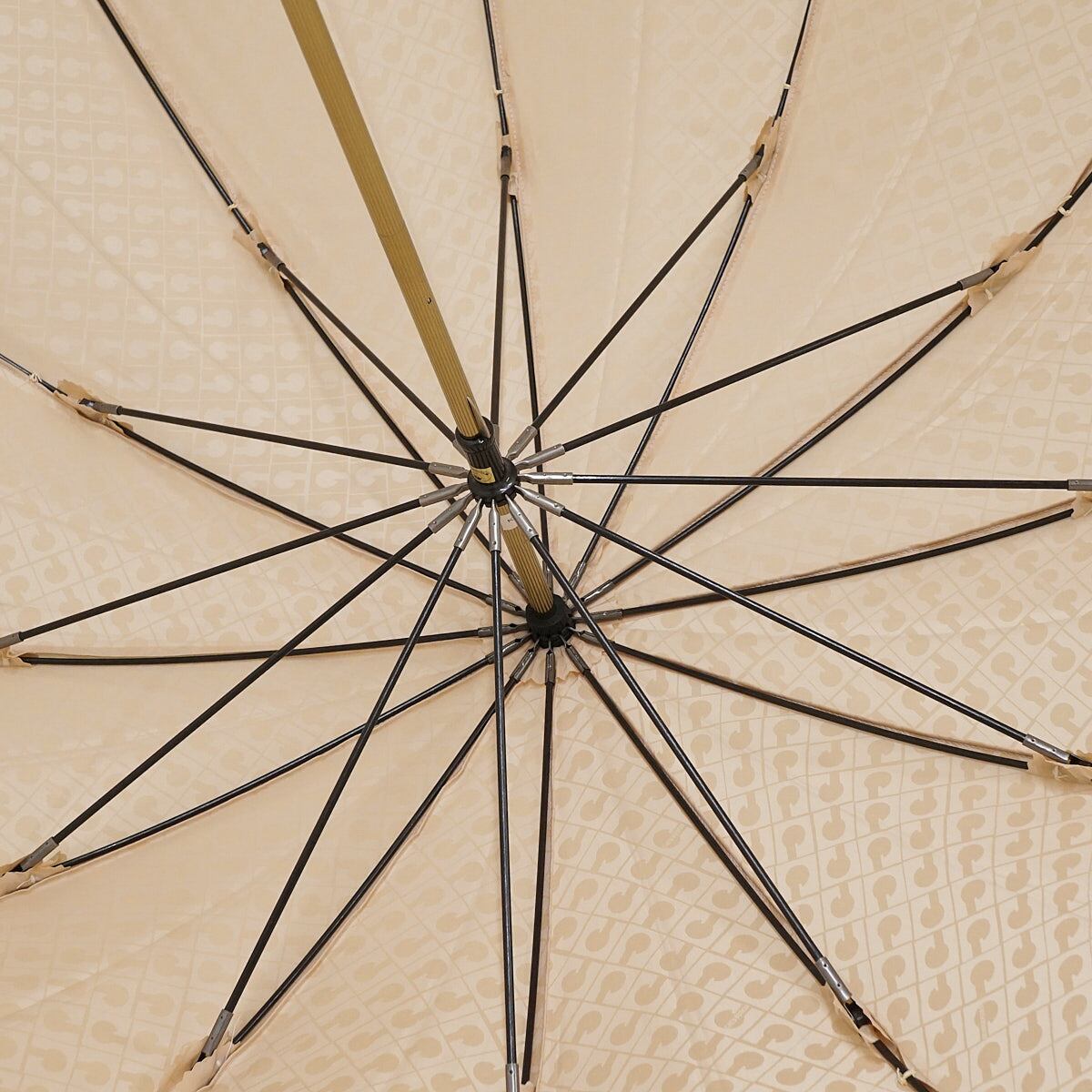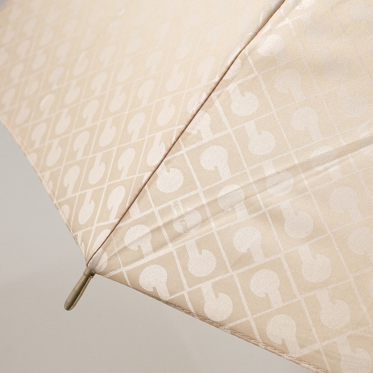 12本骨傘 GHERARDINI ゲラルディーニ USED美品 モノグラム Gロゴ ライトベージュ グラス骨 多間 リザード柄x木製手元 58cm S2250
