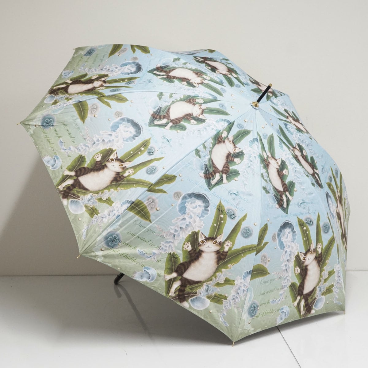優しいカラーリングで描かれた、猫のダヤンがキュートなパラソルです。