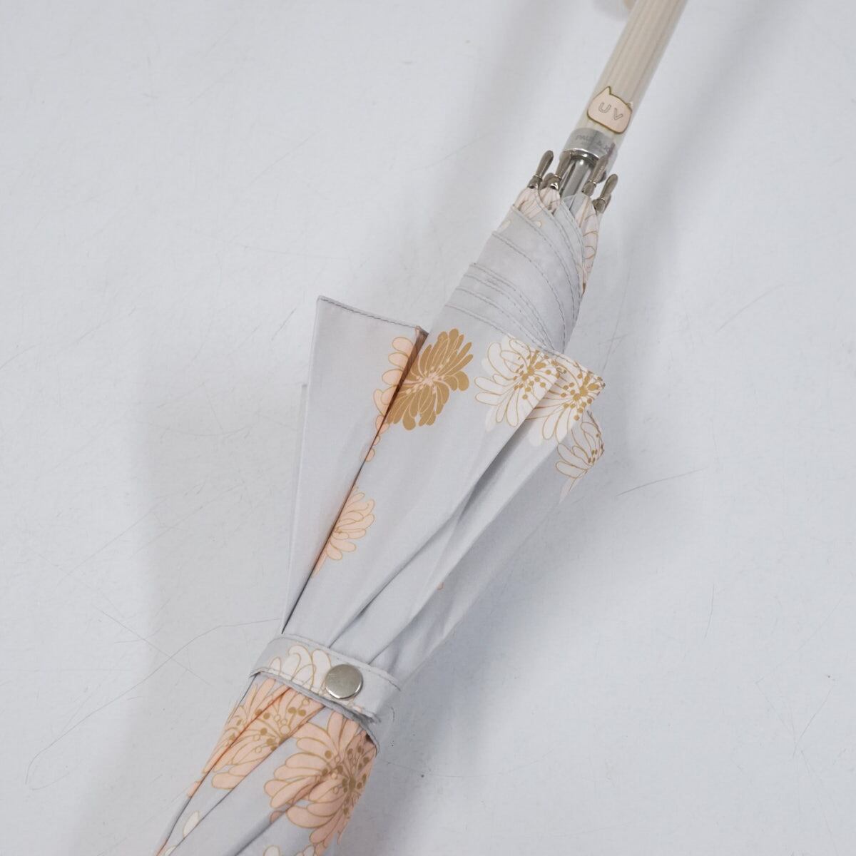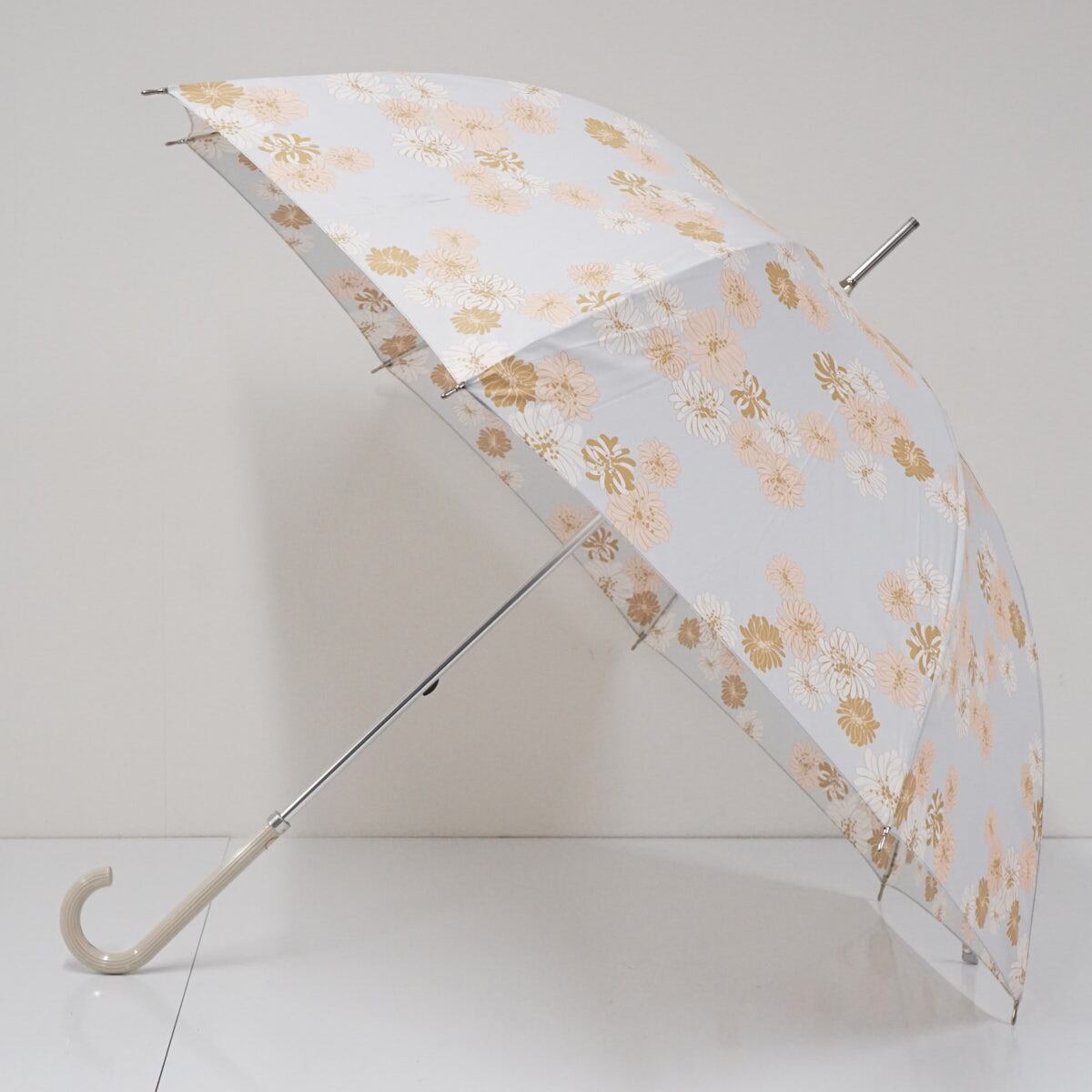 傘 PAUL&JOE ポールアンドジョー USED美品 クリザンテーム ライトグレー かわいい ブランド 花柄 60cm A2260