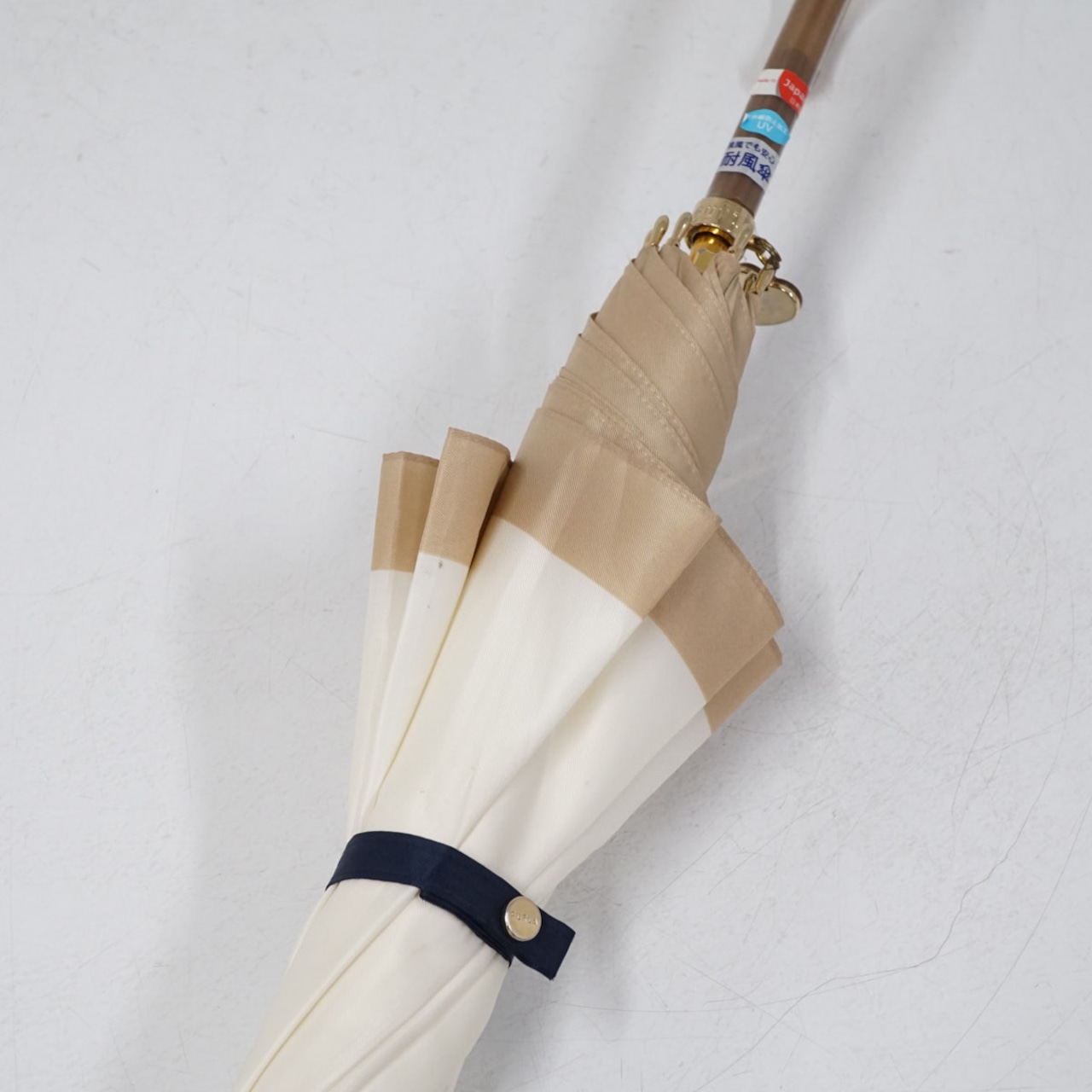 傘 FURLA フルラ USED美品 カラーボーダー ベージュ ネイビー ジャンプ 耐風 グラス骨 60cm S3172