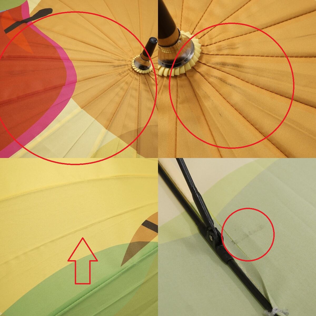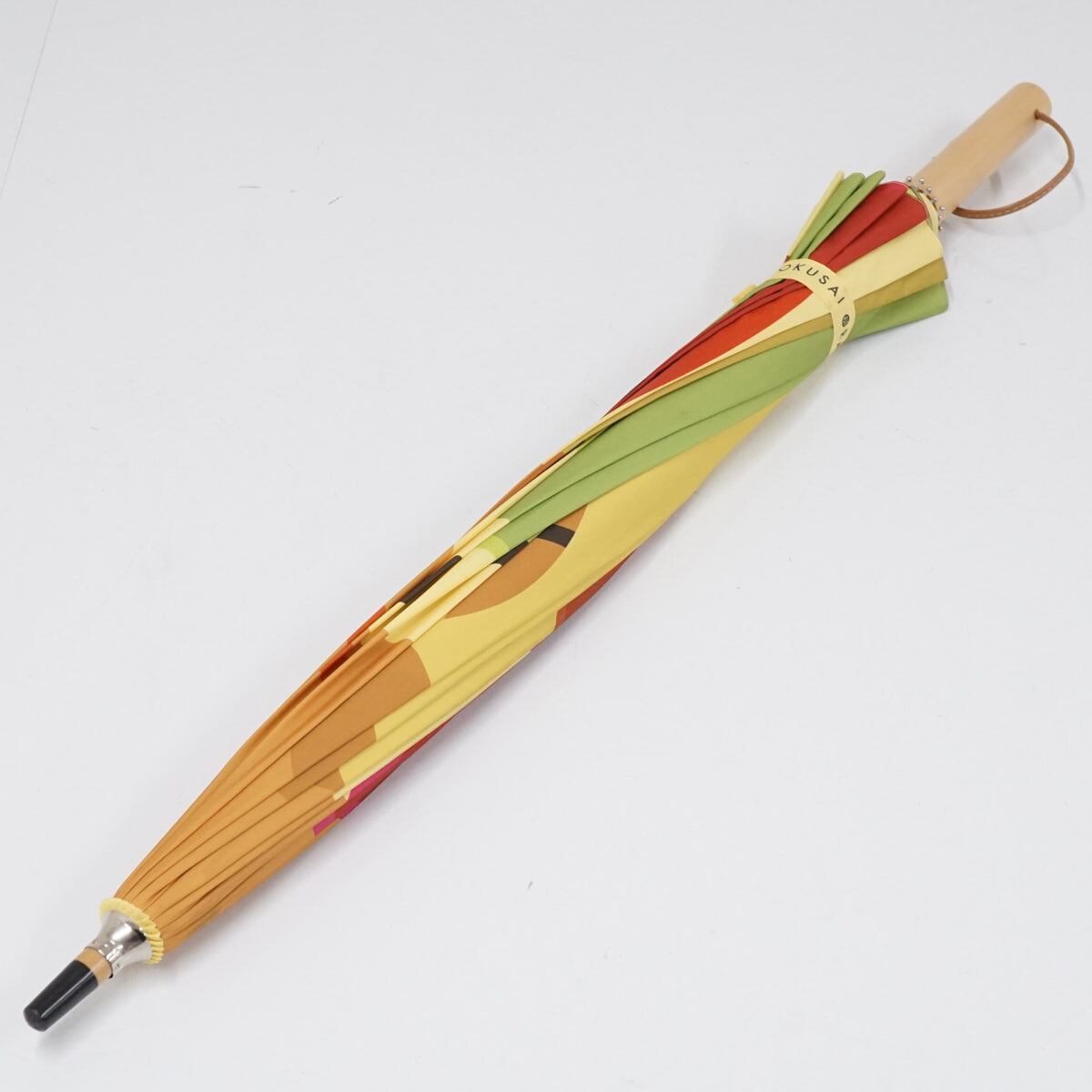 16本骨傘 北斎グラフィック USED品 りんご 和柄テキスタイル グラス骨 多間 UV 60cm A2353