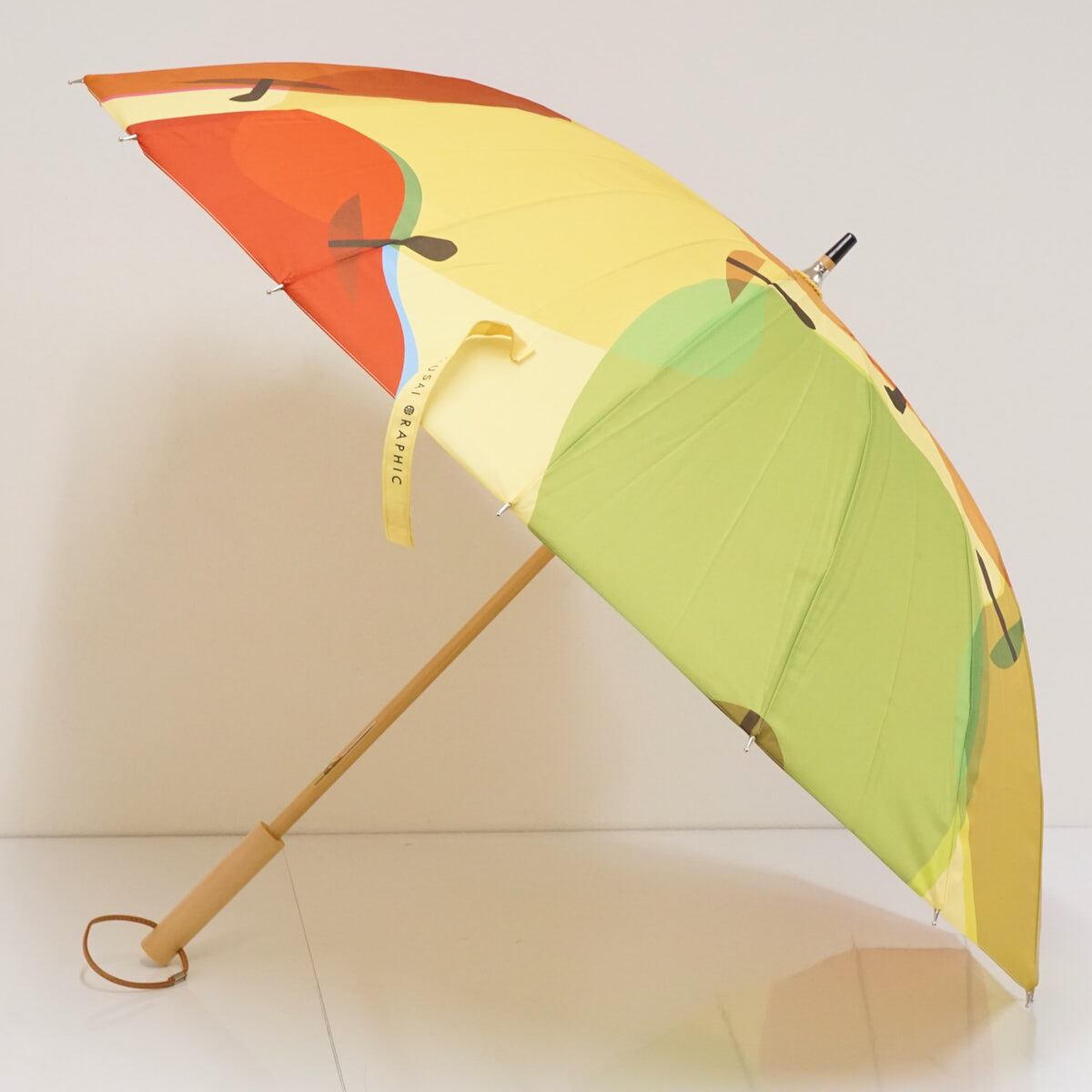 カラフルなリンゴが並んだ可愛らしいデザインの傘です。