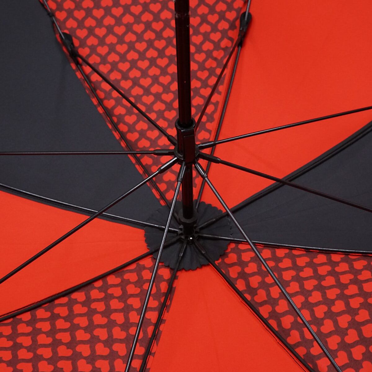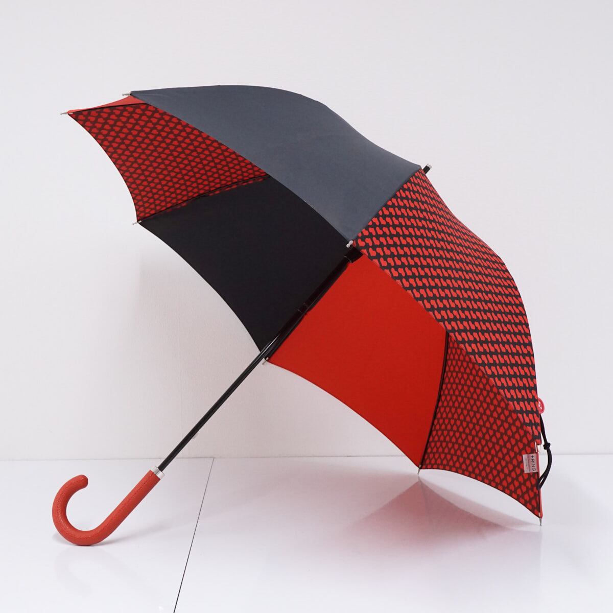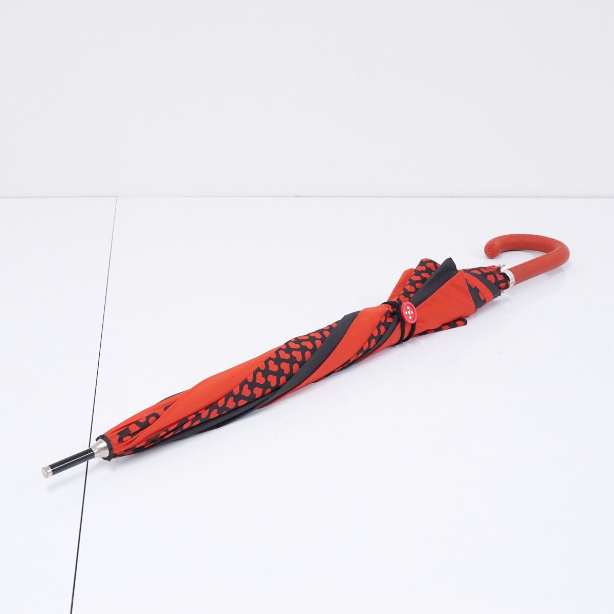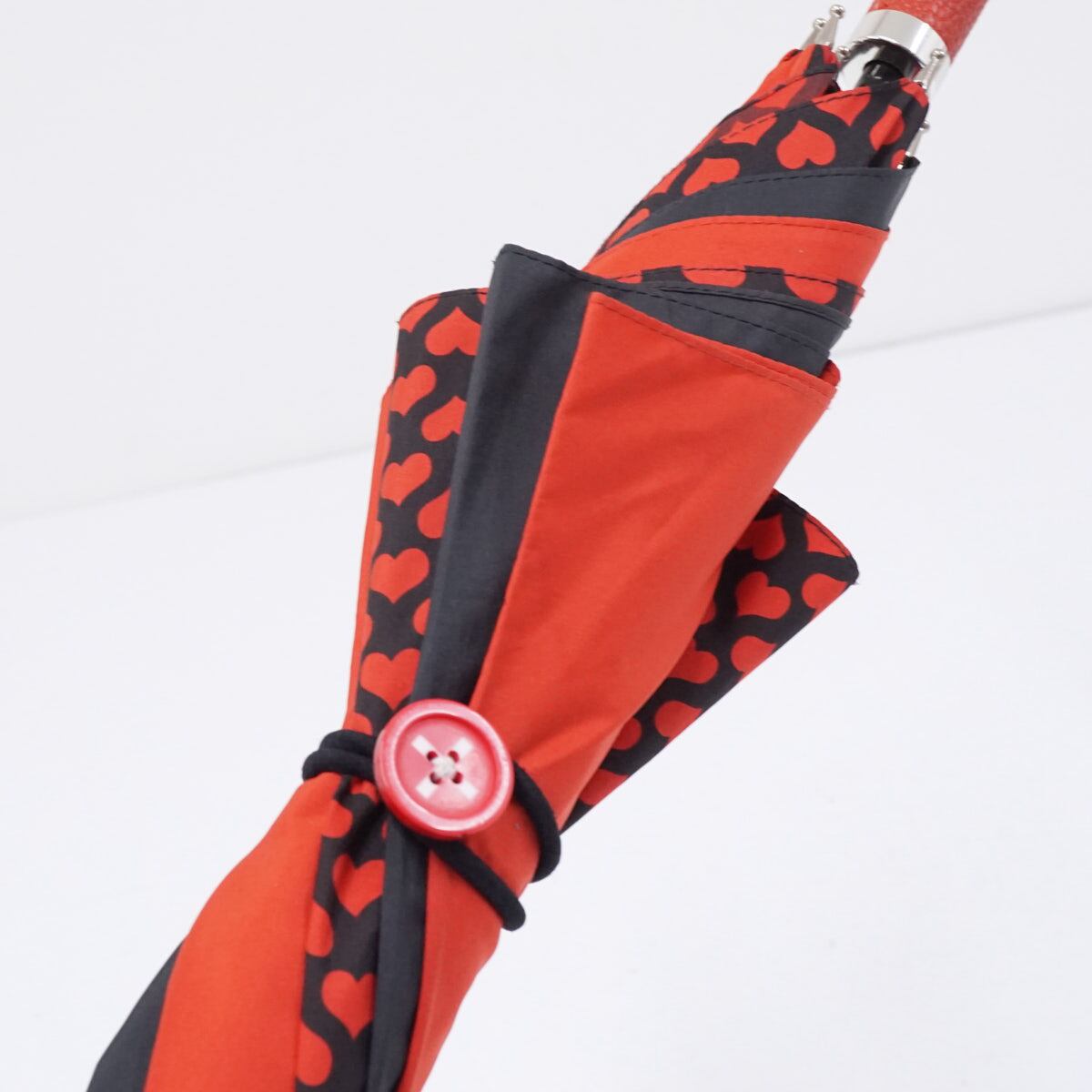 +RING プラスリング 傘 USED美品 ハート×無地 レッド×黒 手元レザー カジュアル パンキッシュ 60cm A2284
