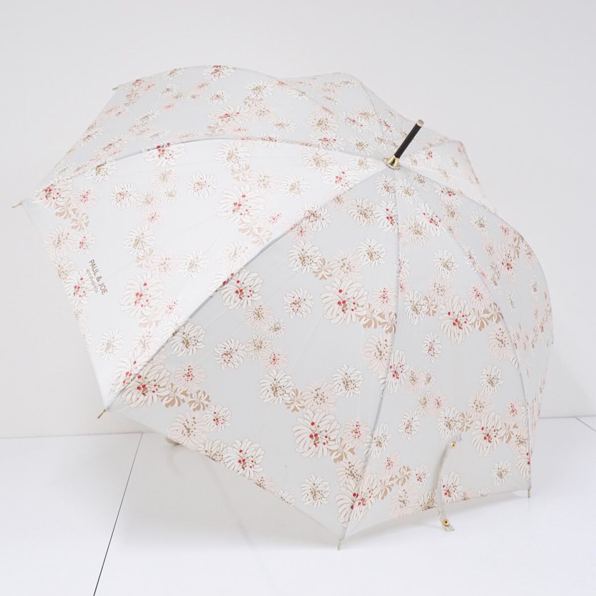 傘 PAUL&JOE ACCESSOIRES ポール&ジョー アクセソワ USED美品 クリザンテーム ライトグレー系 60cm キュート フラワー A2285