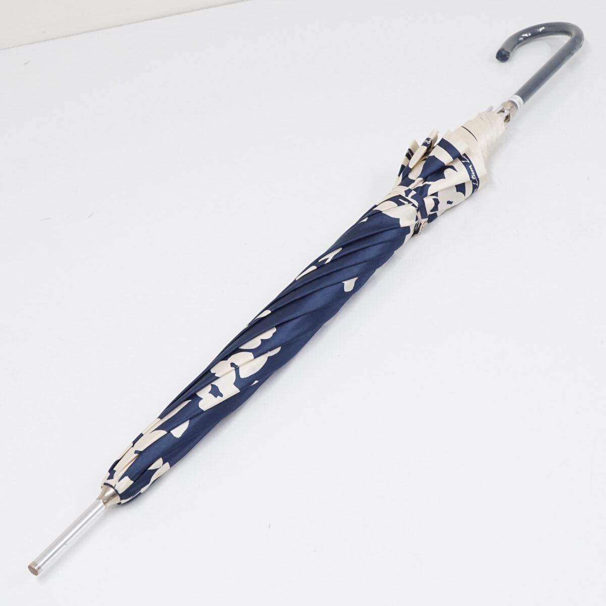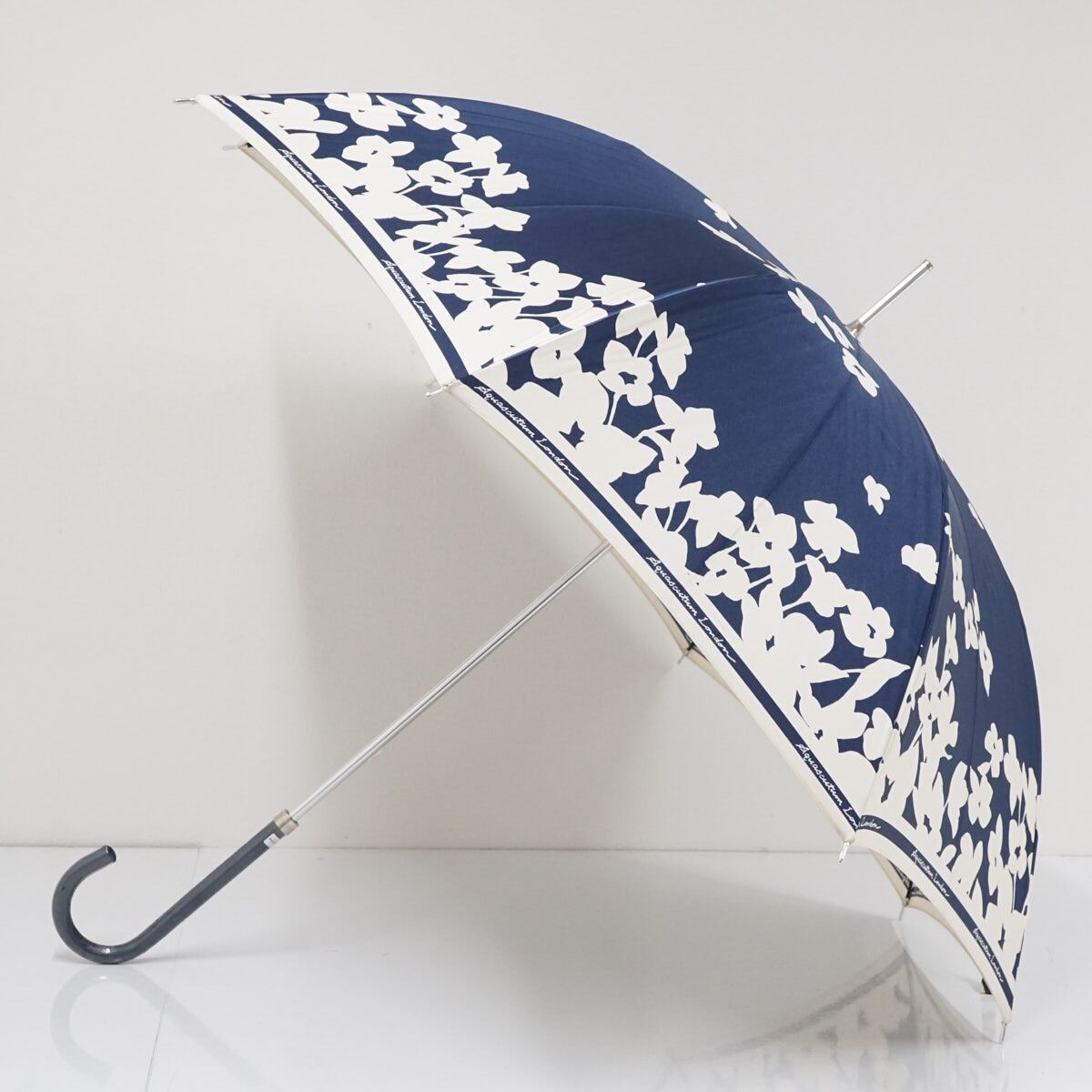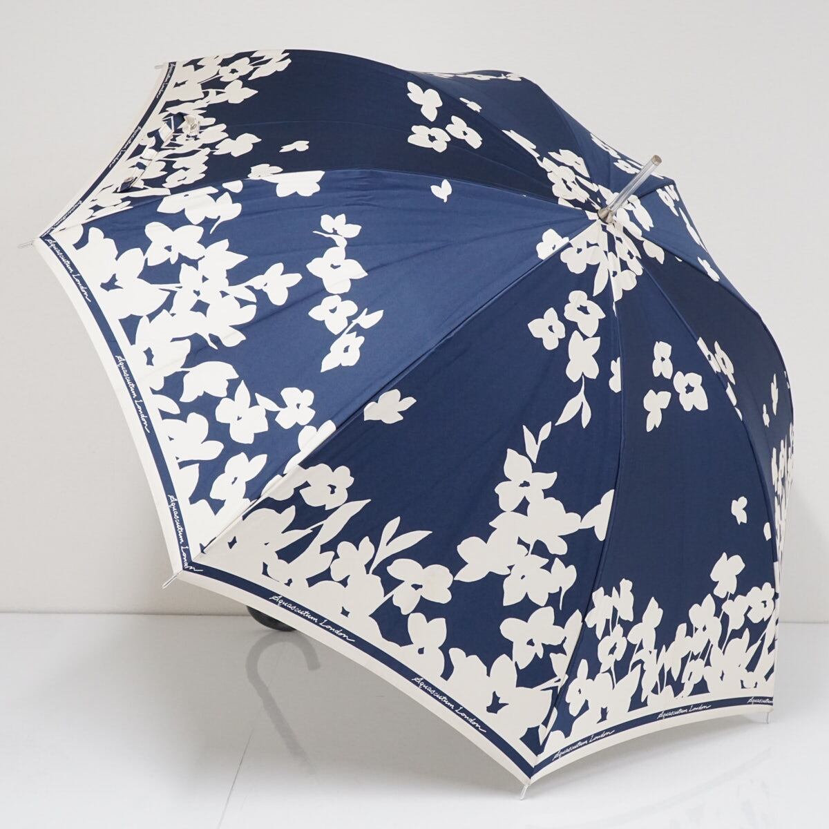 傘 Aquascutum アクアスキュータム USED品 シルエットフラワー ネイビー グラスファイバーフレーム 60cm A2280