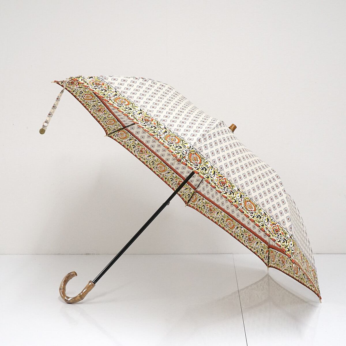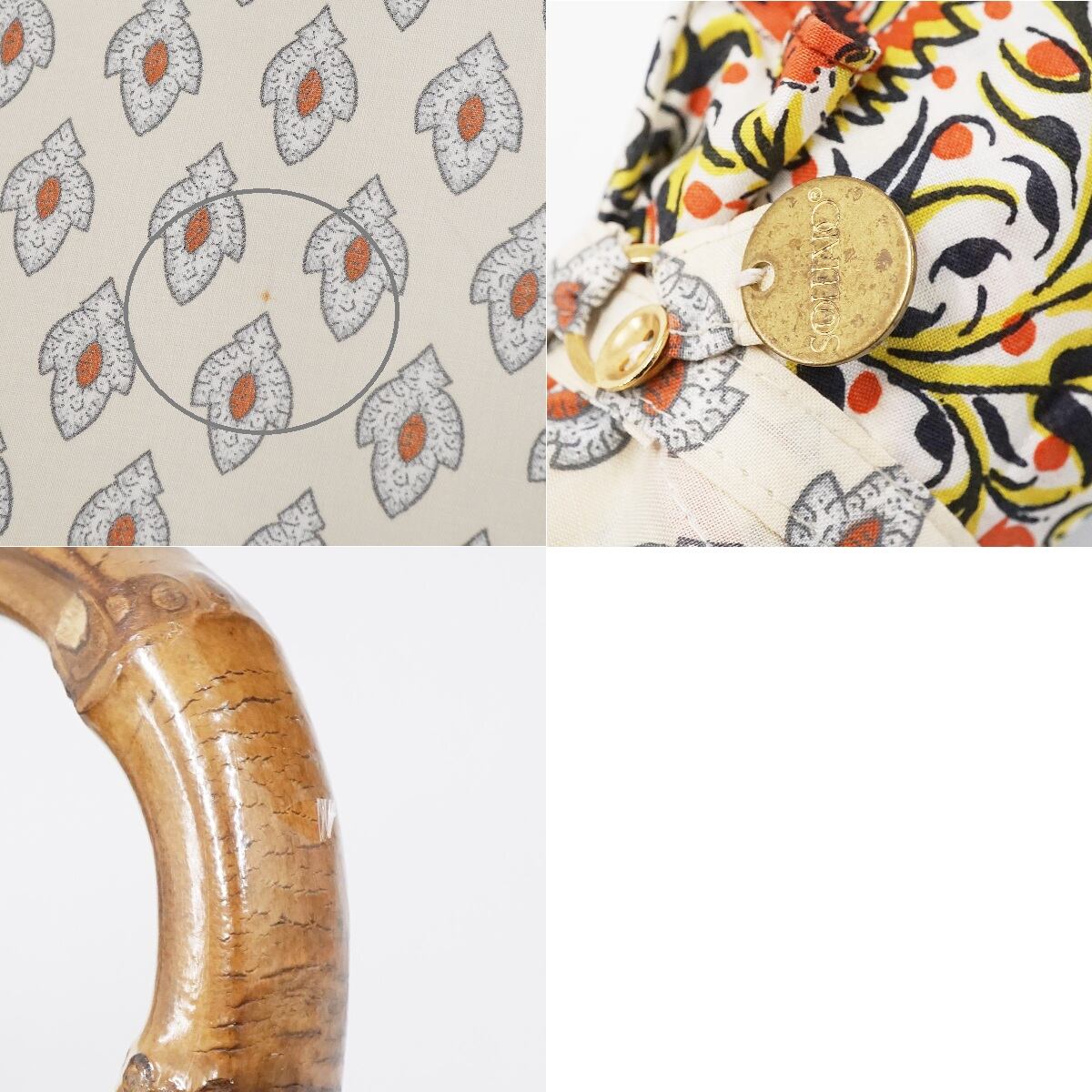 折りたたみ日傘 SOULEIADO ソレイアード USED美品 ビンテージ風 ベージュ系 クラシカル エレガント バンブーハンドル 50cm FS8825