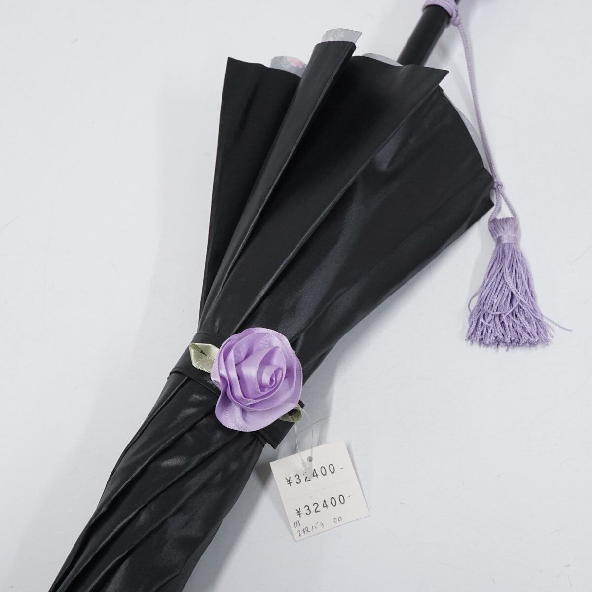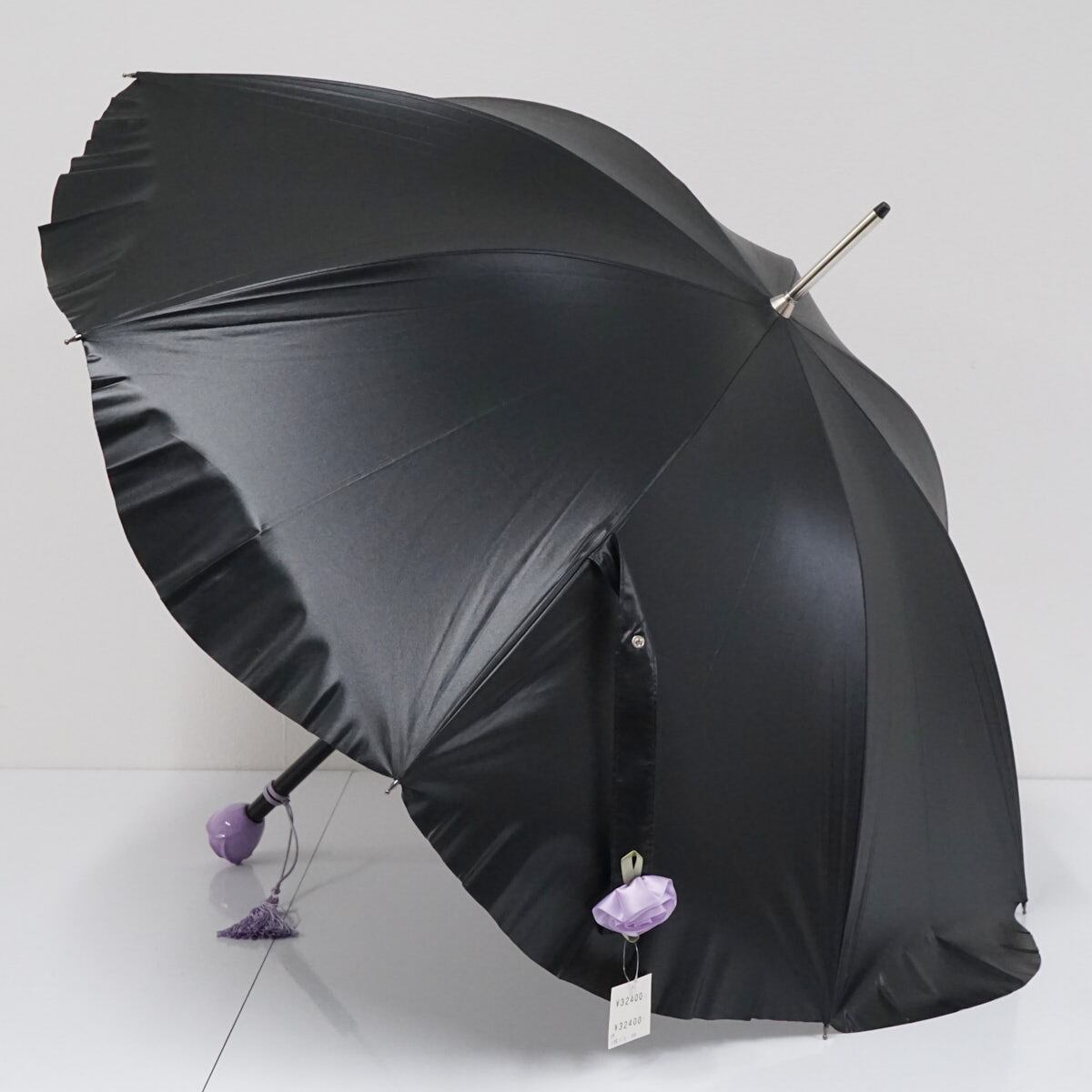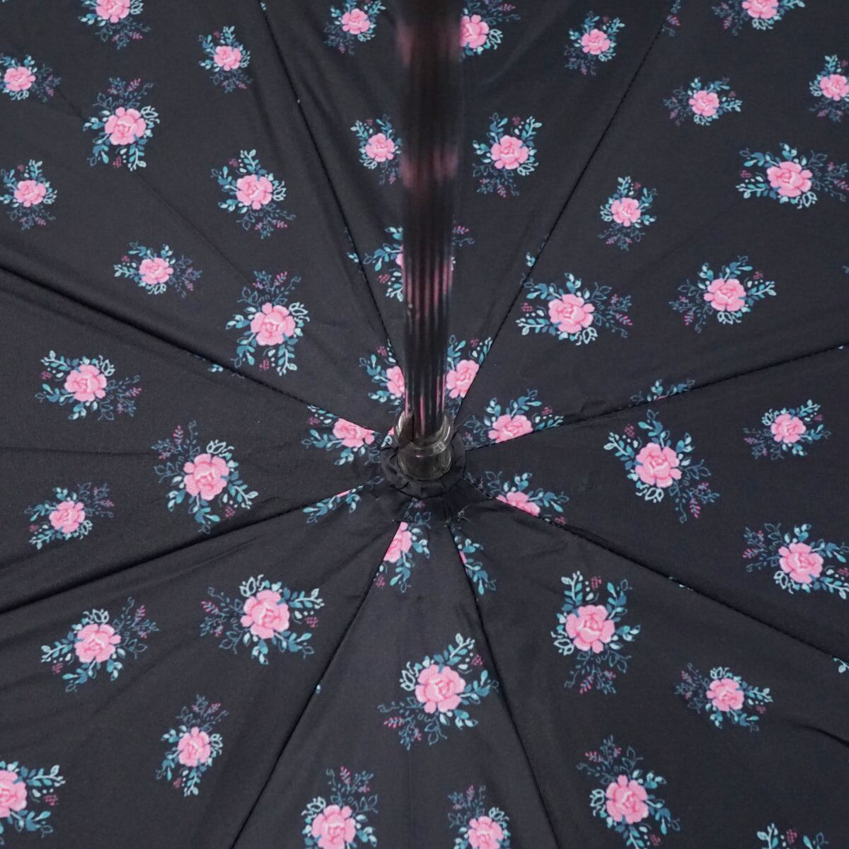 艶のあるブラックの表地と二重張りでフレームを隠した花柄の裏地のコントラストが素敵です。