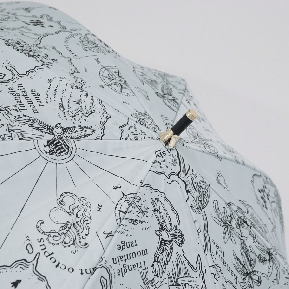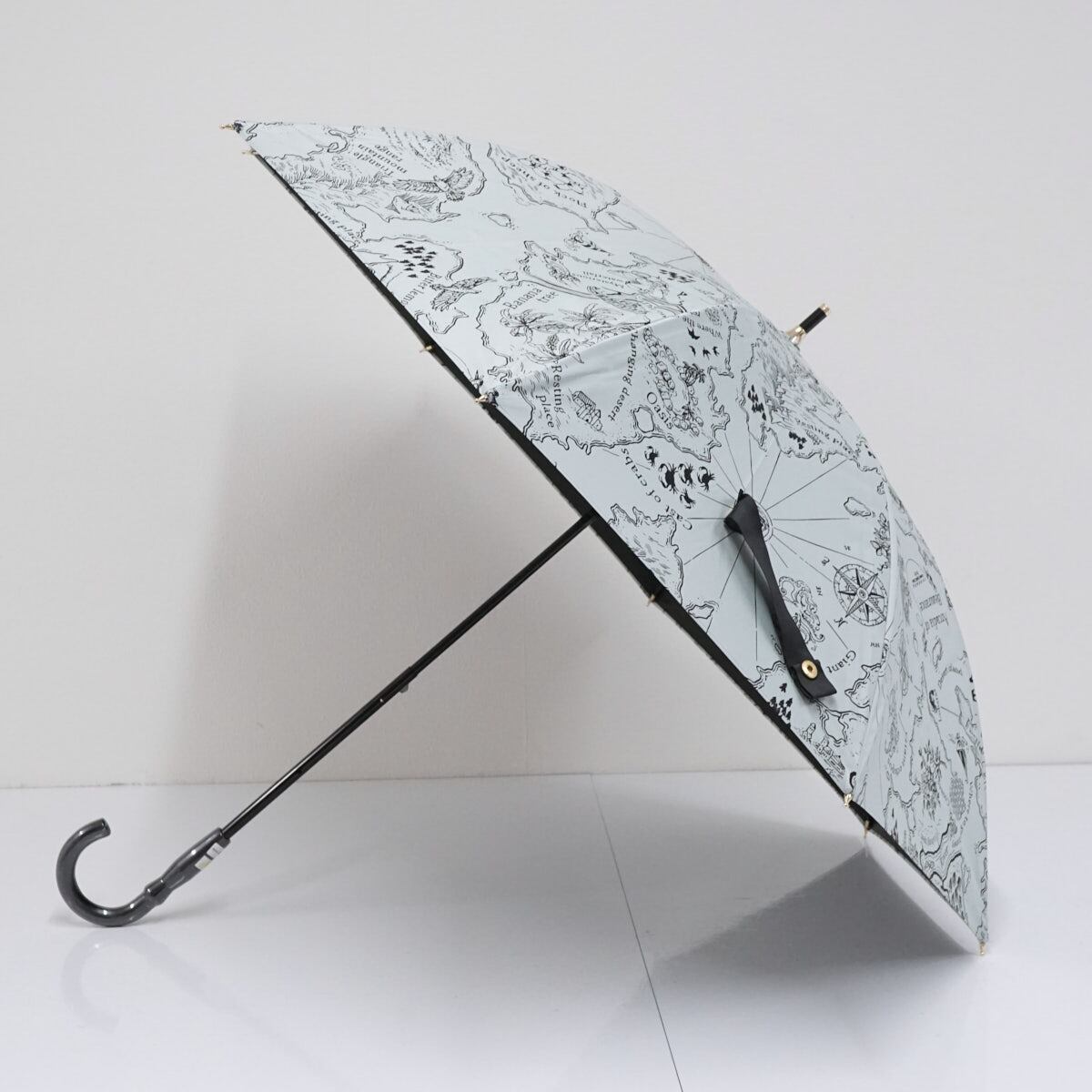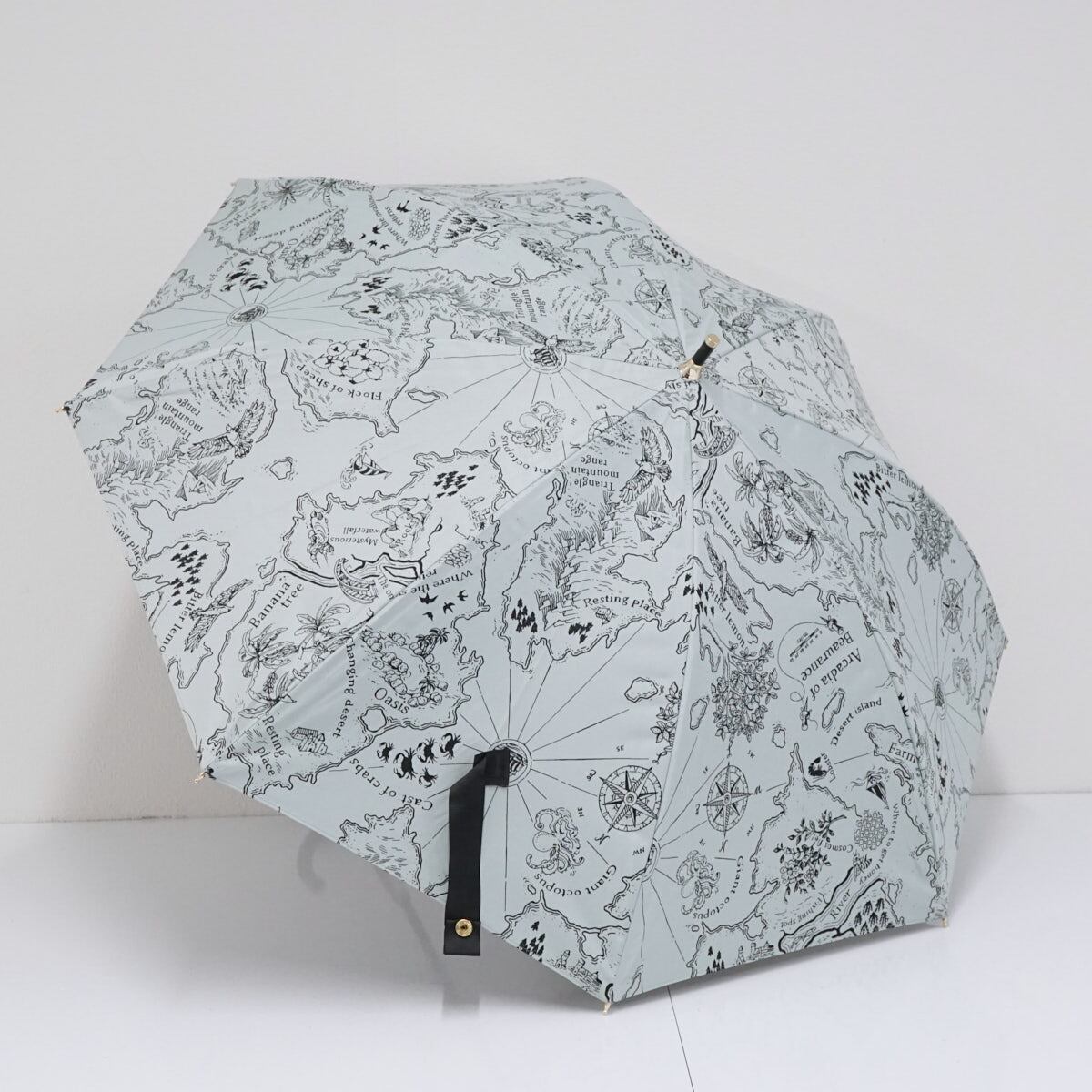 日傘 晴雨兼用 Beaurance ビューランス グリーン系 地図柄 USED美品 東レ サマーシールドLII グラス骨 遮光 遮熱 UV 軽量 50cm S2305