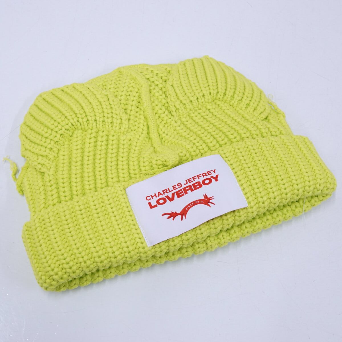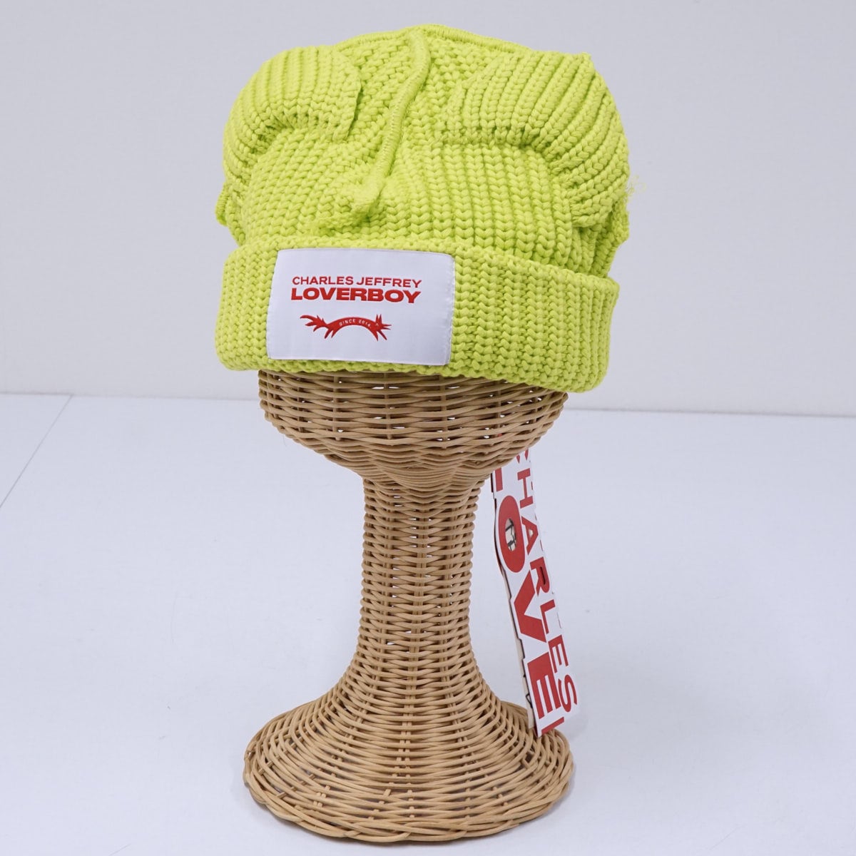 【新品】チャールズジェフリーラバーボーイ ニット帽 CHUNKY EARS BEANIE ネオングリーン 猫耳 X6826