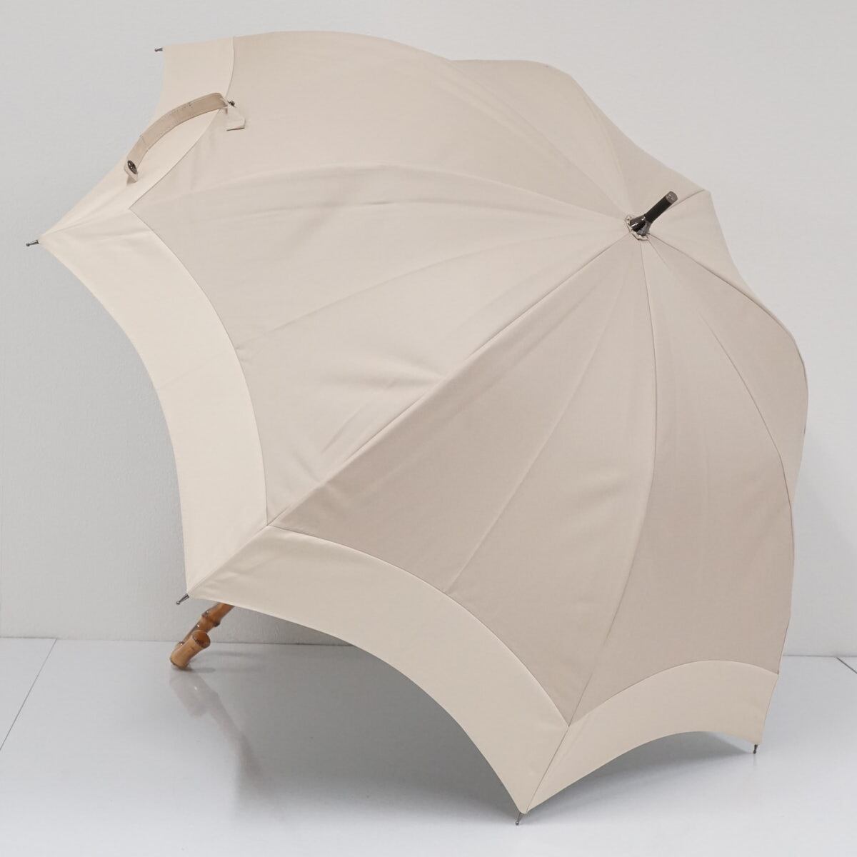 完全遮光日傘 芦屋ロサブラン USED超美品 ミドルサイズ コンビアーチ シャンパンベージュ ベージュ 寒竹 UV 遮熱 55cm S2321
