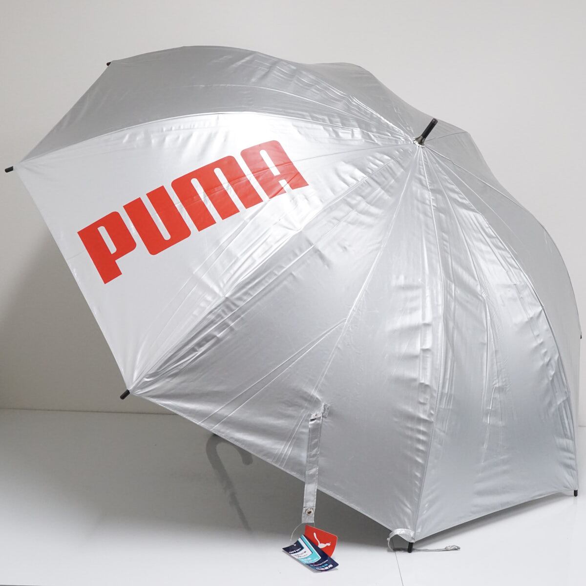 【新品未使用】晴雨兼用傘 PUMA プーマ メンズ シルバー レッド ジャンプ アウトドア UVカット 遮光 遮熱 70cm 超大判 A2331