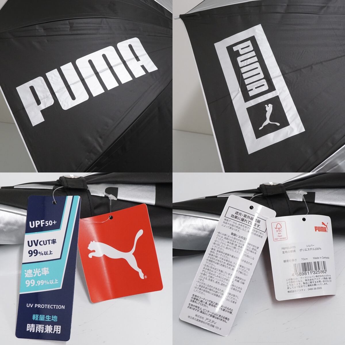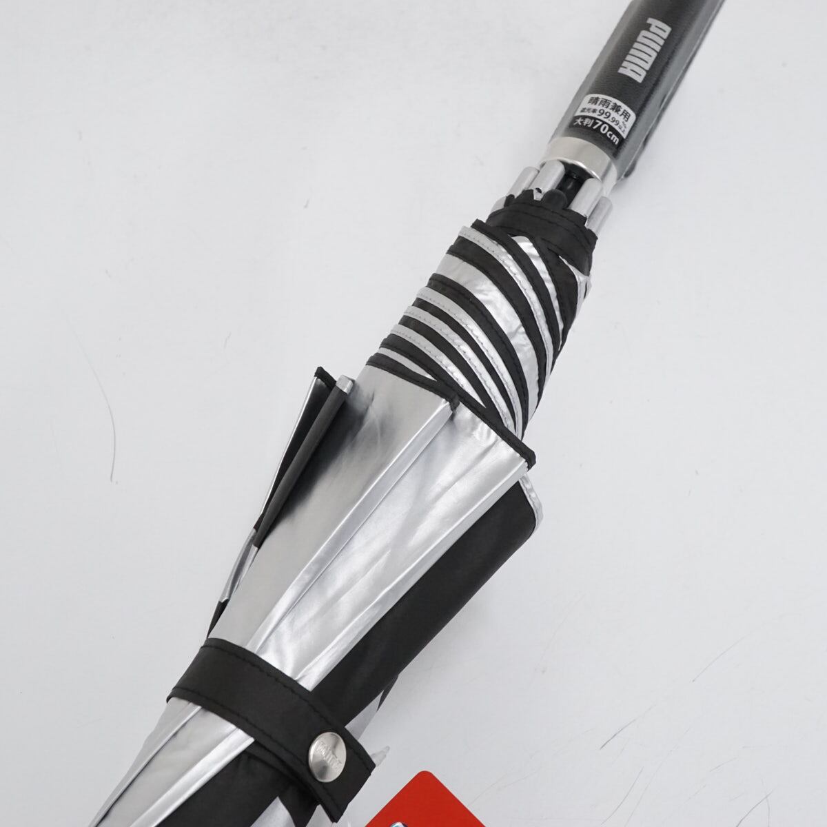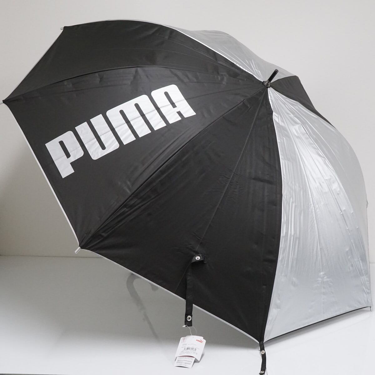 【新品未使用】晴雨兼用傘 PUMA プーマ メンズ シルバー ブラック ジャンプ アウトドア UVカット 遮光 遮熱 70cm 超大判 A2330