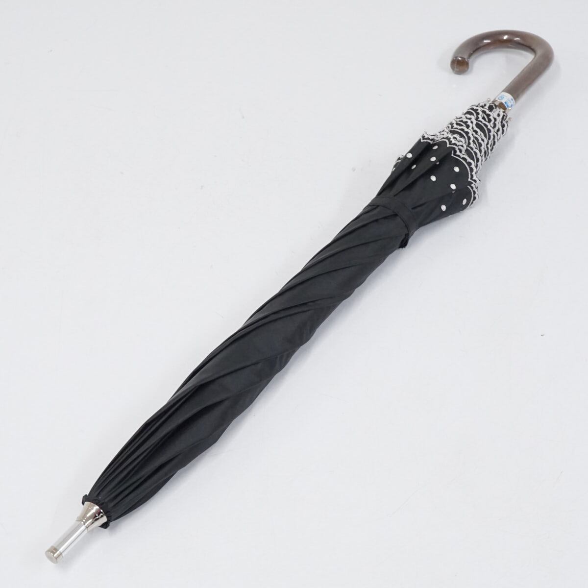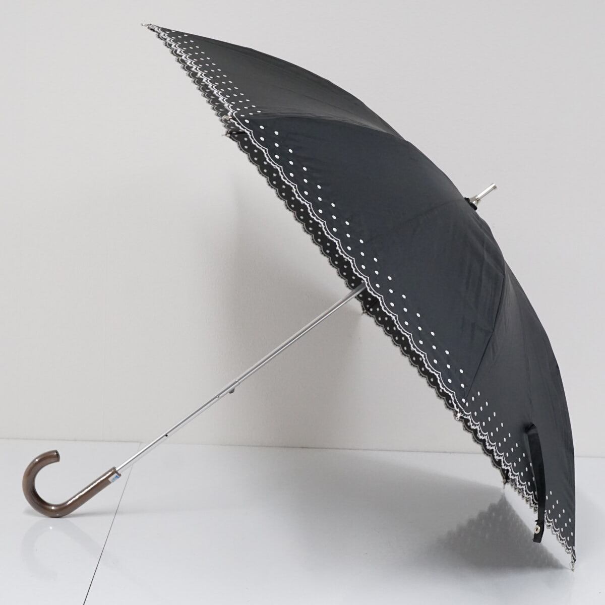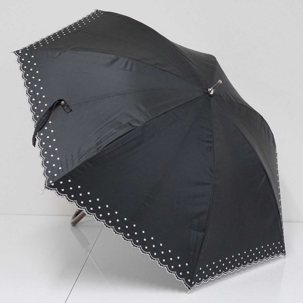 晴雨兼用日傘 Aquascutum アクアスキュータム USED美品 ブラック ドット グラス骨 遮光 UV 軽量 50cm A2323