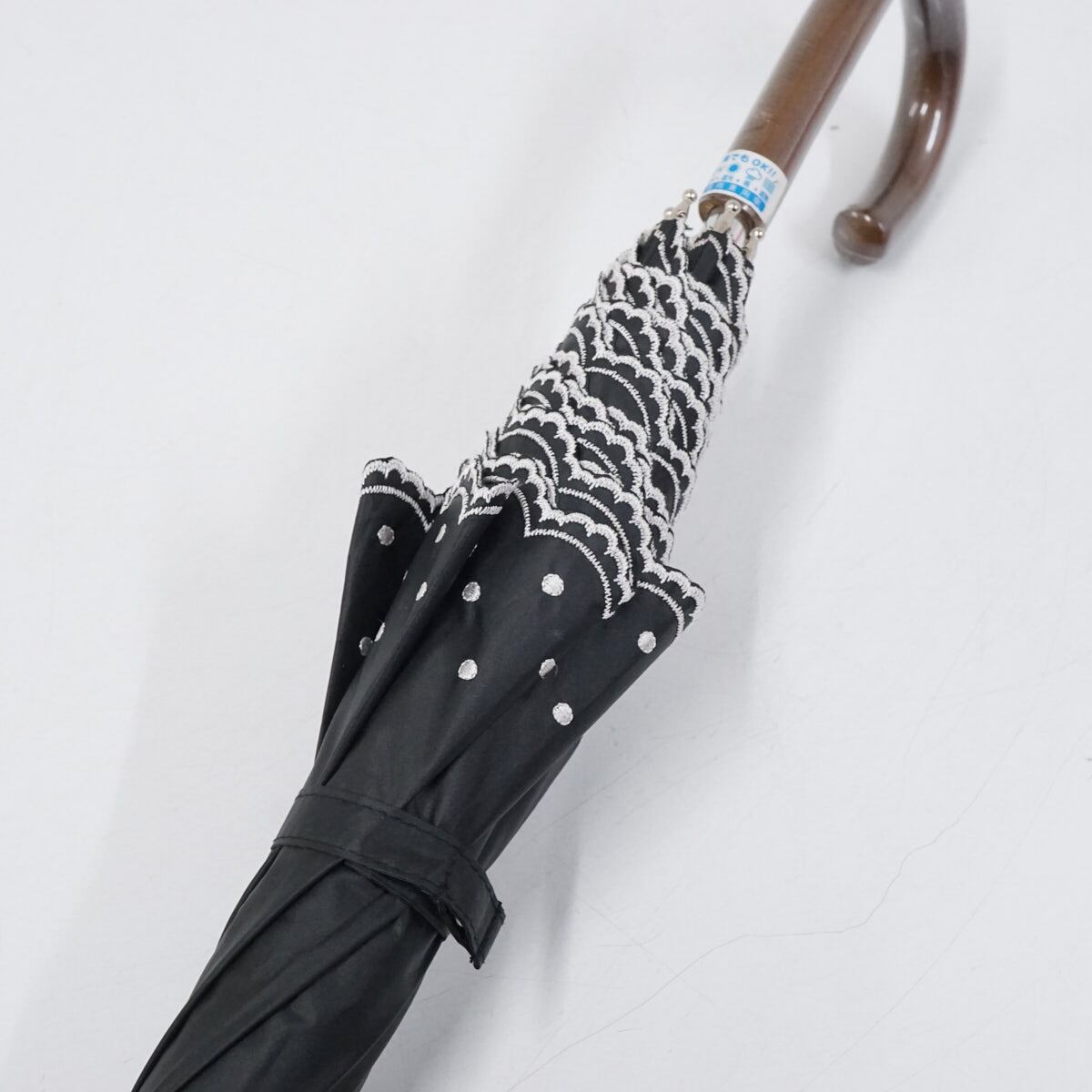 ブラックの生地の縁にドットとスカラップ刺繍を施したデザインです。