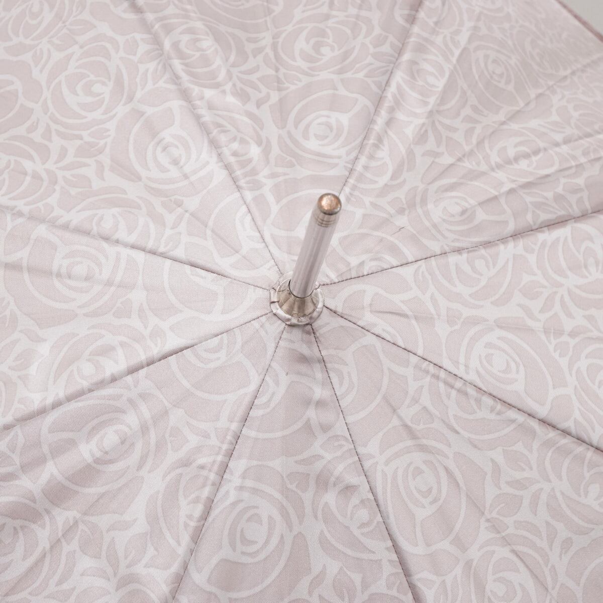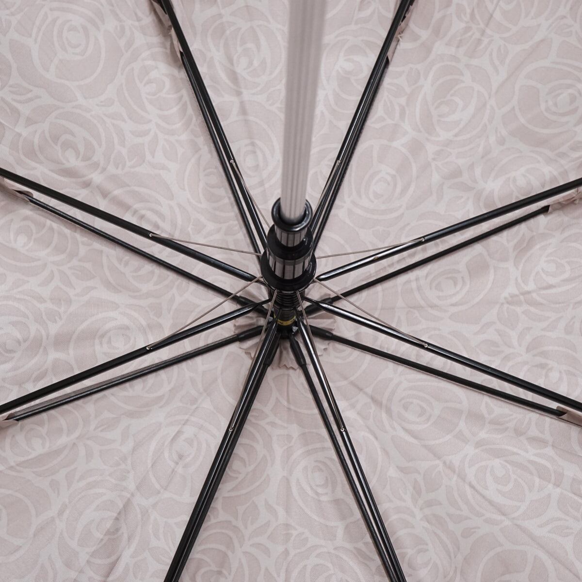 バラ模様の生地の縁に幾何学模様をデザインした傘です。