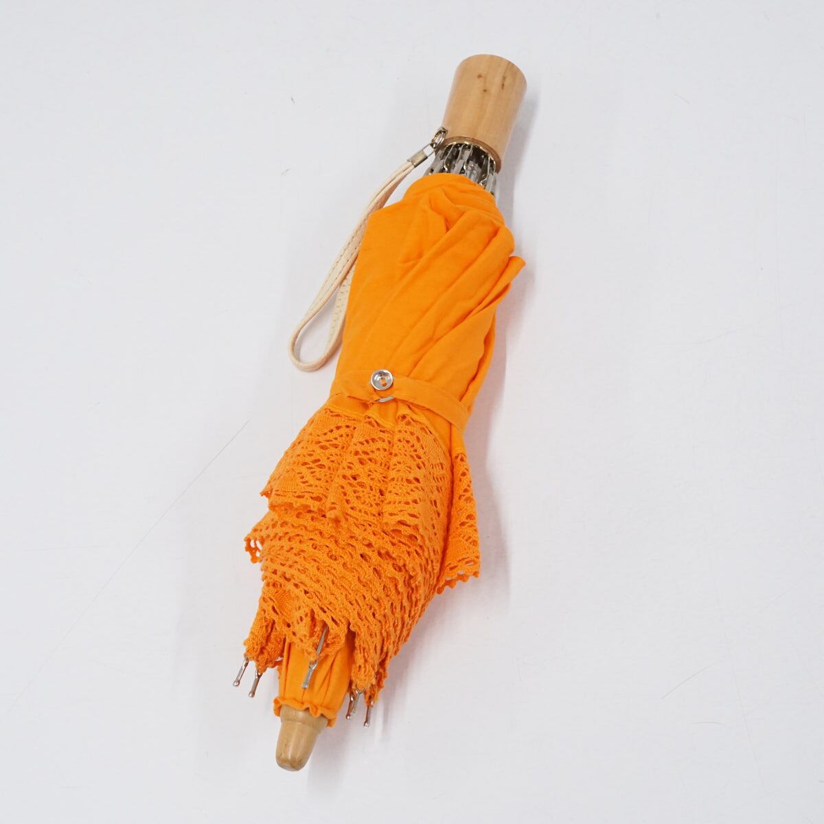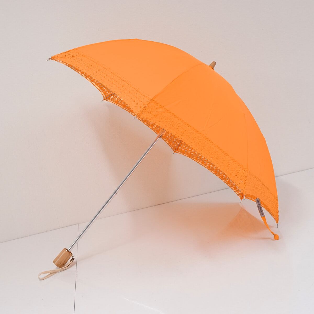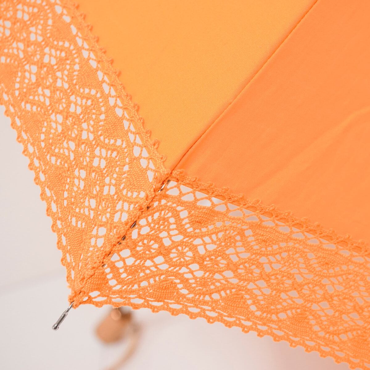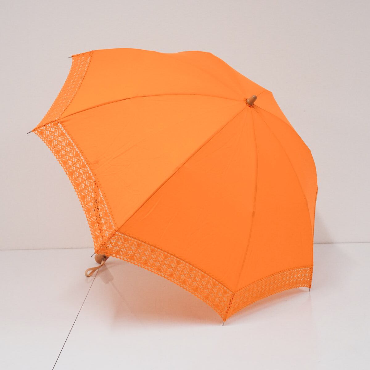 生地のカラーは鮮やかなオレンジ色で、外周のレースが涼しげなデザインです。