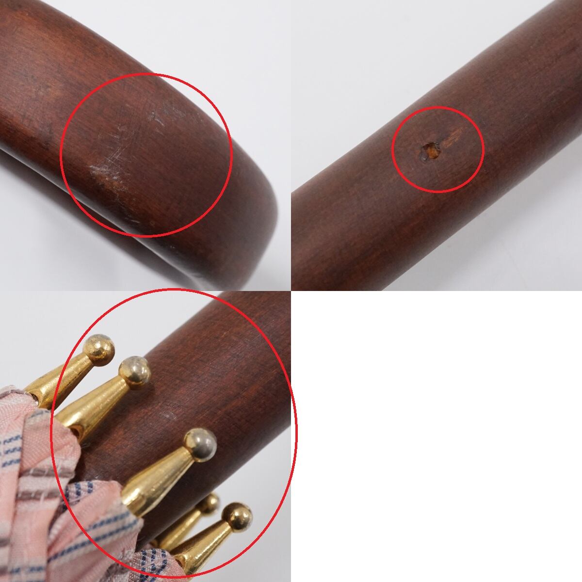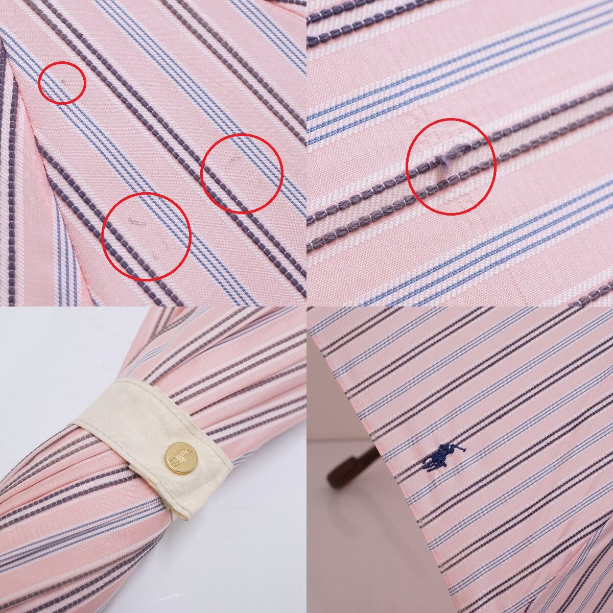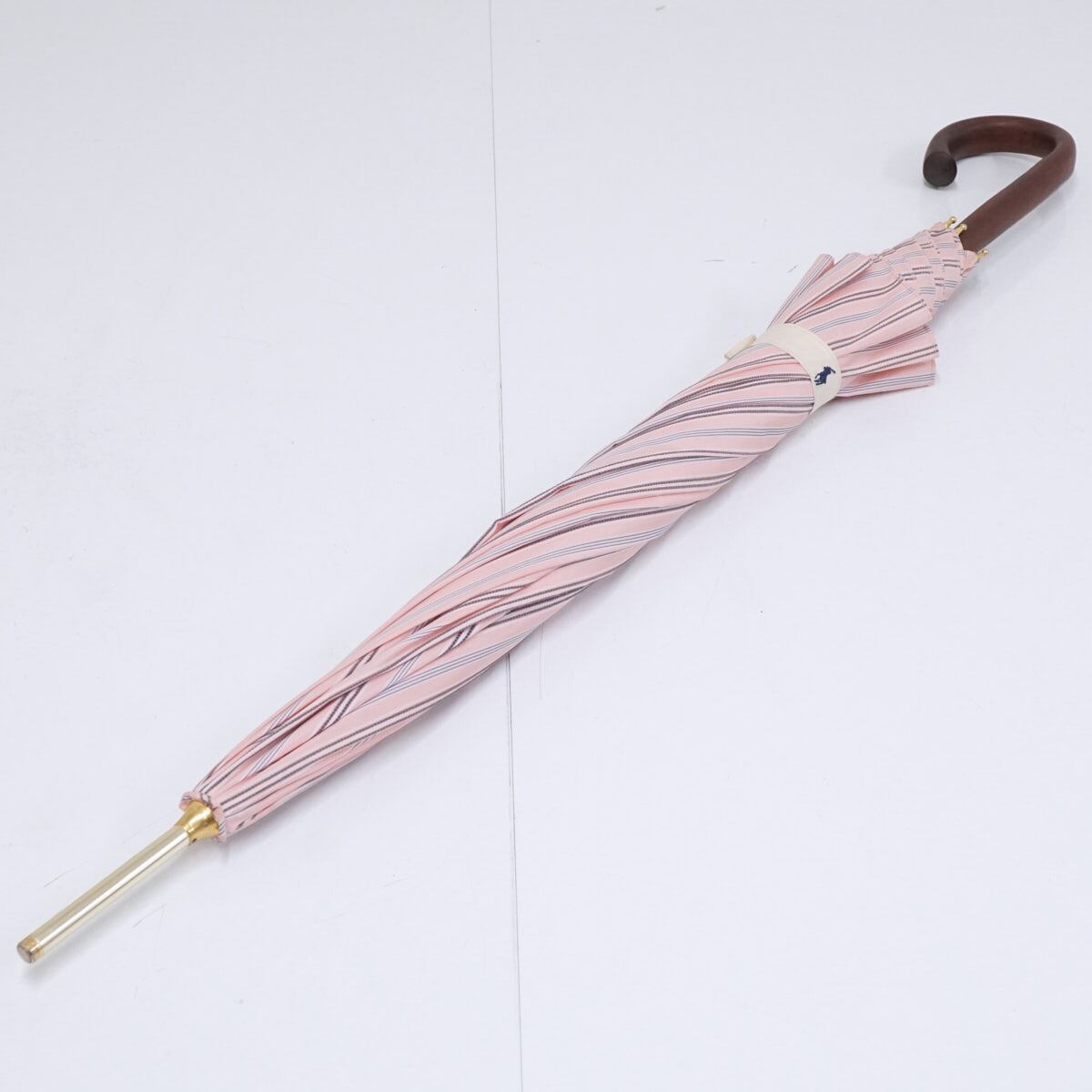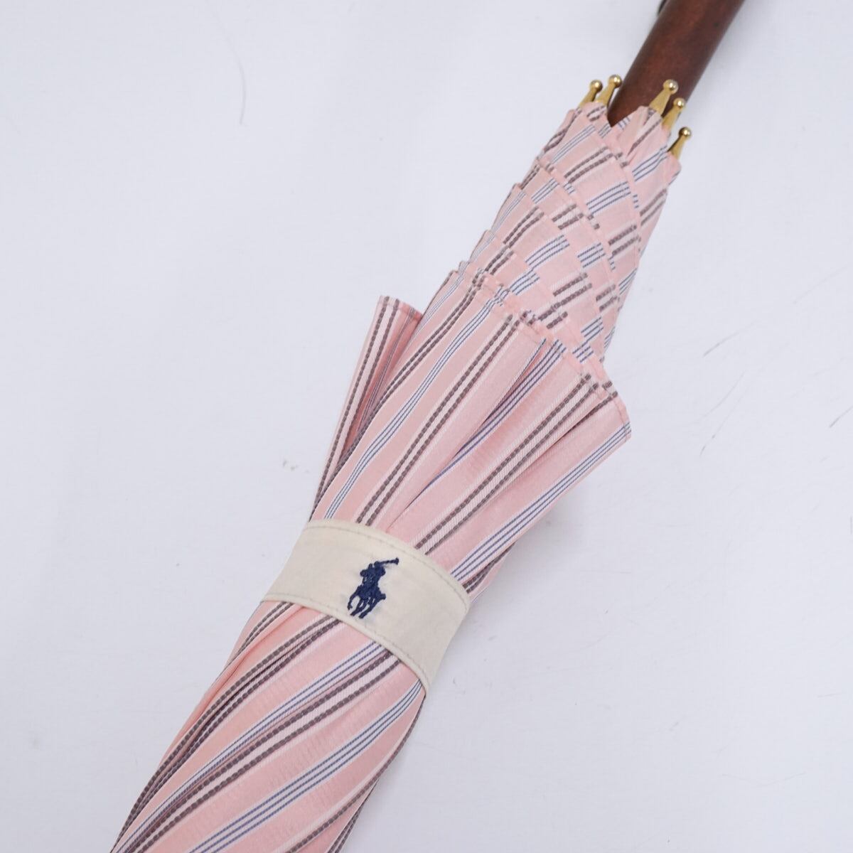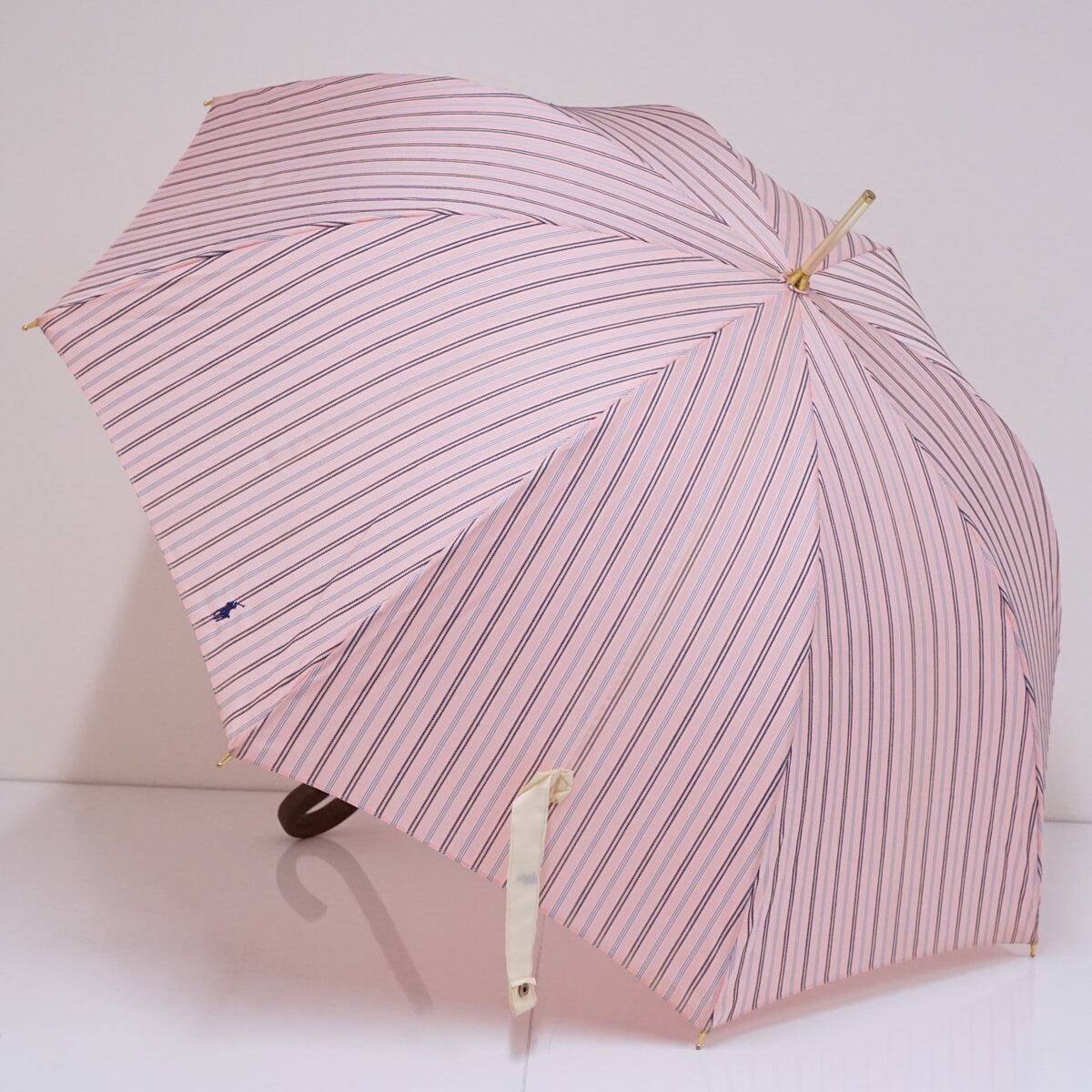 傘 Polo Ralph Lauren ポロラルフローレン USED品 ピンク ストライプ ポロ ブランド 木製手元 60cm S2342