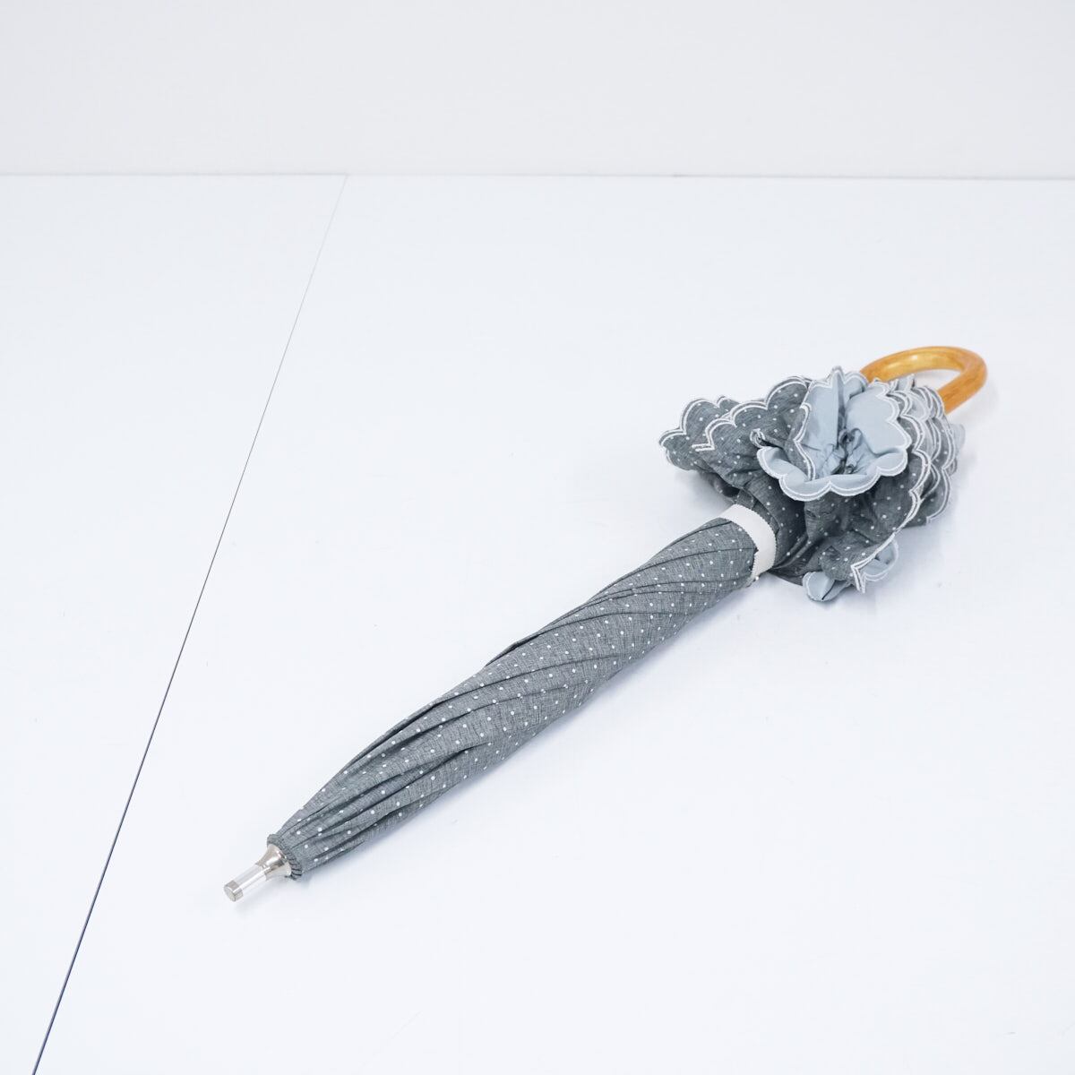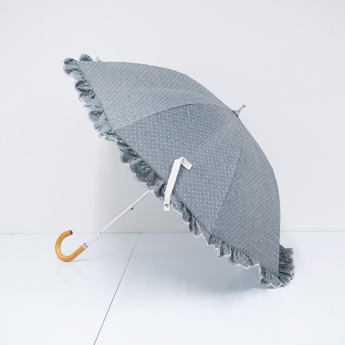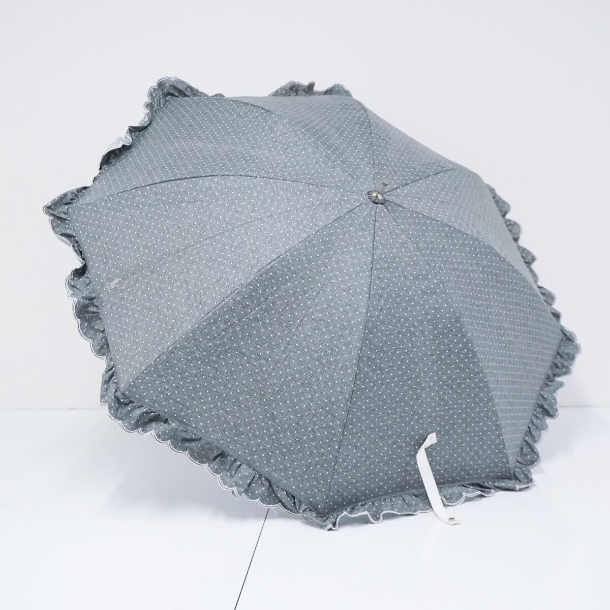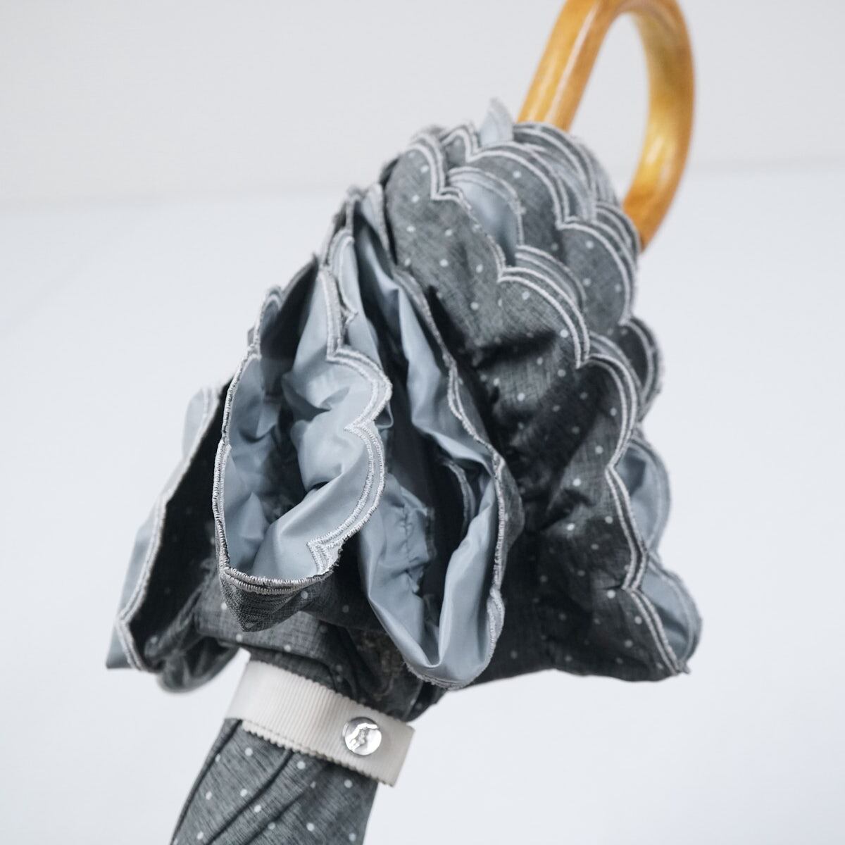 日傘 晴雨兼用 POLO RALPH LAUREN ポロ ラルフローレン USED美品 ボリュームフリル グレー ドット 遮光 遮熱 UV 50cm S2362