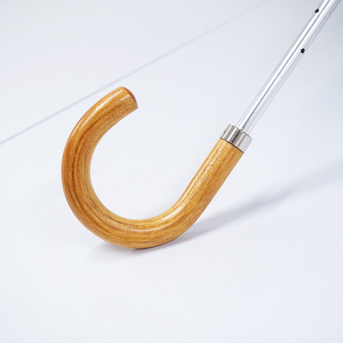 また、手元は木製で、カジュアルな生地のデザインにラグジュアリーな雰囲気をプラスしています。