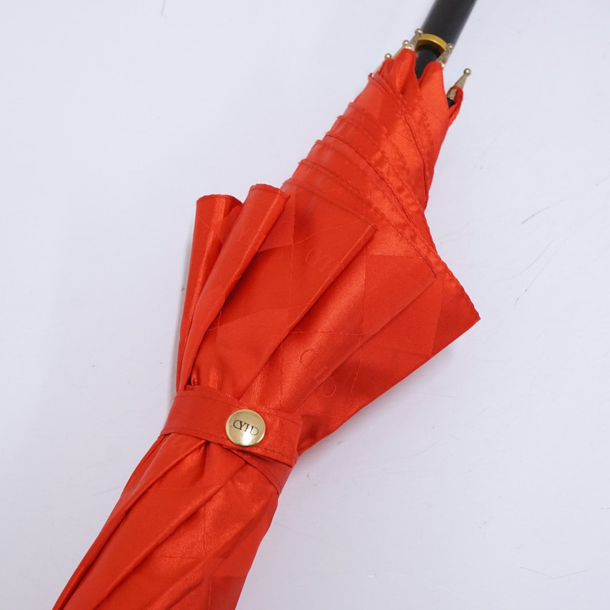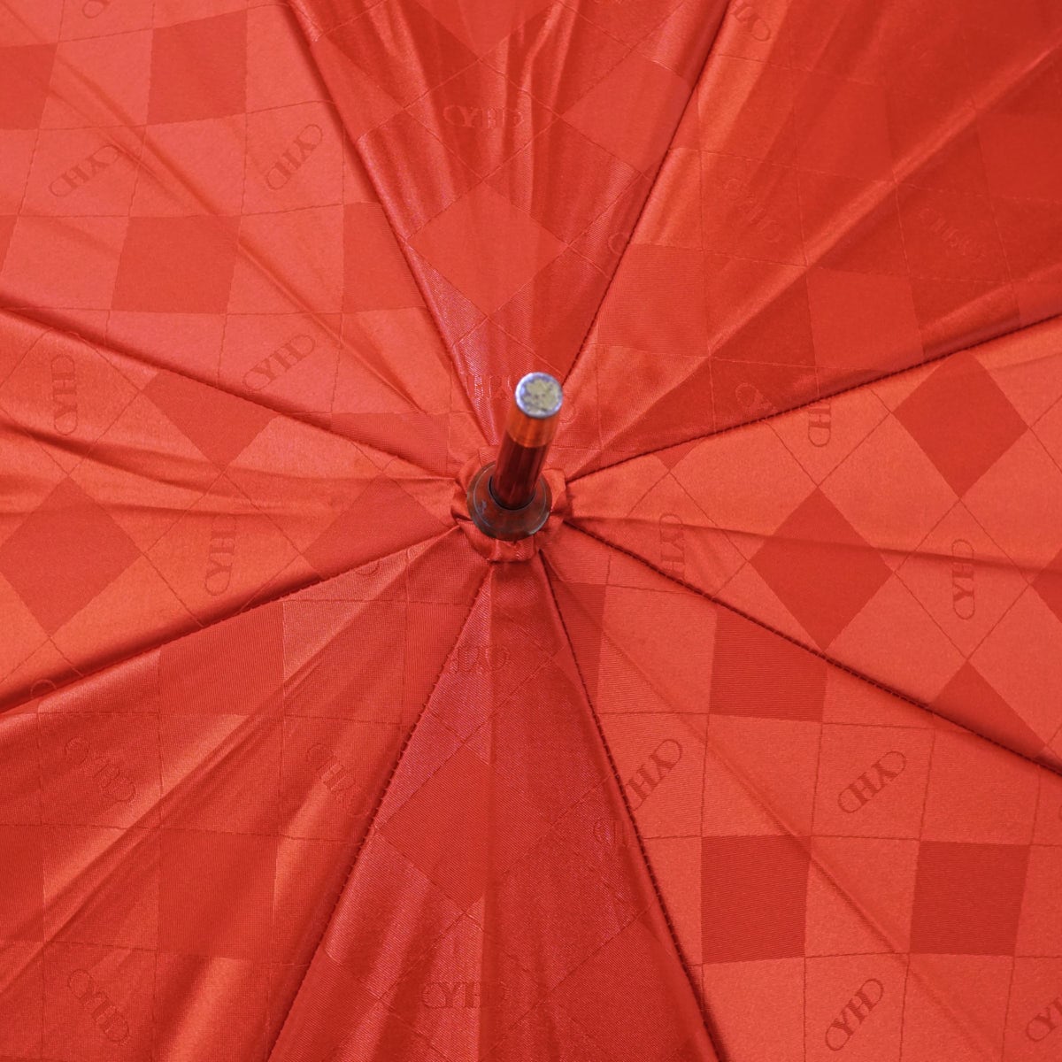 鮮やかなレッドの生地にブロックチェックとブランドロゴをデザインした華やかで上品な傘です。