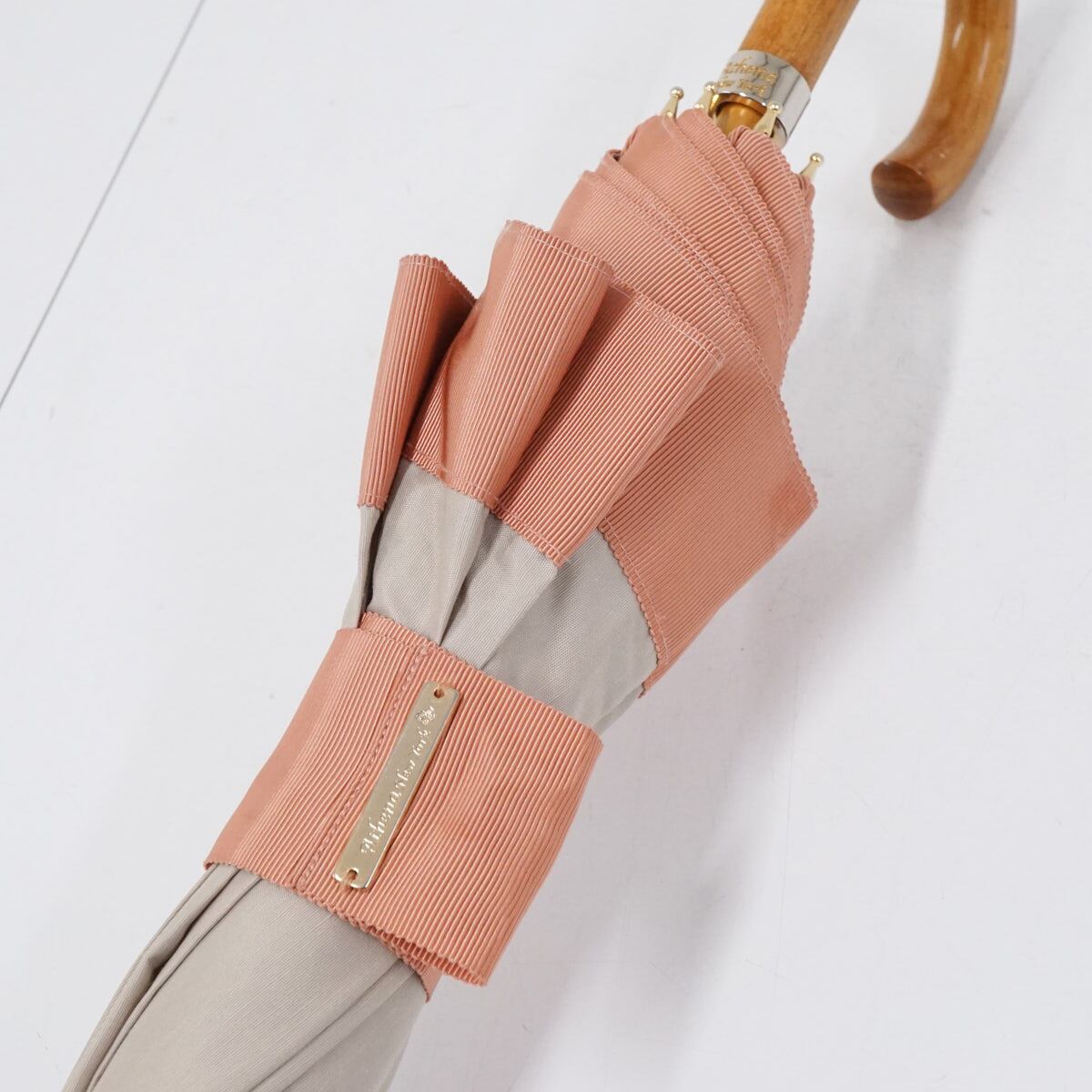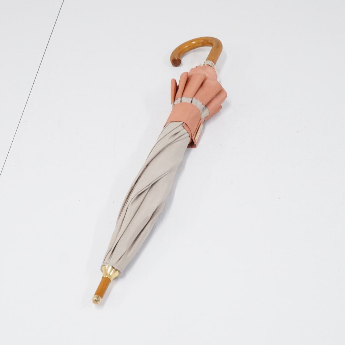 日傘 Athena New York アシーナニューヨーク USED美品 レディース グログランリボン ベージュ シンプル ブランド 高級 UV 47cm S2370
