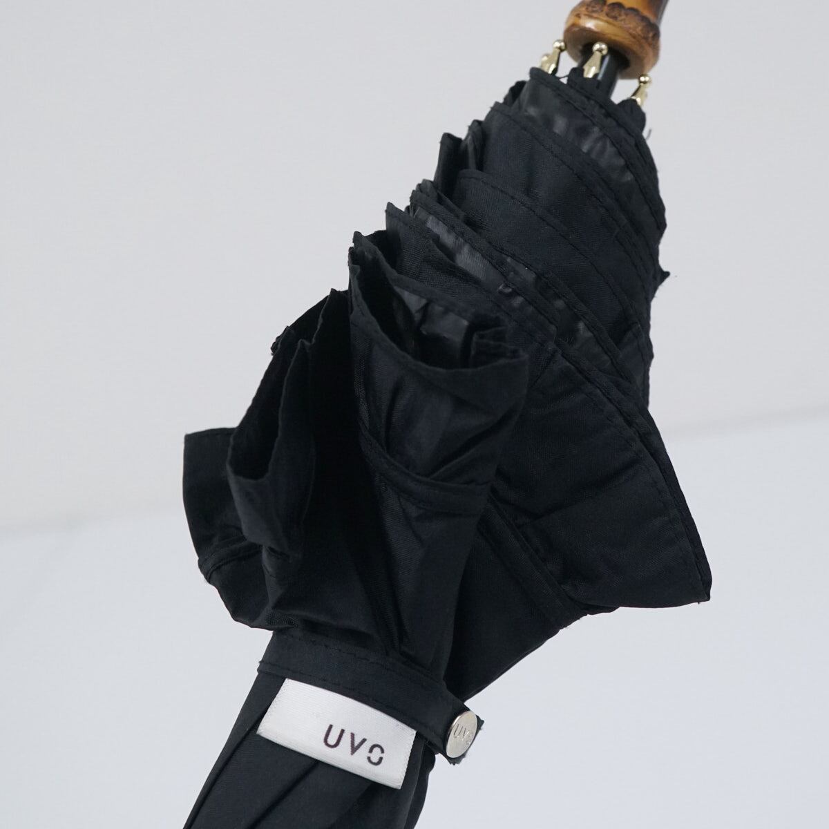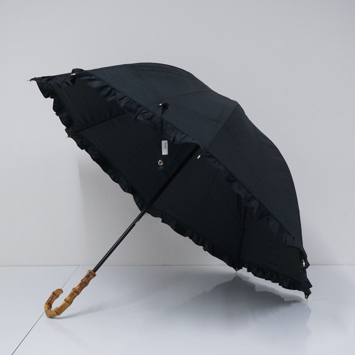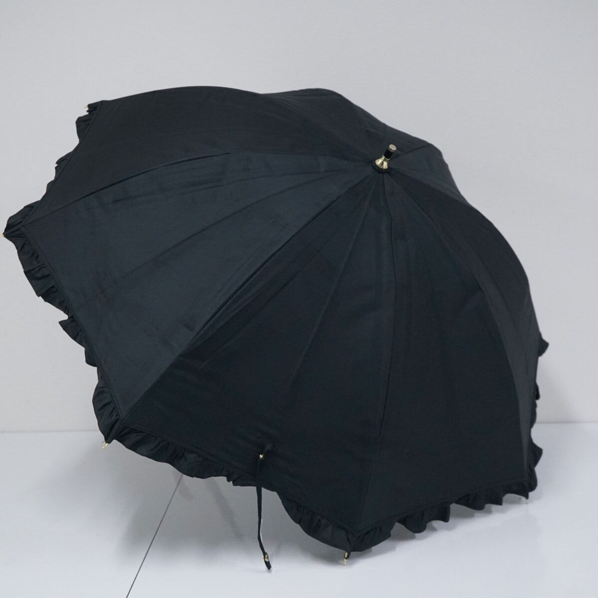 日傘 完全遮光 UVO Wpc. ウーボ USED美品 無地 晴雨兼用 フリル ブラック UV 遮光 遮熱 最強の日傘 UPF50+ 55cm A3480
