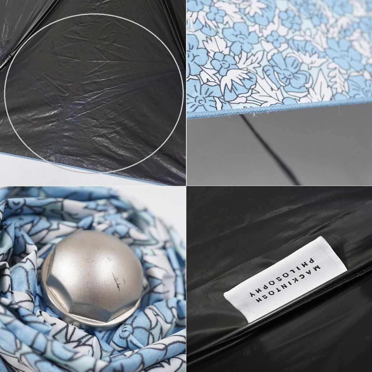 折りたたみ日傘 MACKINTOSH PHILOSOPHY マッキントッシュフィロソフィー USED美品 晴雨兼用 フラワープリント 小花柄 ブルー 軽量 50cm FA8846