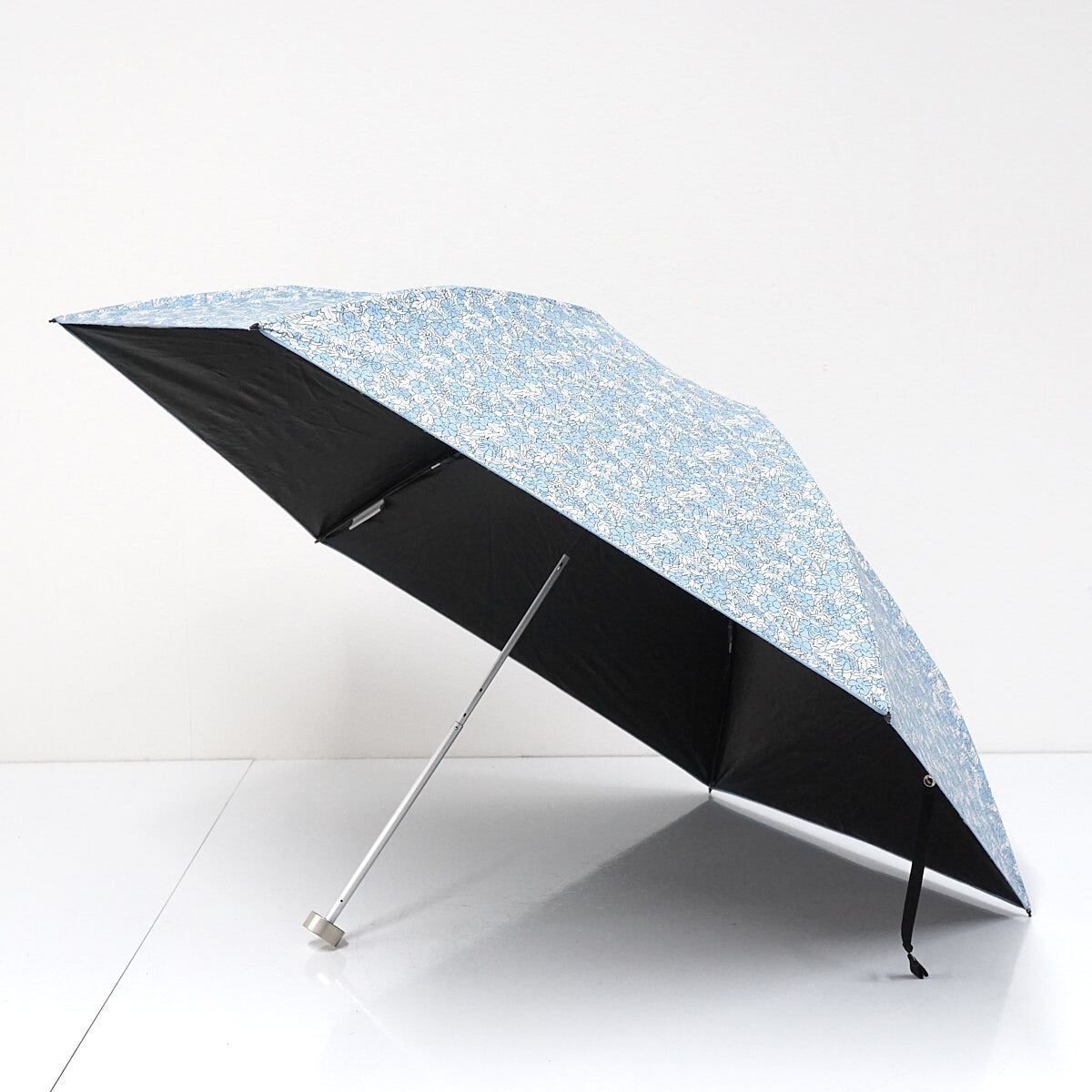 緻密なタッチで描かれたフラワープリントが華やかな折りたたみパラソルです。
