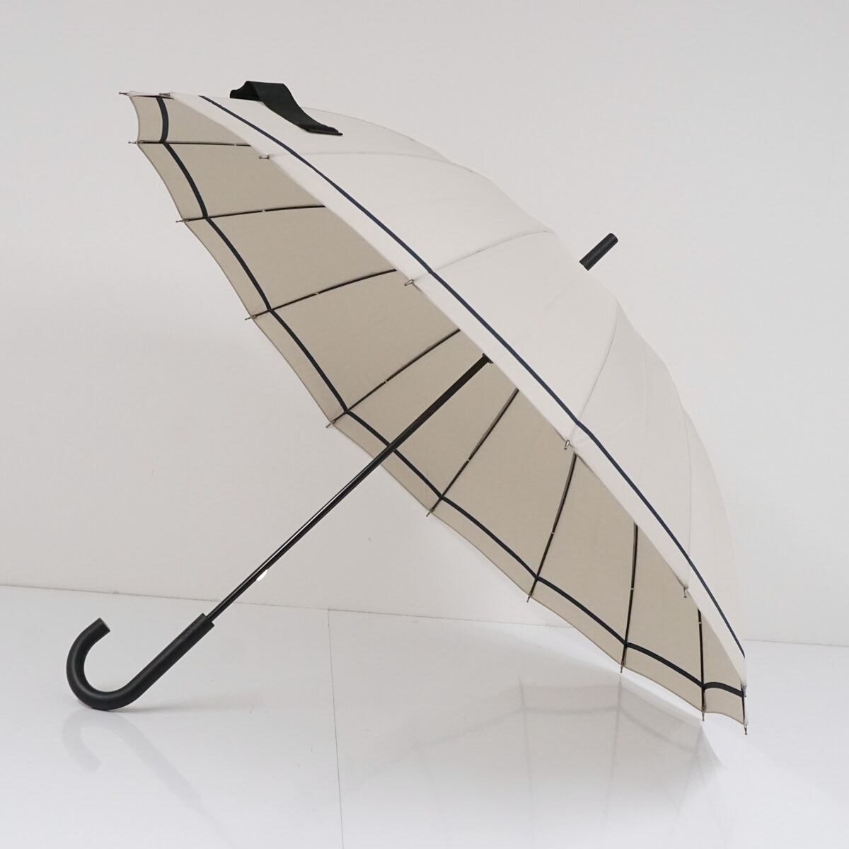 w.p.c ワールドパーティー 傘 USED美品 ベージュ ライン シンプル 男女兼用 大判 16本骨 晴雨兼用 メンズ 60cm BT2374