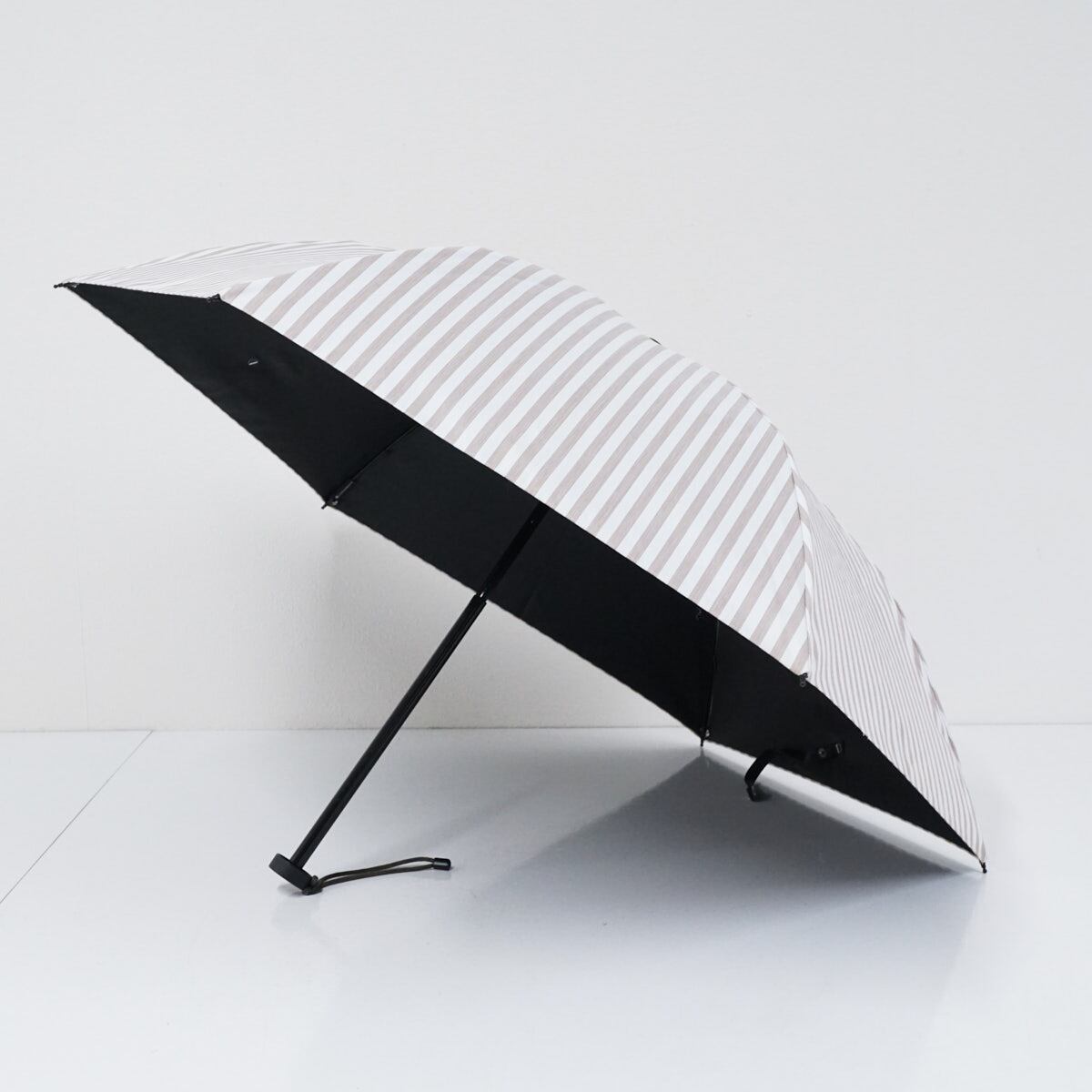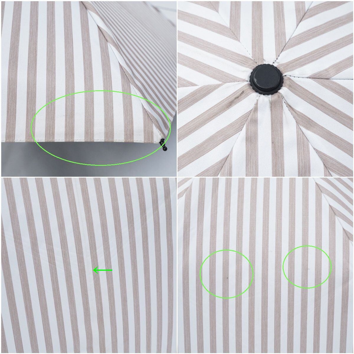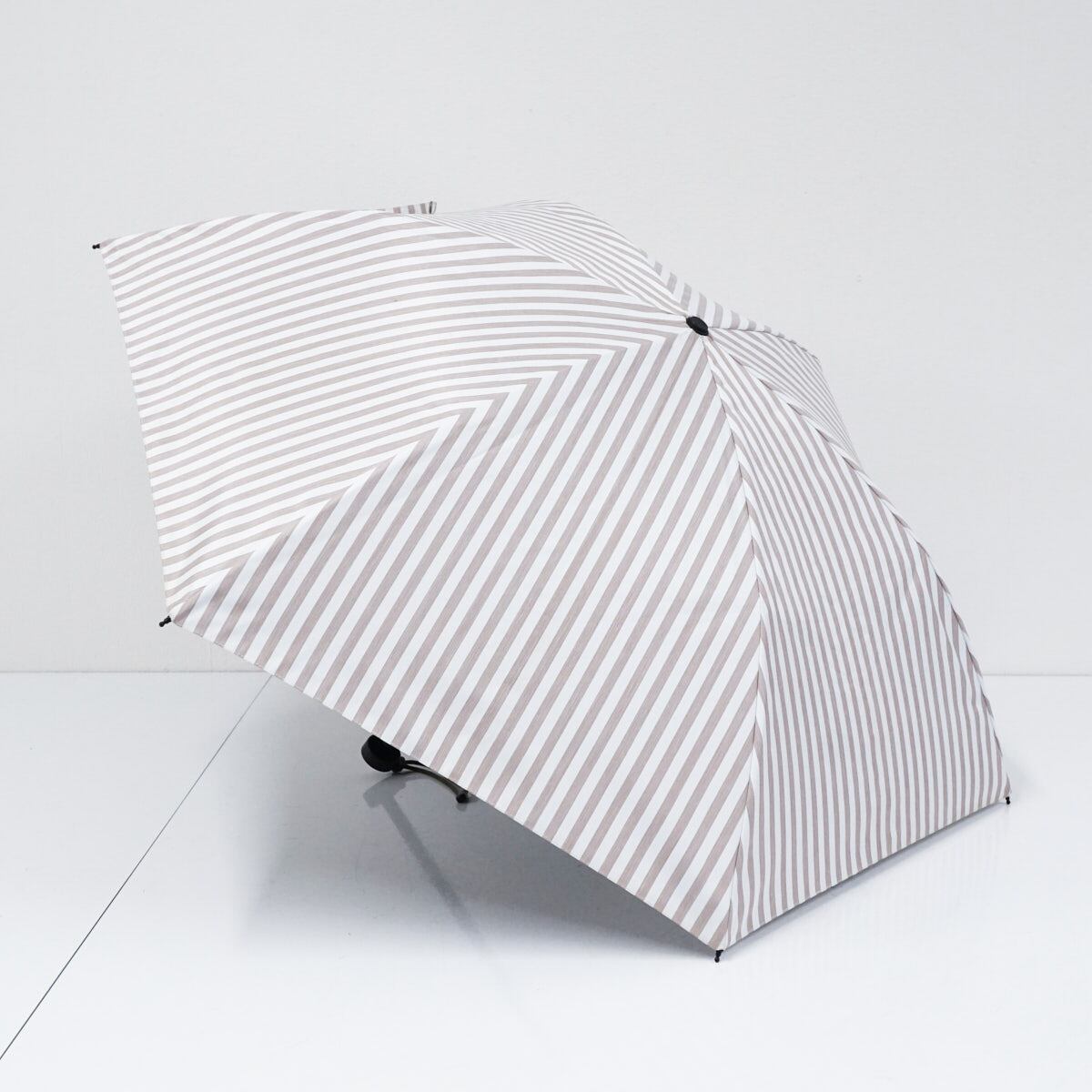 サンバリア100 完全遮光折日傘 USED品 2段折 コンパクト ストライプ モカ 折りたたみ日傘 折りたたみ傘 UVカット 紫外線対策 47cm FS8862