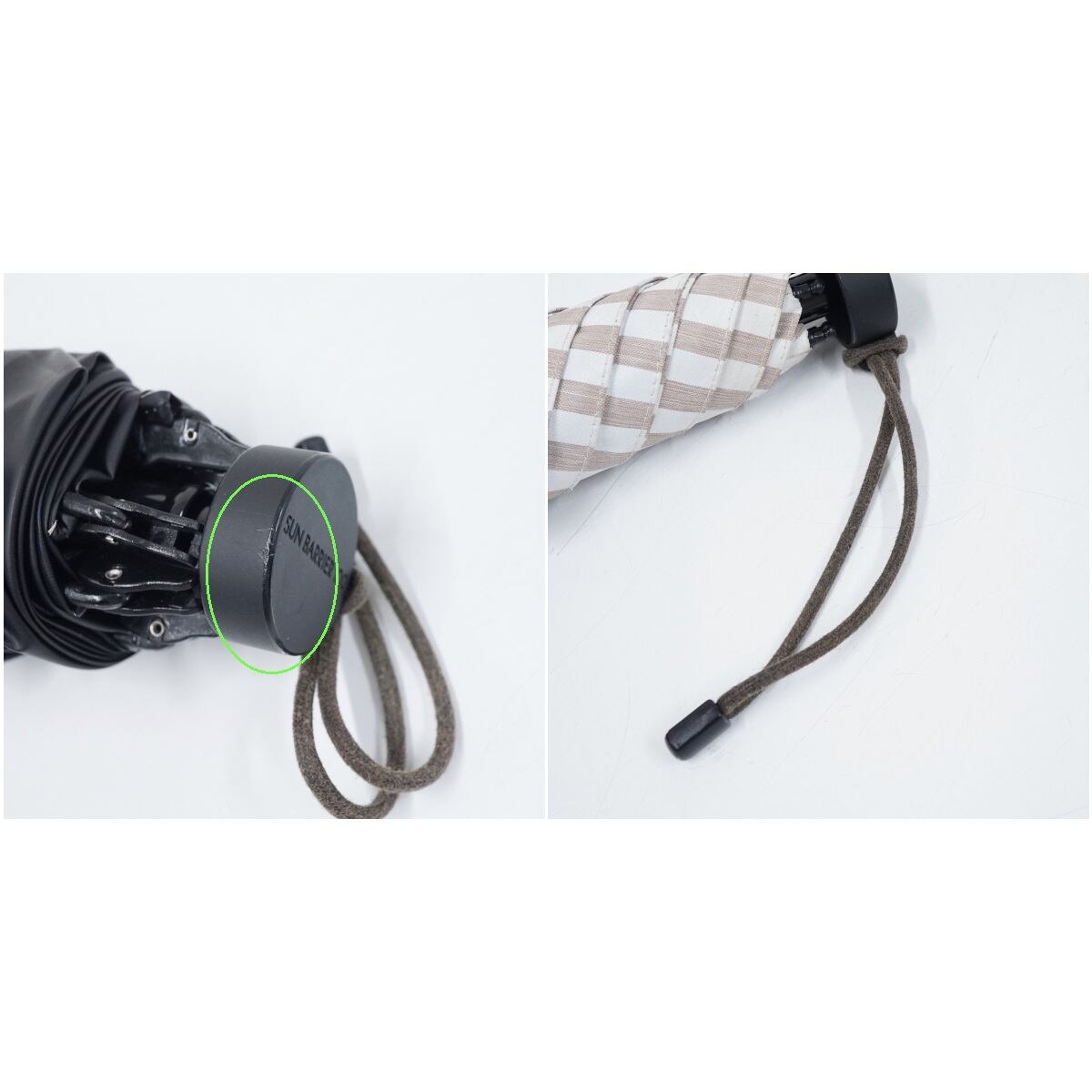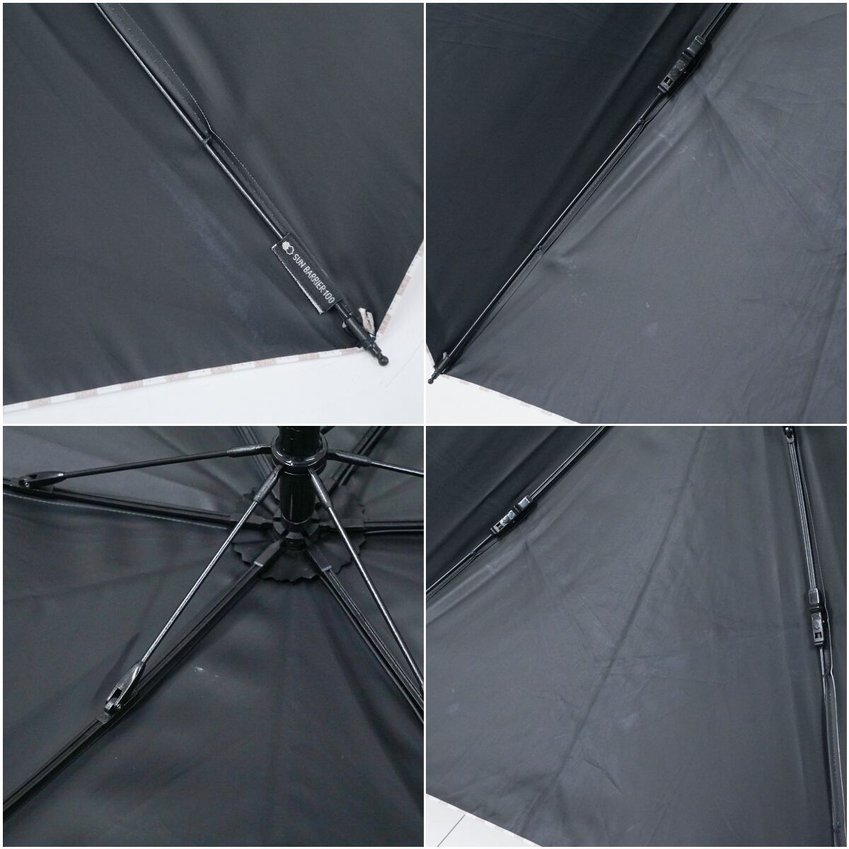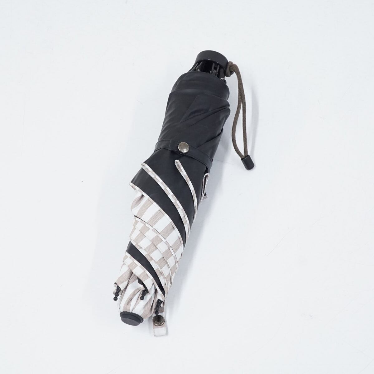 サンバリア100 完全遮光折日傘 USED品 2段折 コンパクト ストライプ モカ 折りたたみ日傘 折りたたみ傘 UVカット 紫外線対策 47cm FS8862