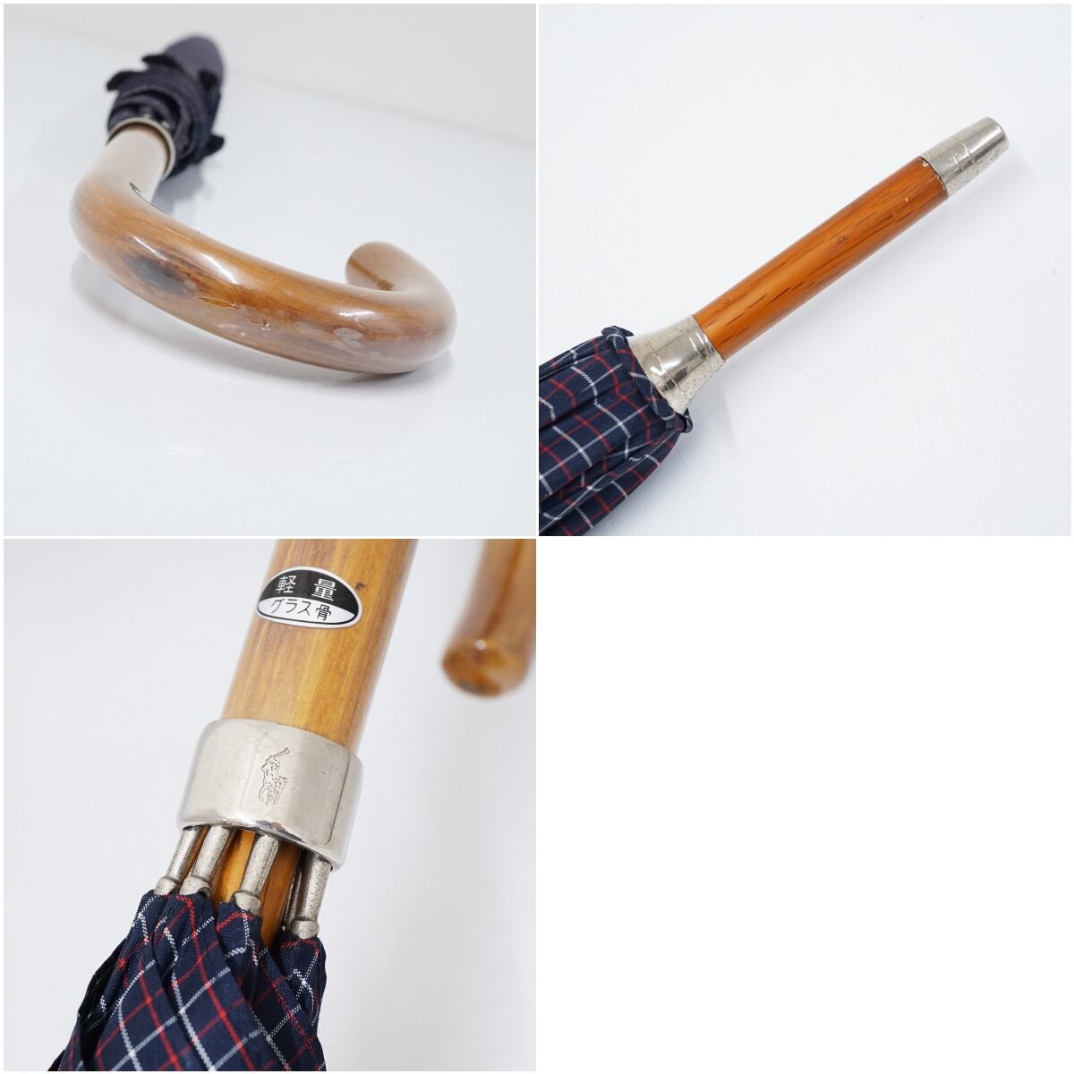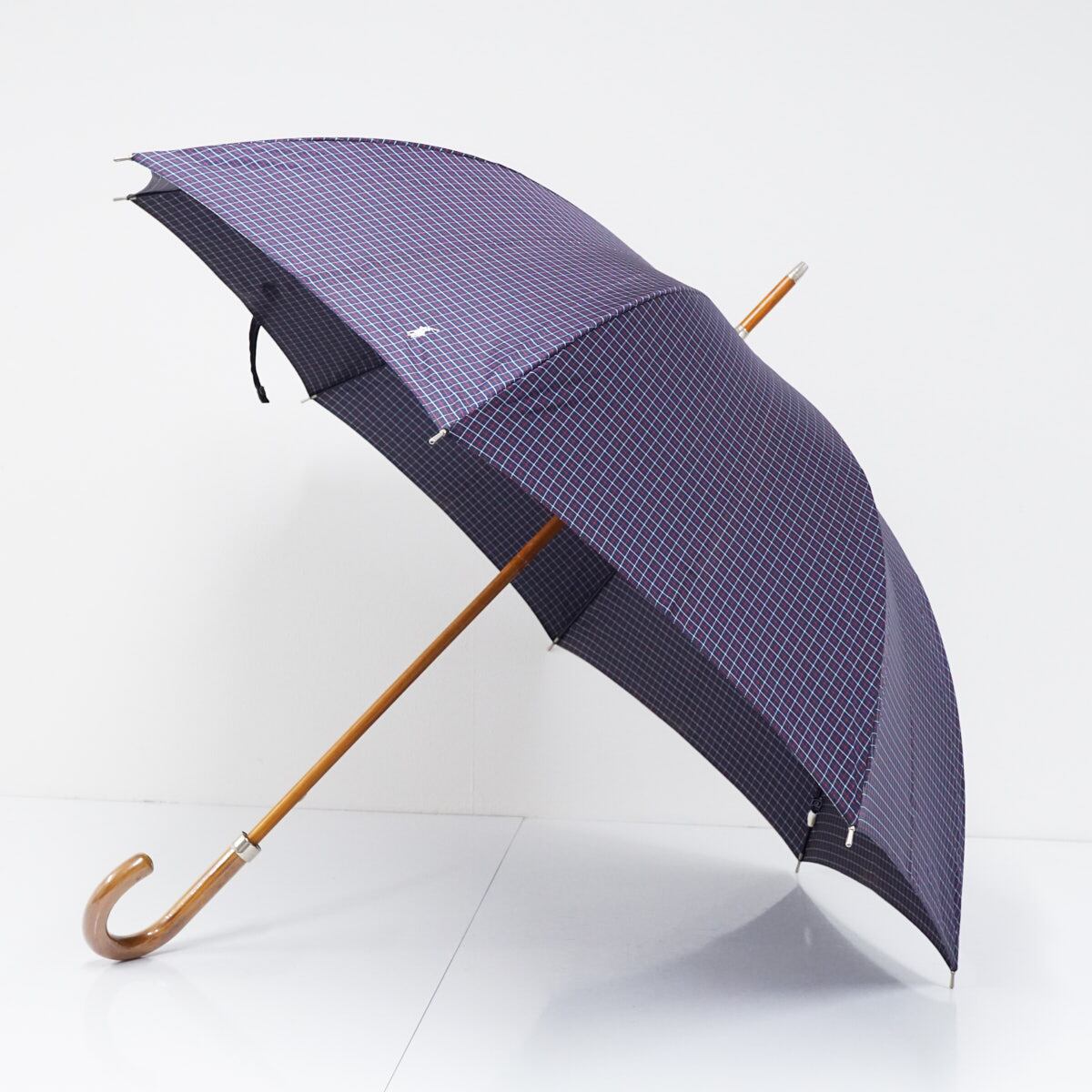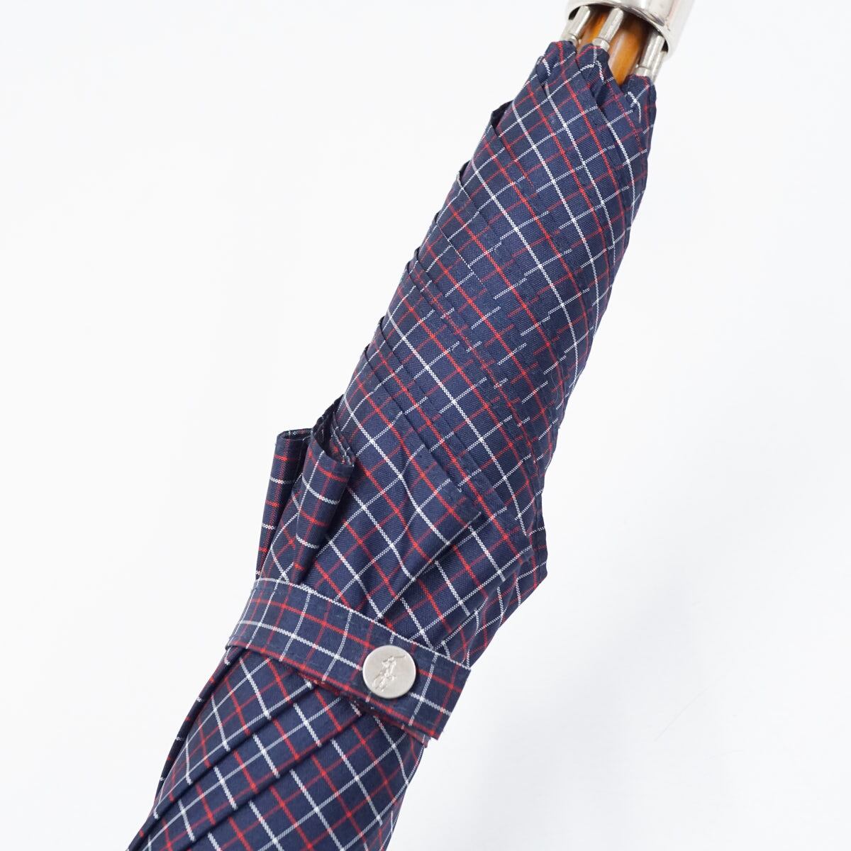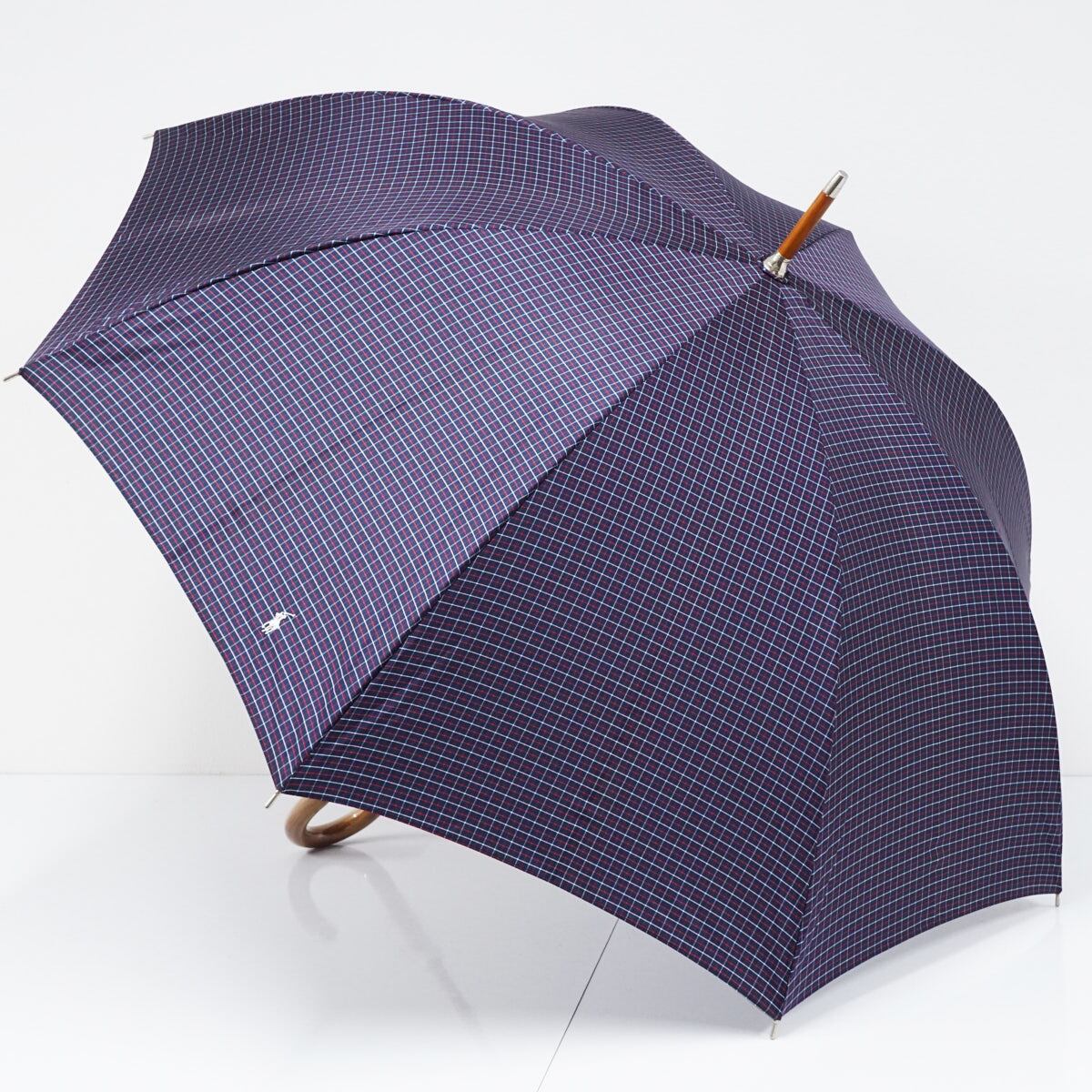 傘 Polo Ralph Lauren ポロラルフローレン USED美品 ネイビー 格子柄 細巻 ポロ刺繍 高級 紳士傘 グラス骨 超大判 65cm S2388