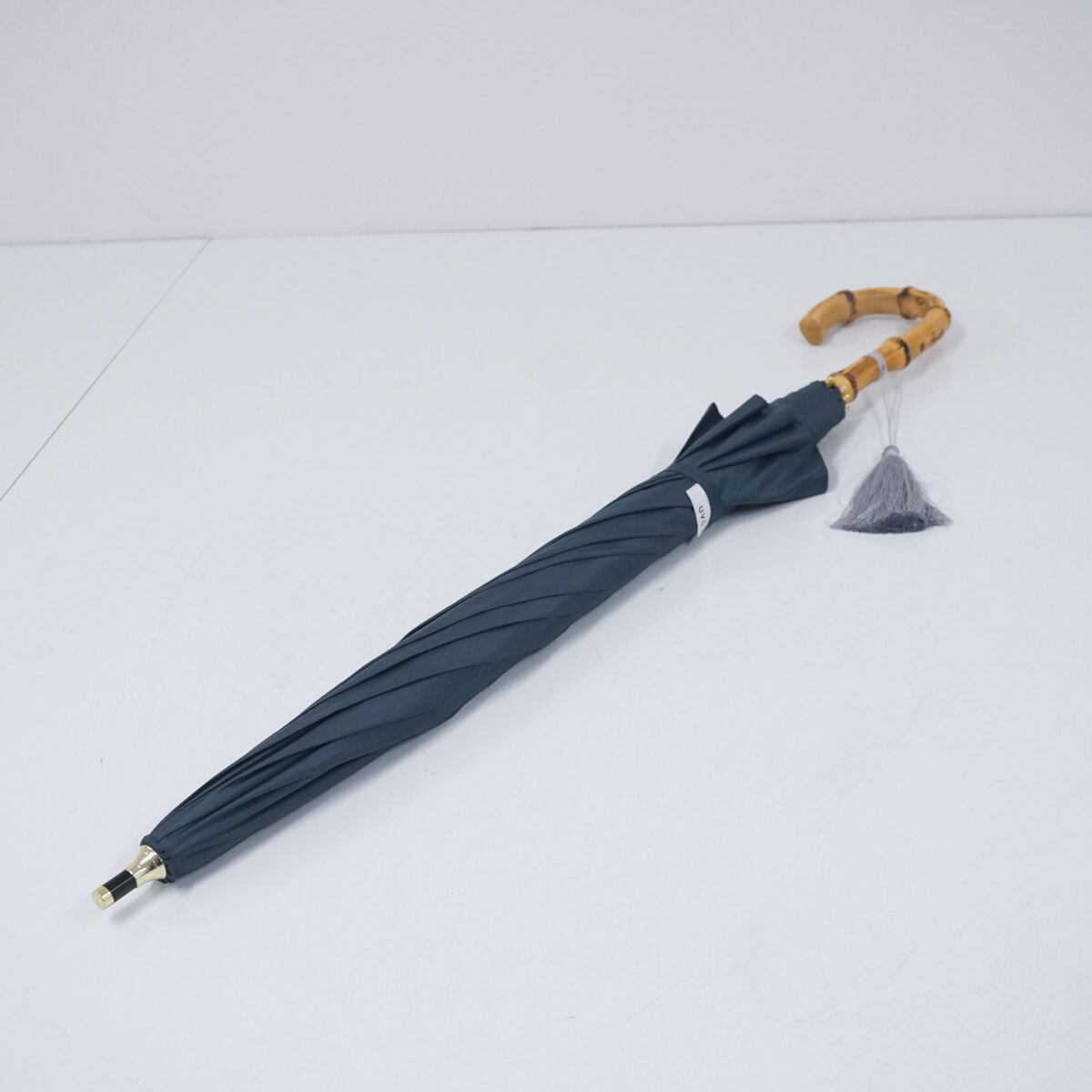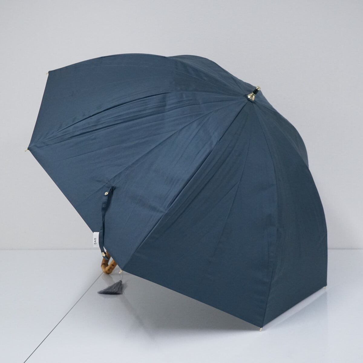 ネイビーのシンプルな生地を基調に手元は寒竹手元で