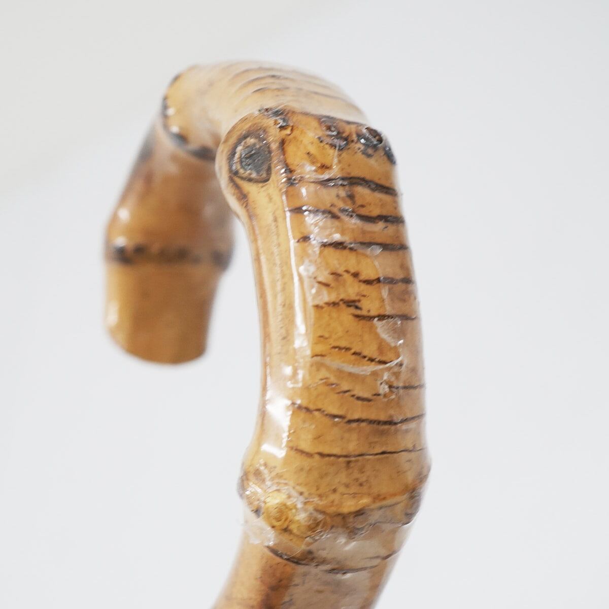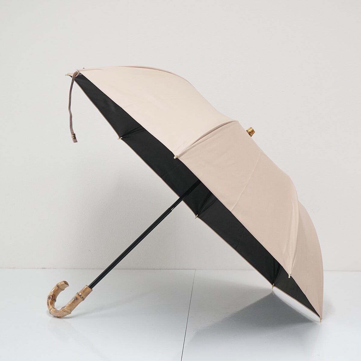 落ち着いたカラーの生地とバンブー素材の手元がナチュラルな雰囲気です。
