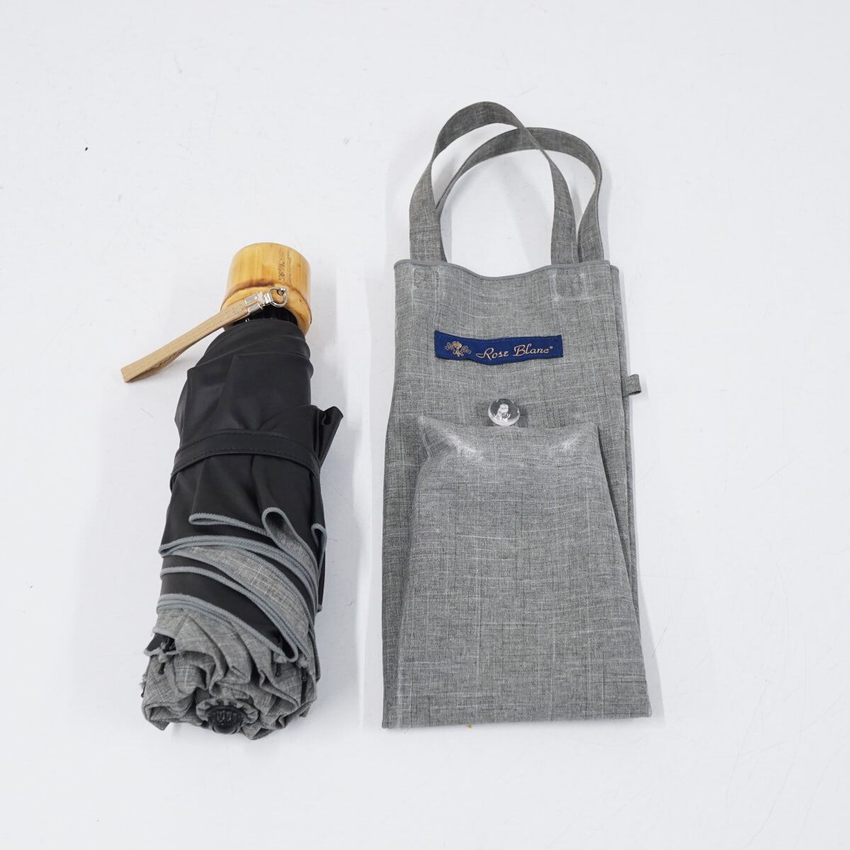 完全遮光折日傘 芦屋ロサブラン USED美品 3段折 ダンガリー グレー UVカット 遮熱 折りたたみ日傘 50cm FS8875