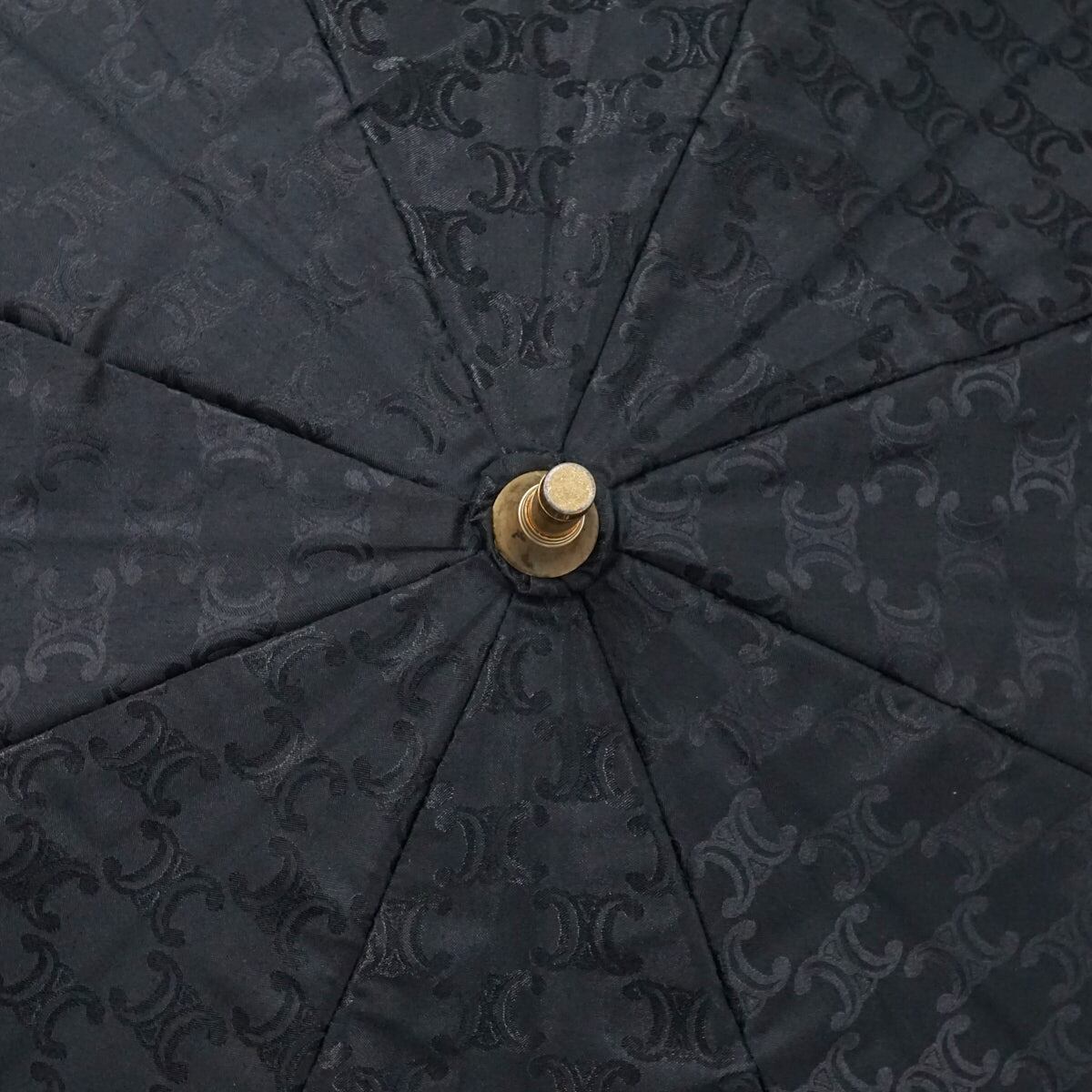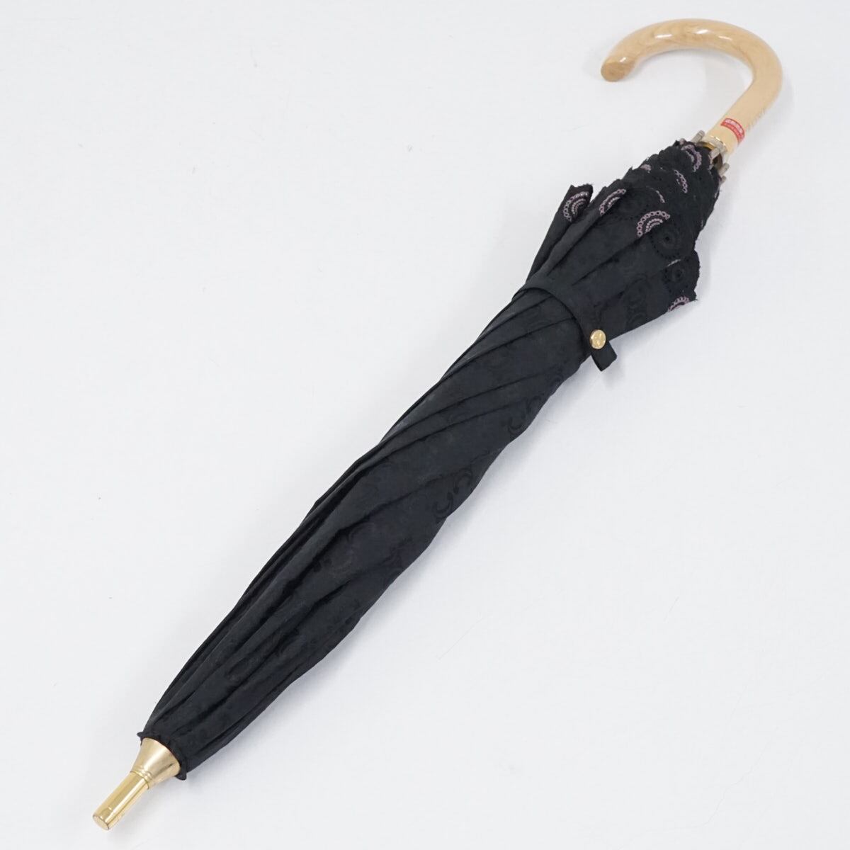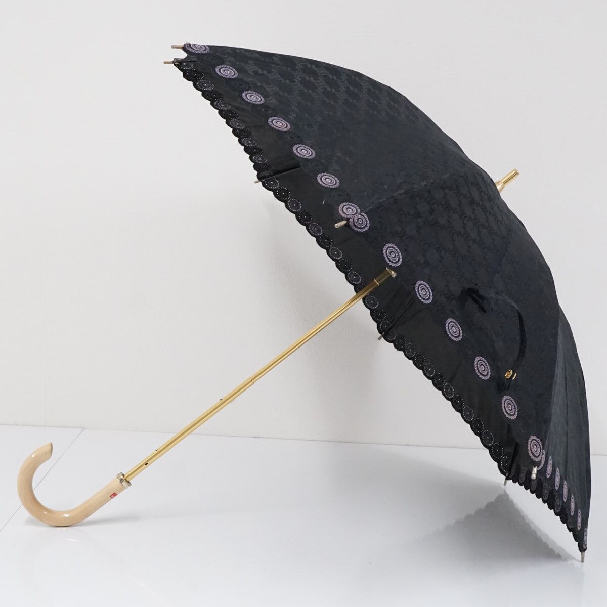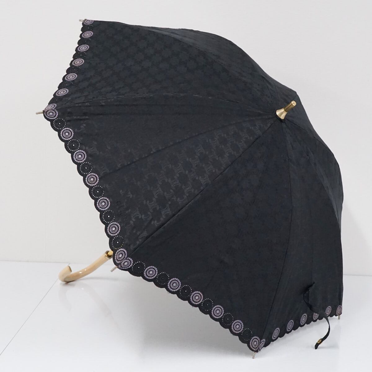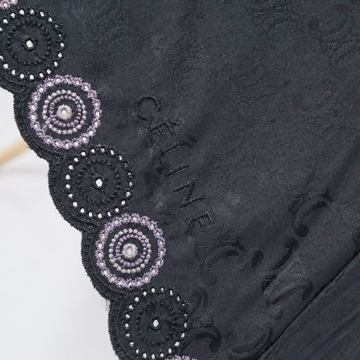日傘 CELINE セリーヌ USED美品 マカダム 晴雨兼用 ブラック ロゴ 刺繡 ブランド 47cm S2390