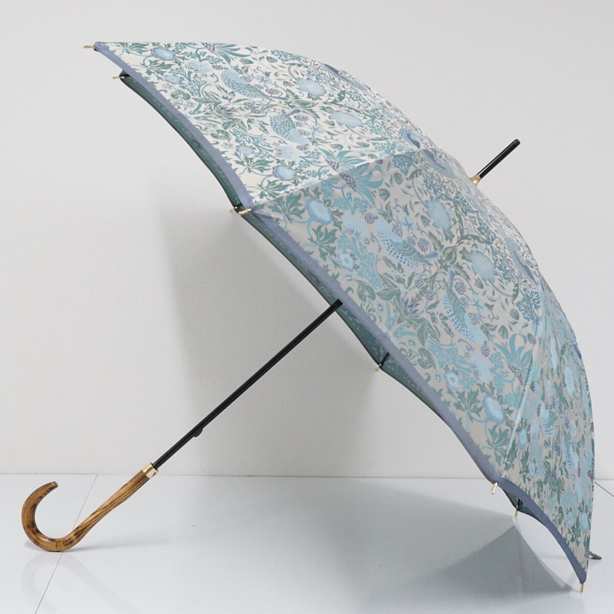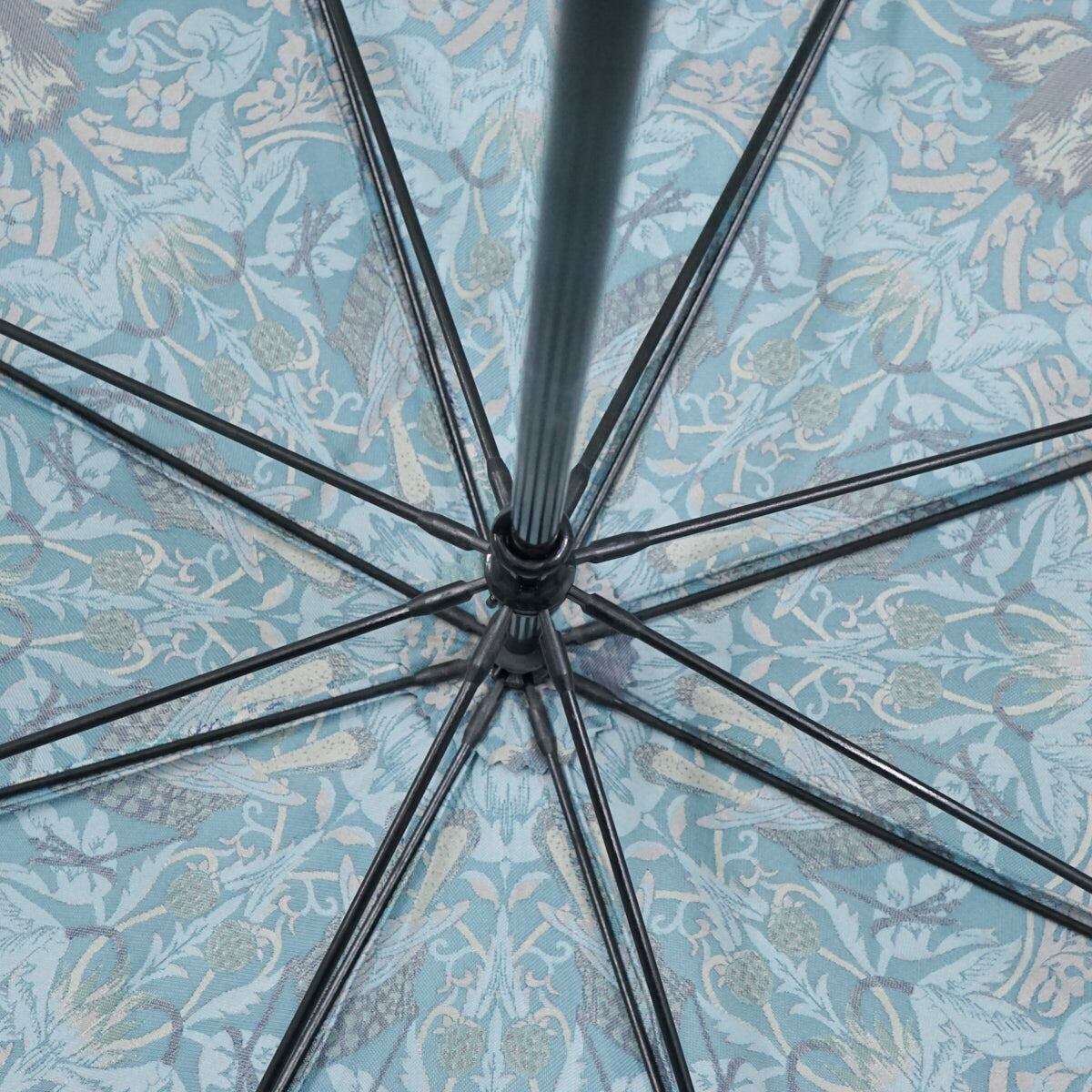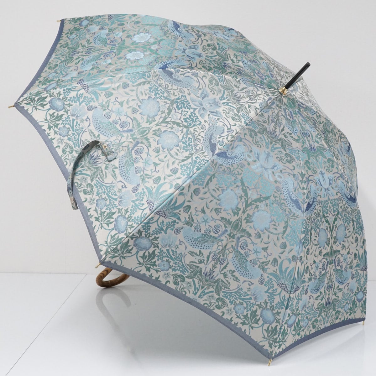 近代デザインの父として名高いウィリアム・モリスの有名作「いちご泥棒」を傘生地に落とし込んでいます。