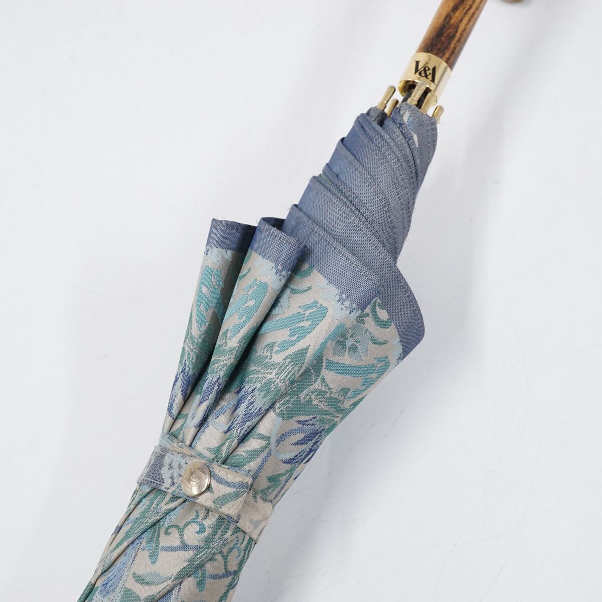 傘 V&A ヴィクトリア アンド アルバート USED美品 晴雨兼用 ウィリアムモリス いちご泥棒 ジャガード ブルー系 55cm S2410