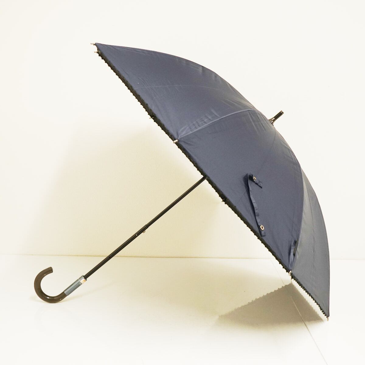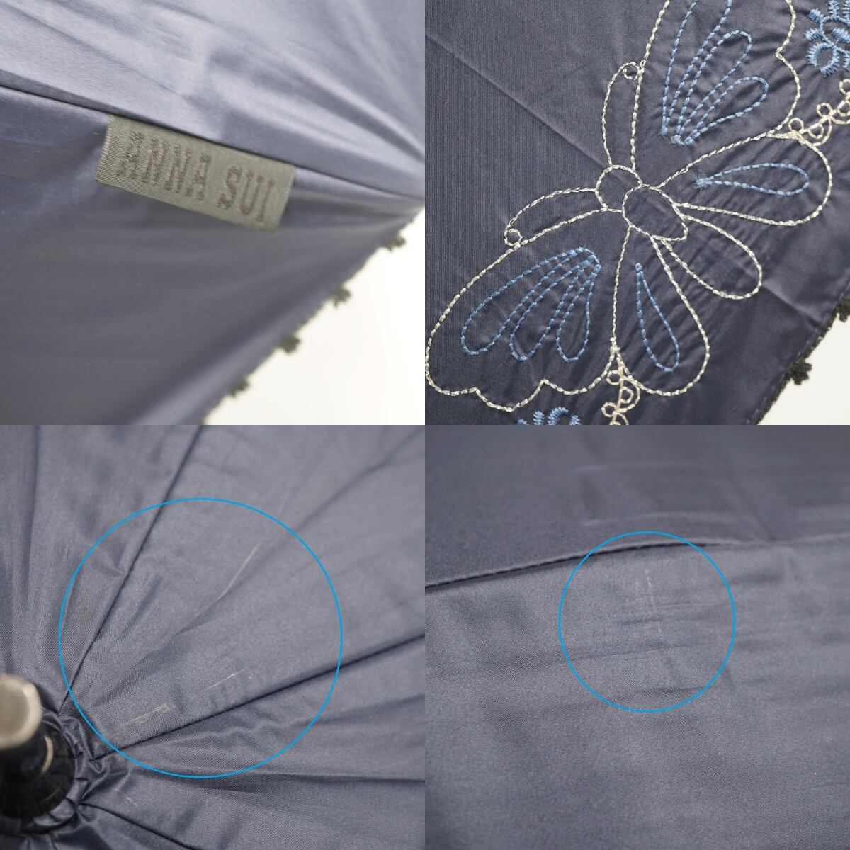 晴雨兼用日傘 ANNA SUI アナスイ USED美品 遮光 撥水 UV グラス骨 ネイビー 刺繍 50cm S3477