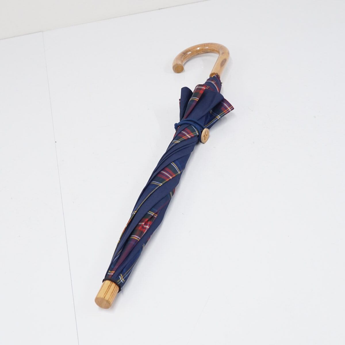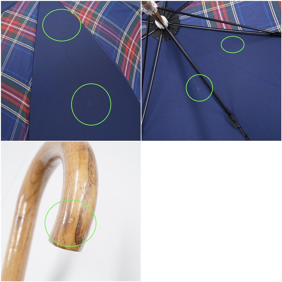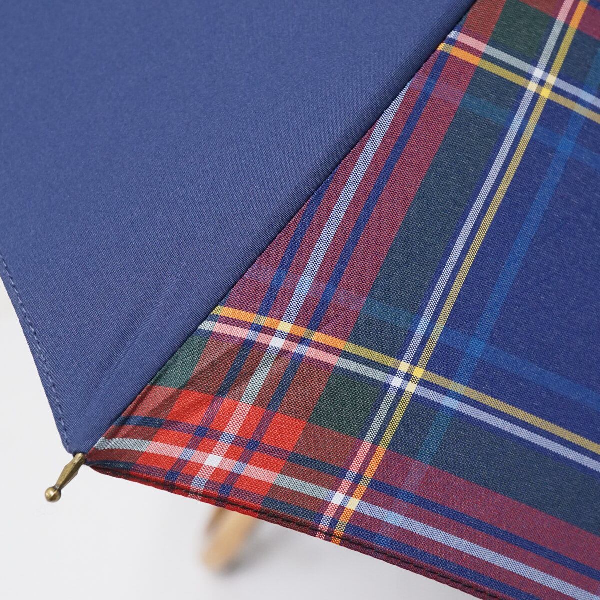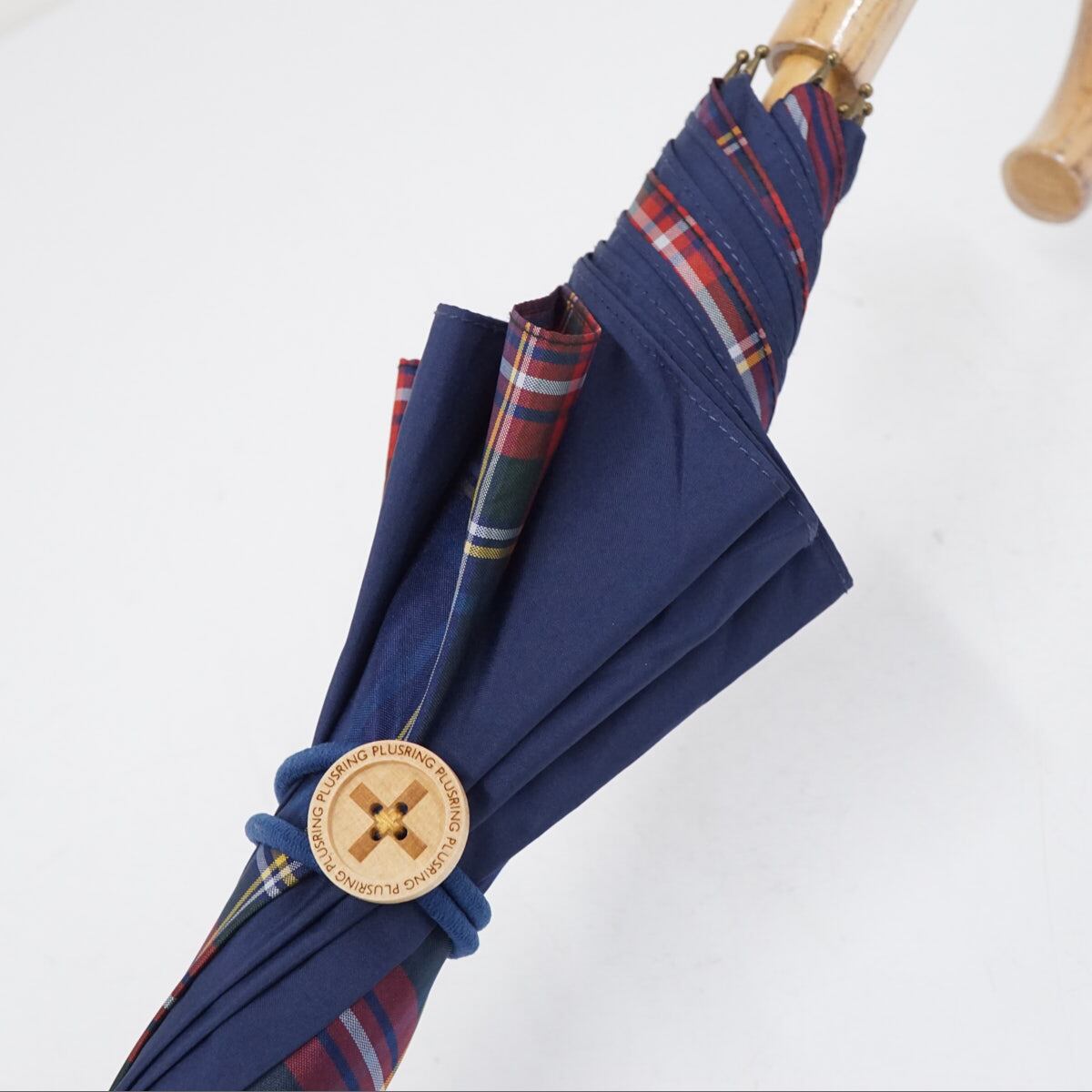 傘 +RING プラスリング USED美品 ネイビー チェック ショートサイズ 晴雨兼用 52cm A2399