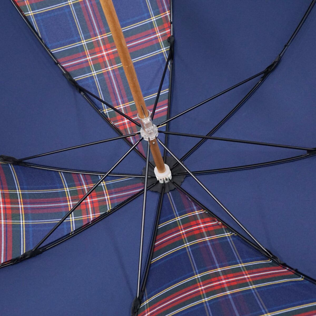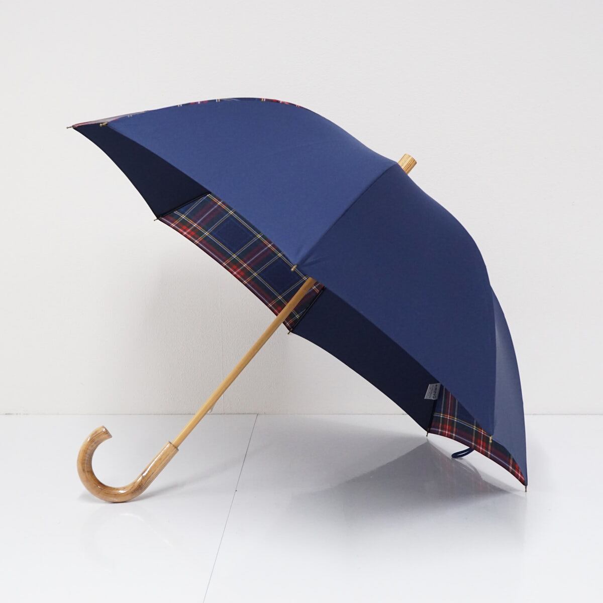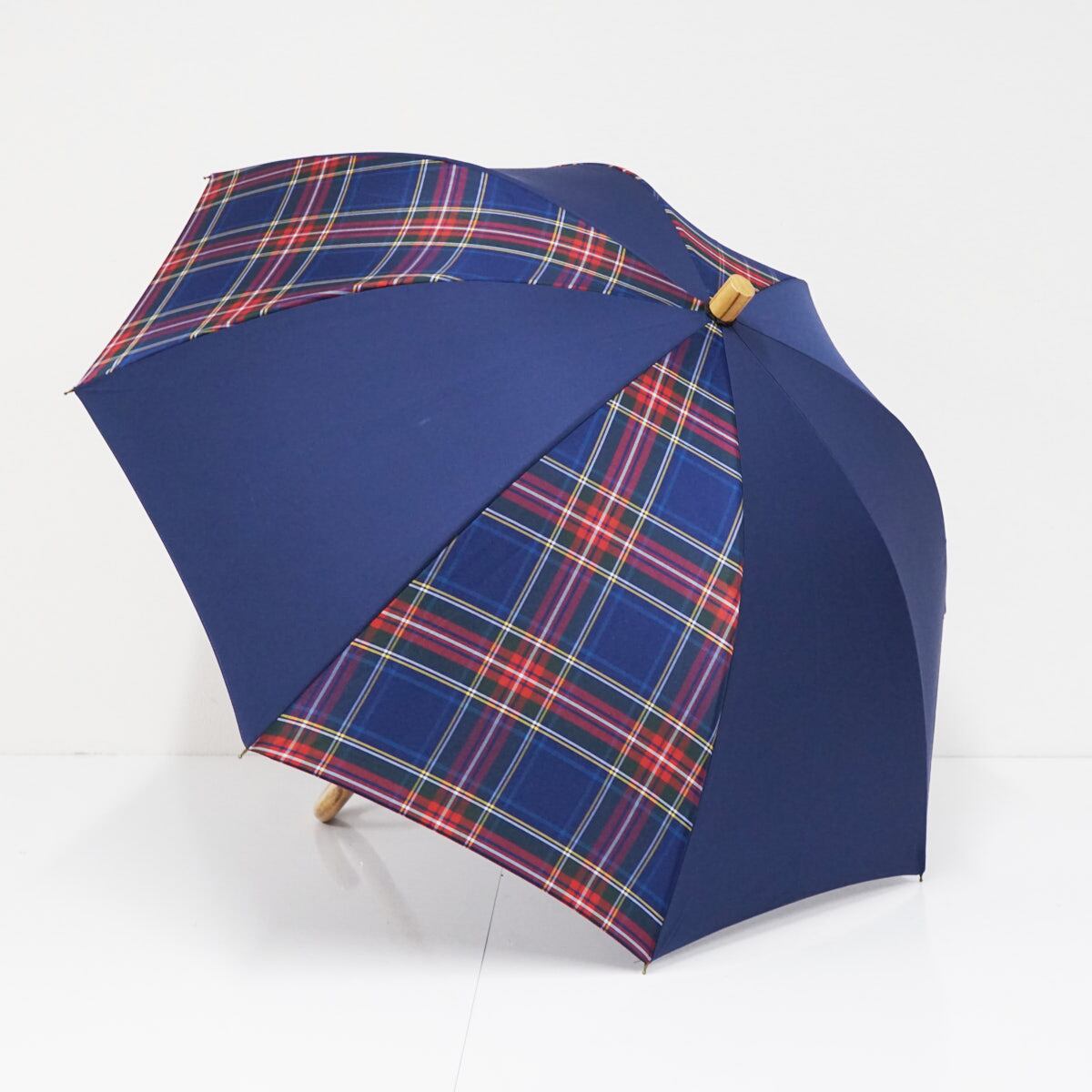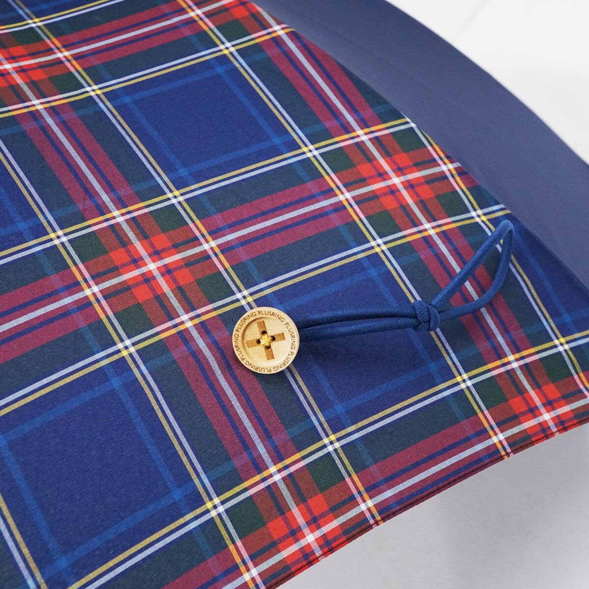 傘 +RING プラスリング USED美品 ネイビー チェック ショートサイズ 晴雨兼用 52cm A2399