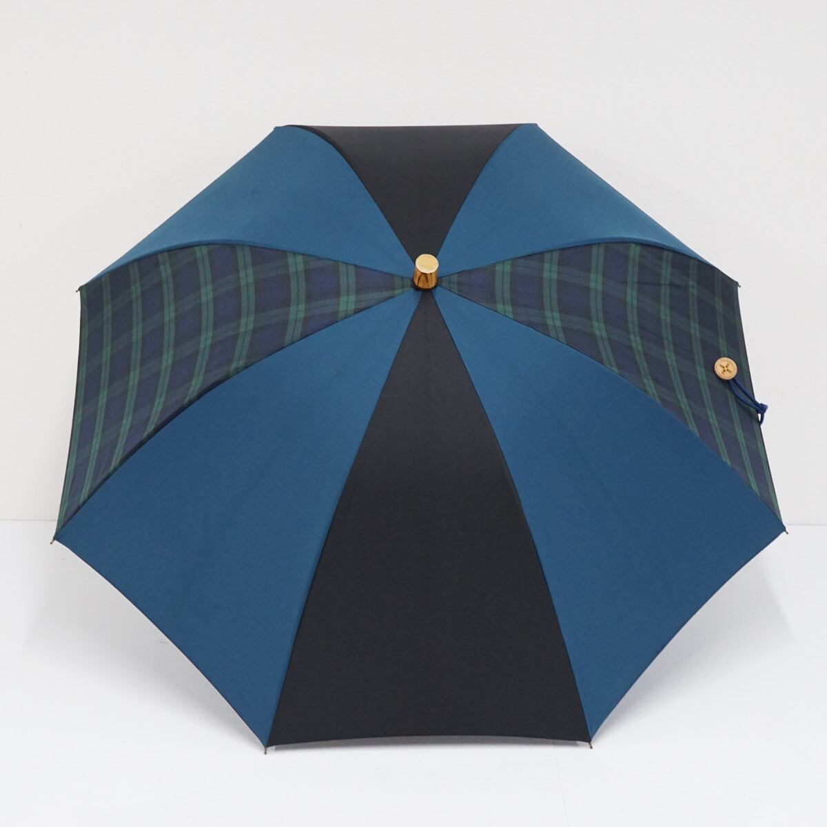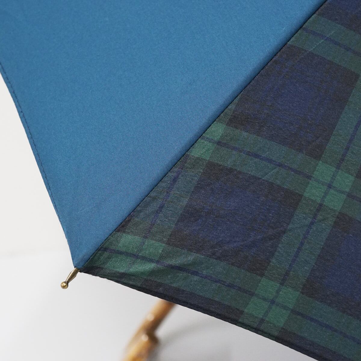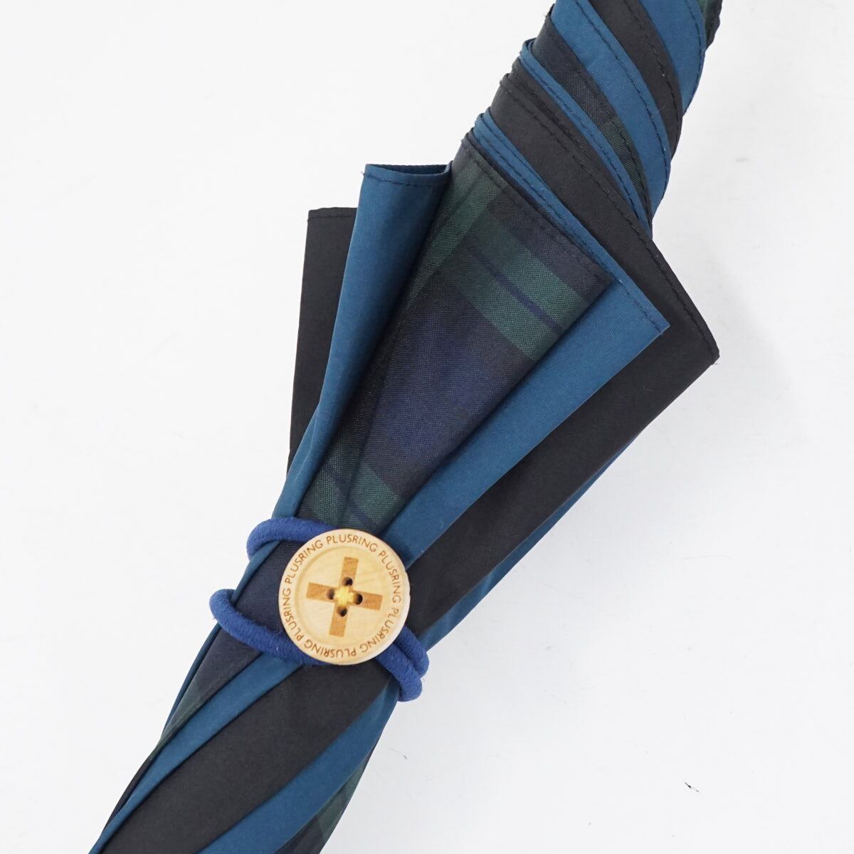 傘 +RING プラスリング USED品 ブルー ブラック チェック ショートサイズ 晴雨兼用 52cm A2401
