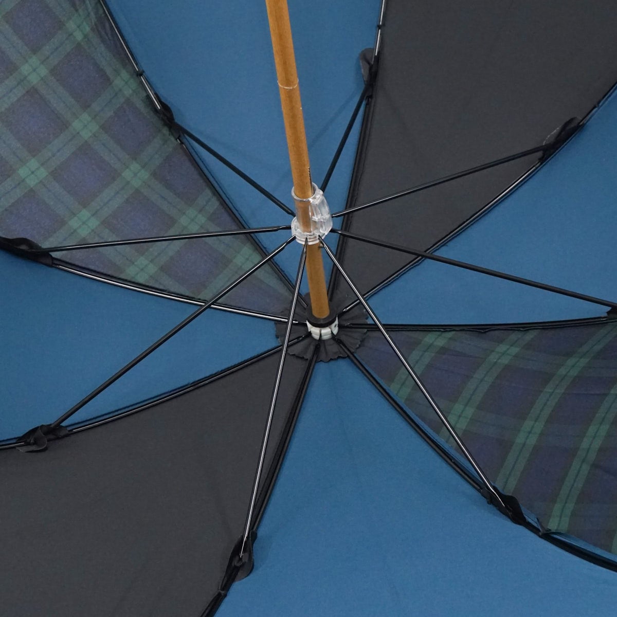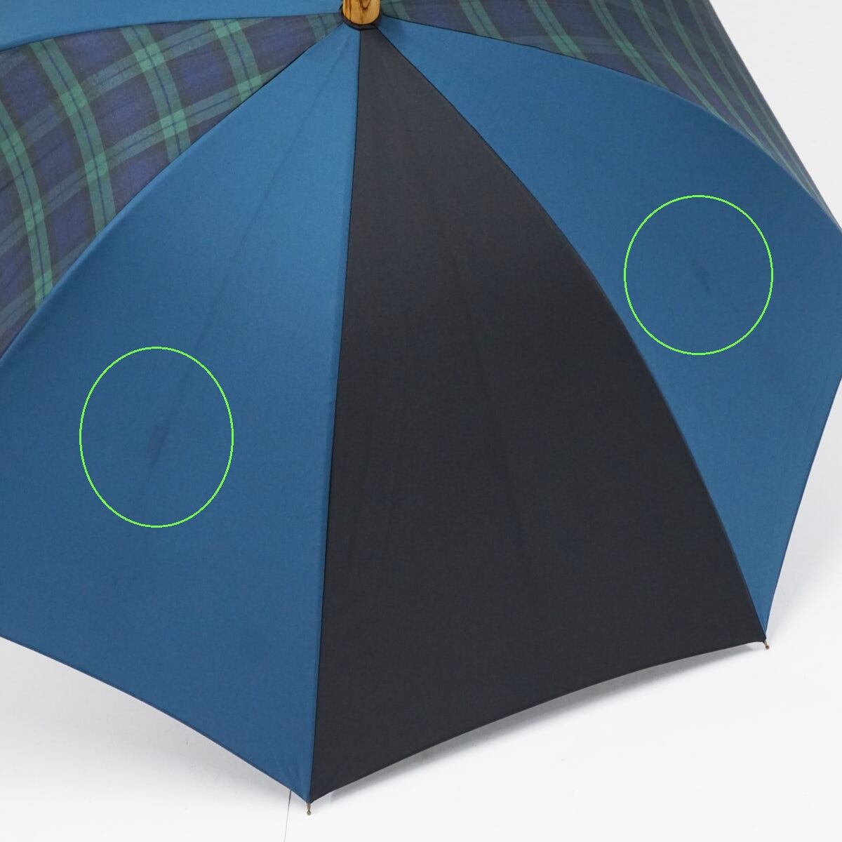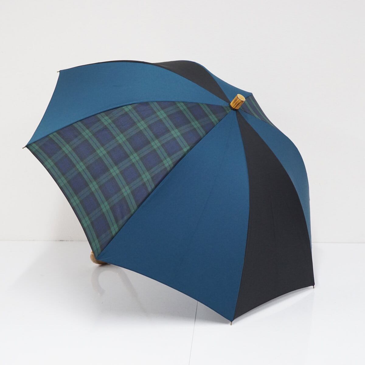 傘 +RING プラスリング USED品 ブルー ブラック チェック ショートサイズ 晴雨兼用 52cm A2401