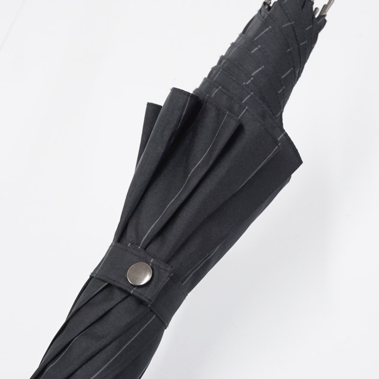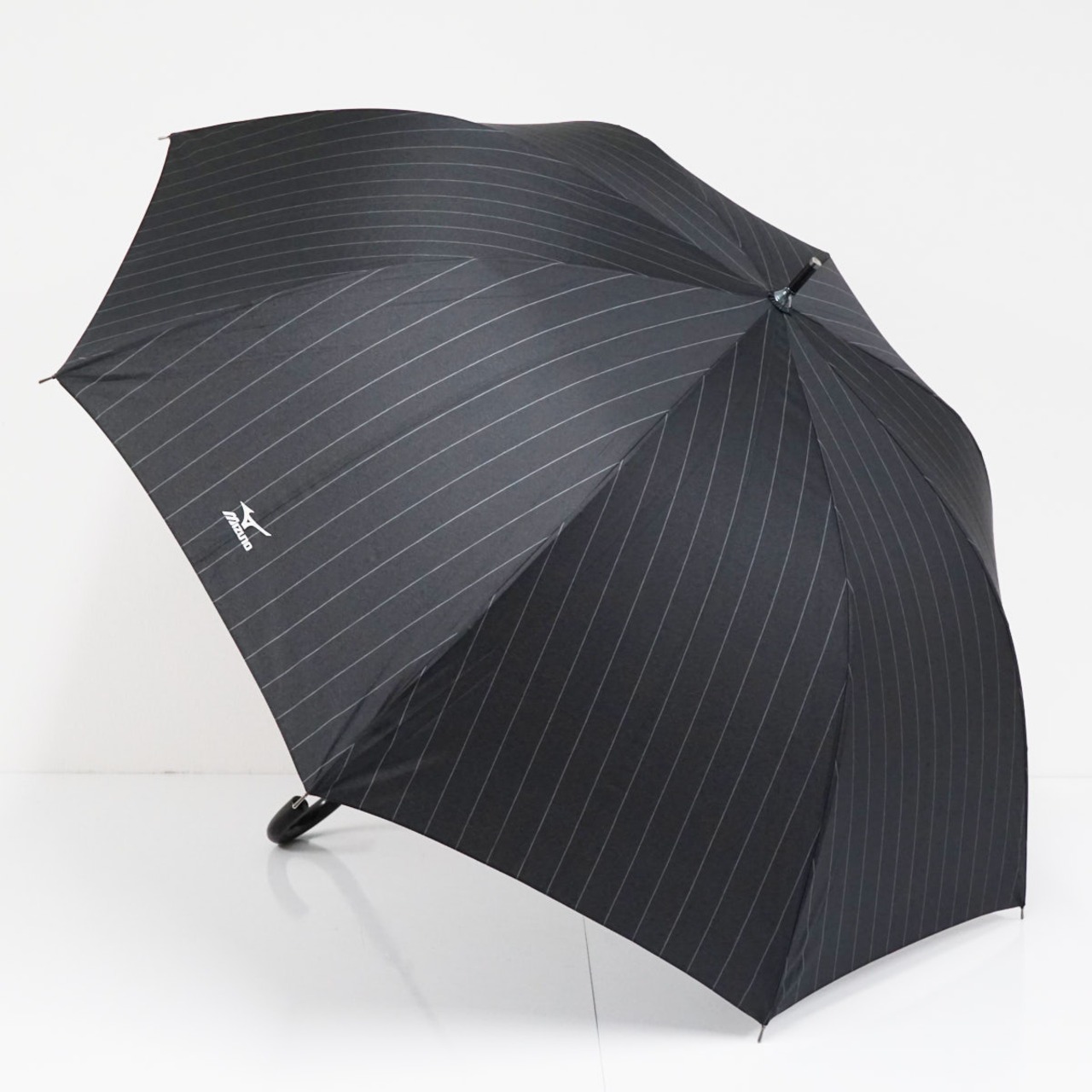 ブラックの生地にグレーのストライプラインを入れた「ミズノ」の耐風傘です。