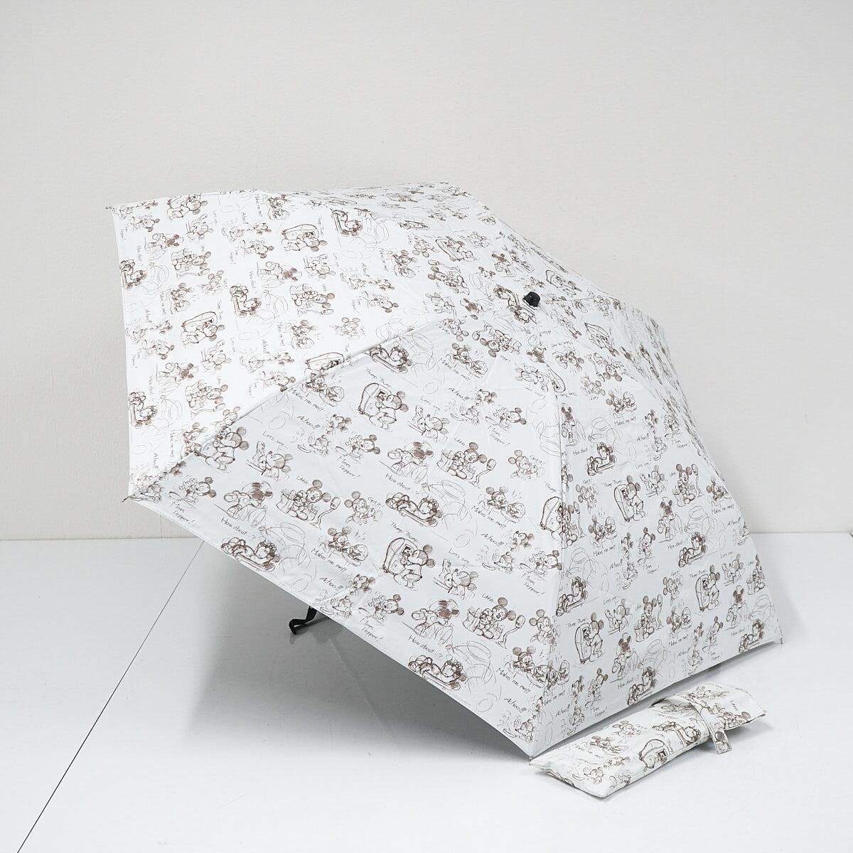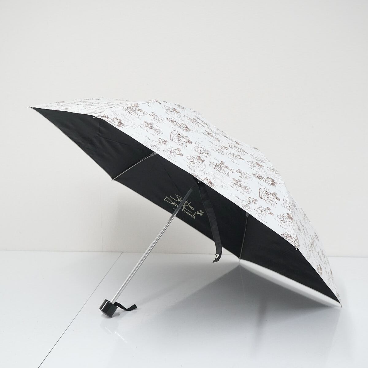 折りたたみ日傘 東京ディズニーリゾート USED美品 晴雨兼用 スケッチ柄 ミッキー キャラクター Disney 遮光 UV 50cm FA8867