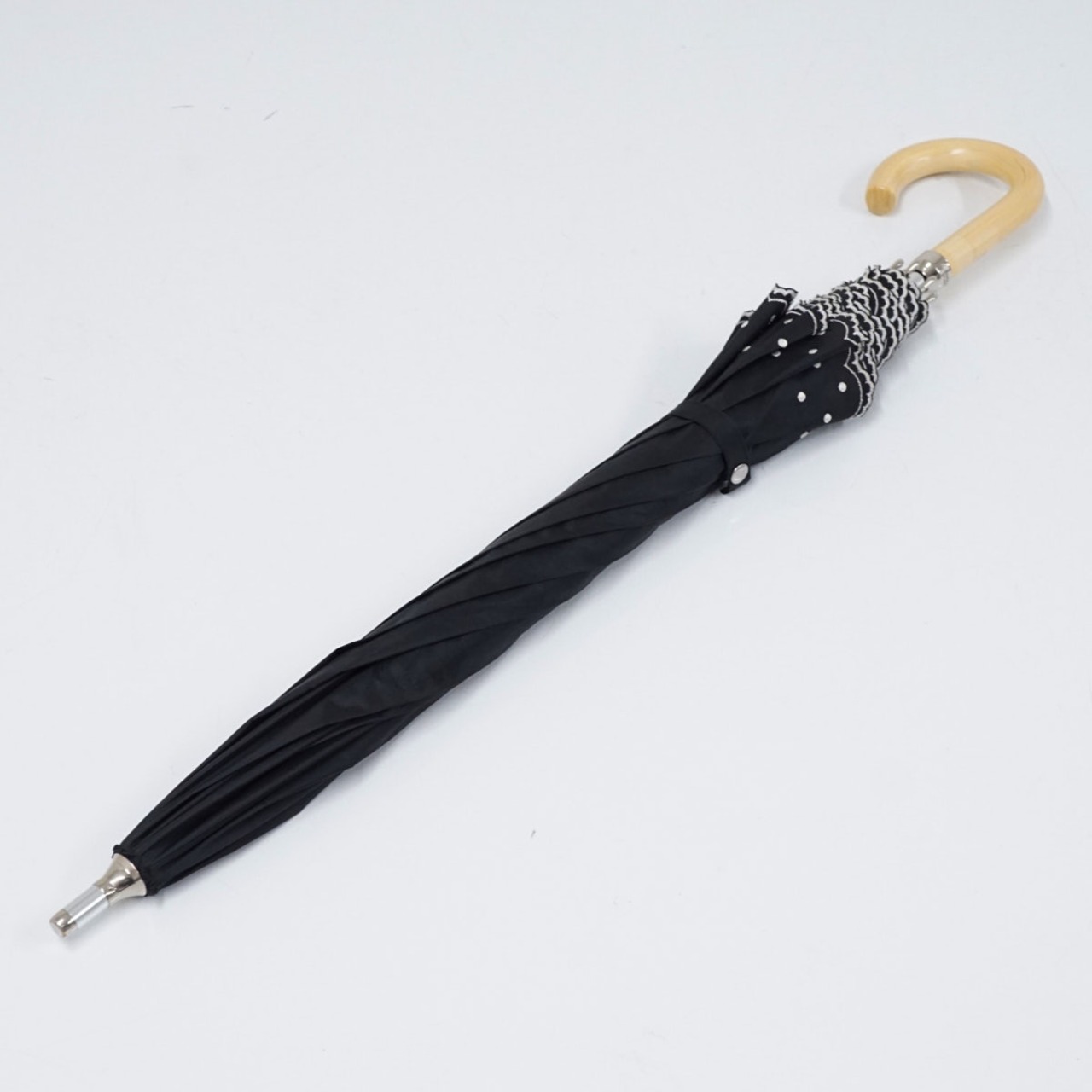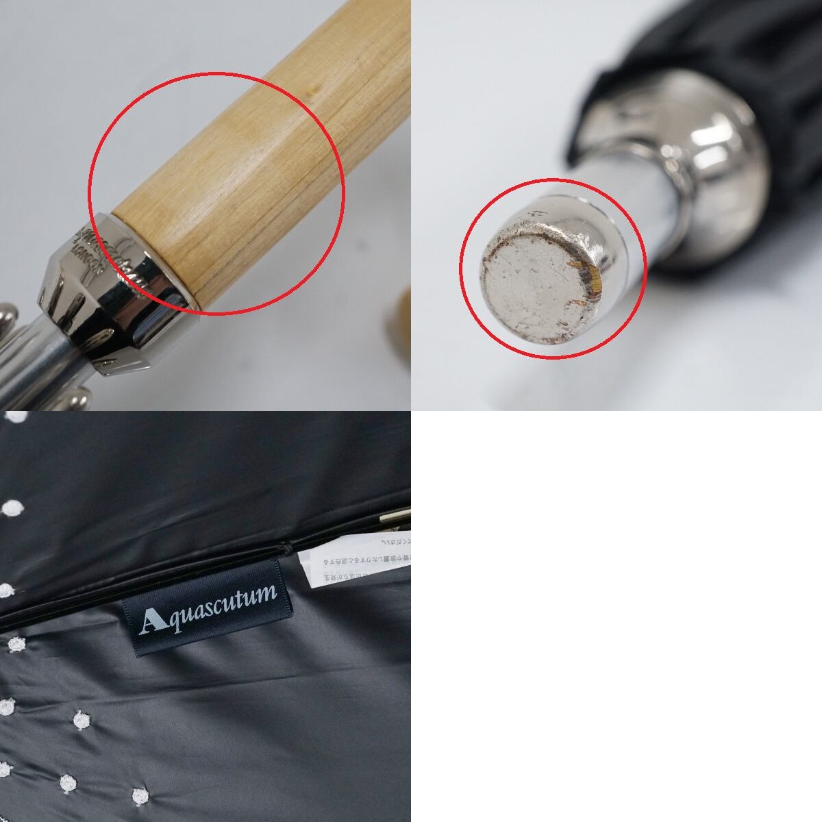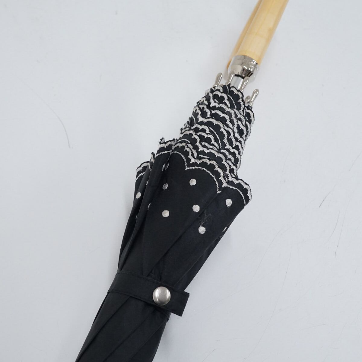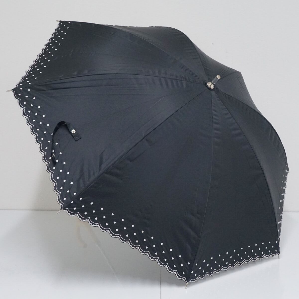 傘 Aquascutum アクアスキュータム USED美品 ブラック フリル ドット 刺繍 UV 遮光 晴雨兼用 47cm A2415